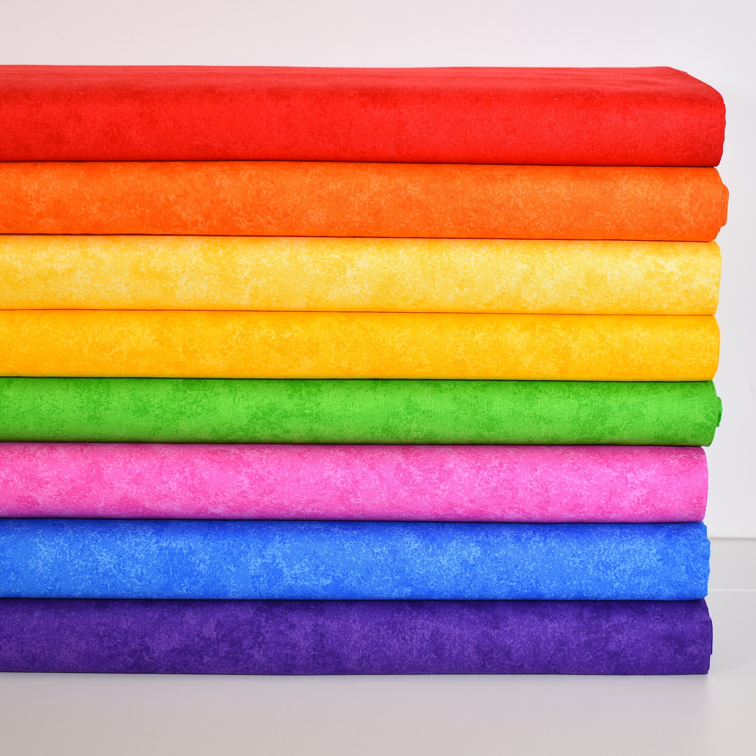Die Kollektion "Spraytime" von Makower passt perfekt zu den farbenfrohen Stoffen aus der Serie "Die kleine Raupe Nimmersatt". Die Stoffe sind Ton-in-Ton marmoriert und werden auch falsche Unis genannt.