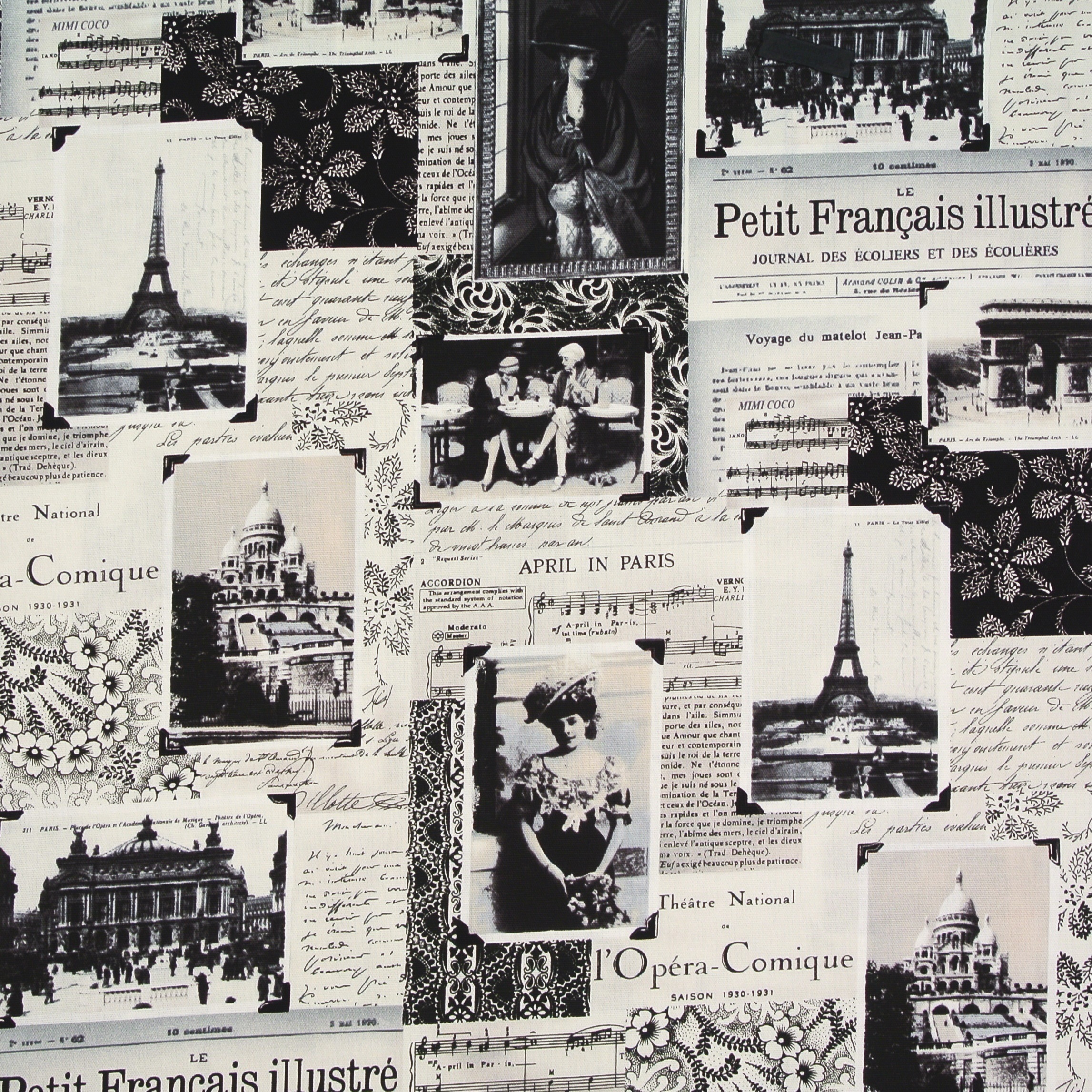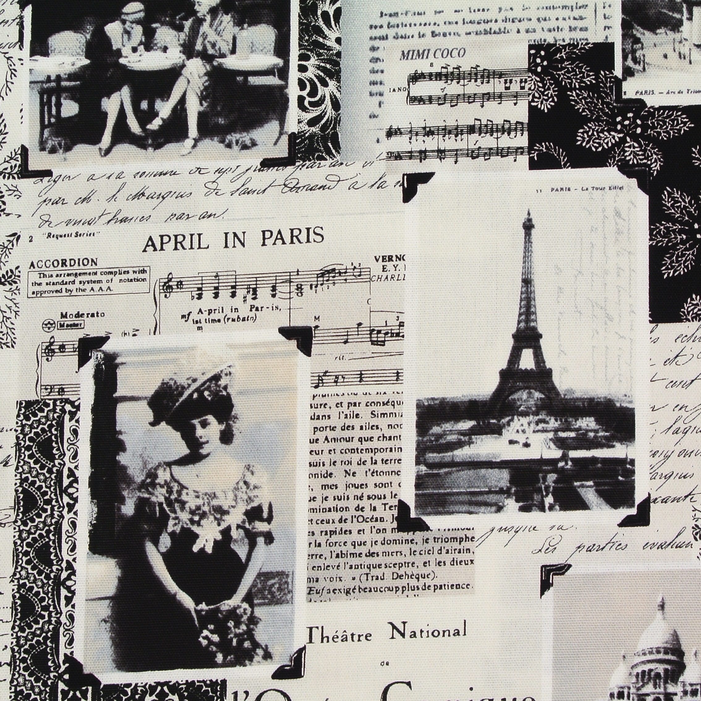 Dekostoff mit nostalgischen Pariser Postkartenmotiven der 1920er Jahre aus der Serie "April in Paris". Ein etwas festerer Stoff für Taschen, Beutel und Dekorationen.