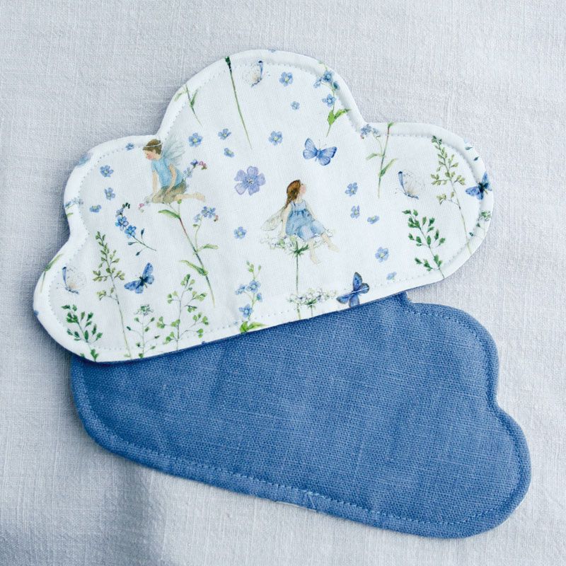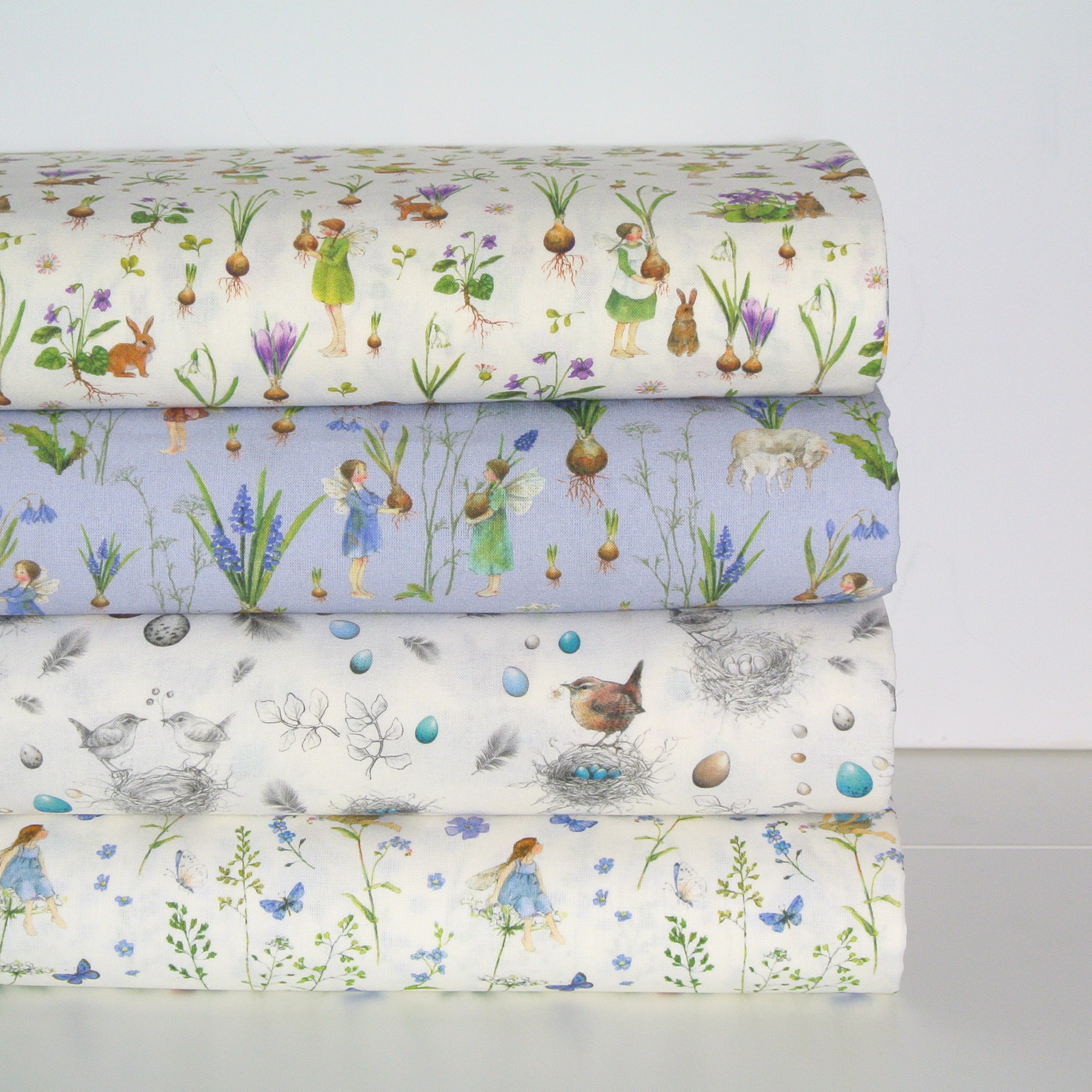 Baumwollstoff mit bezaubernden kleinen Elfenmotiven in Hellblau aus der Serie "Elfengarten" von Daniela Drescher für acufcactum - wunderschön für romantische Dekorationen, Kissen, Kinderkleidung, kleine Täschchen...