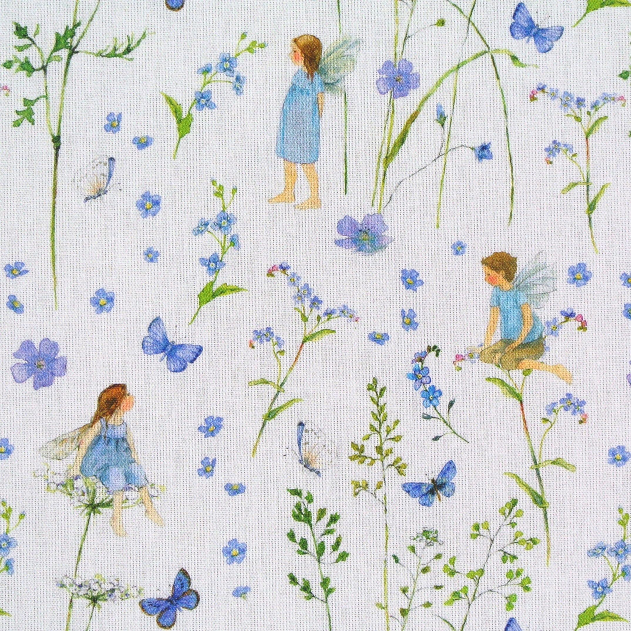Baumwollstoff Elfengarten Feen blau acufactum