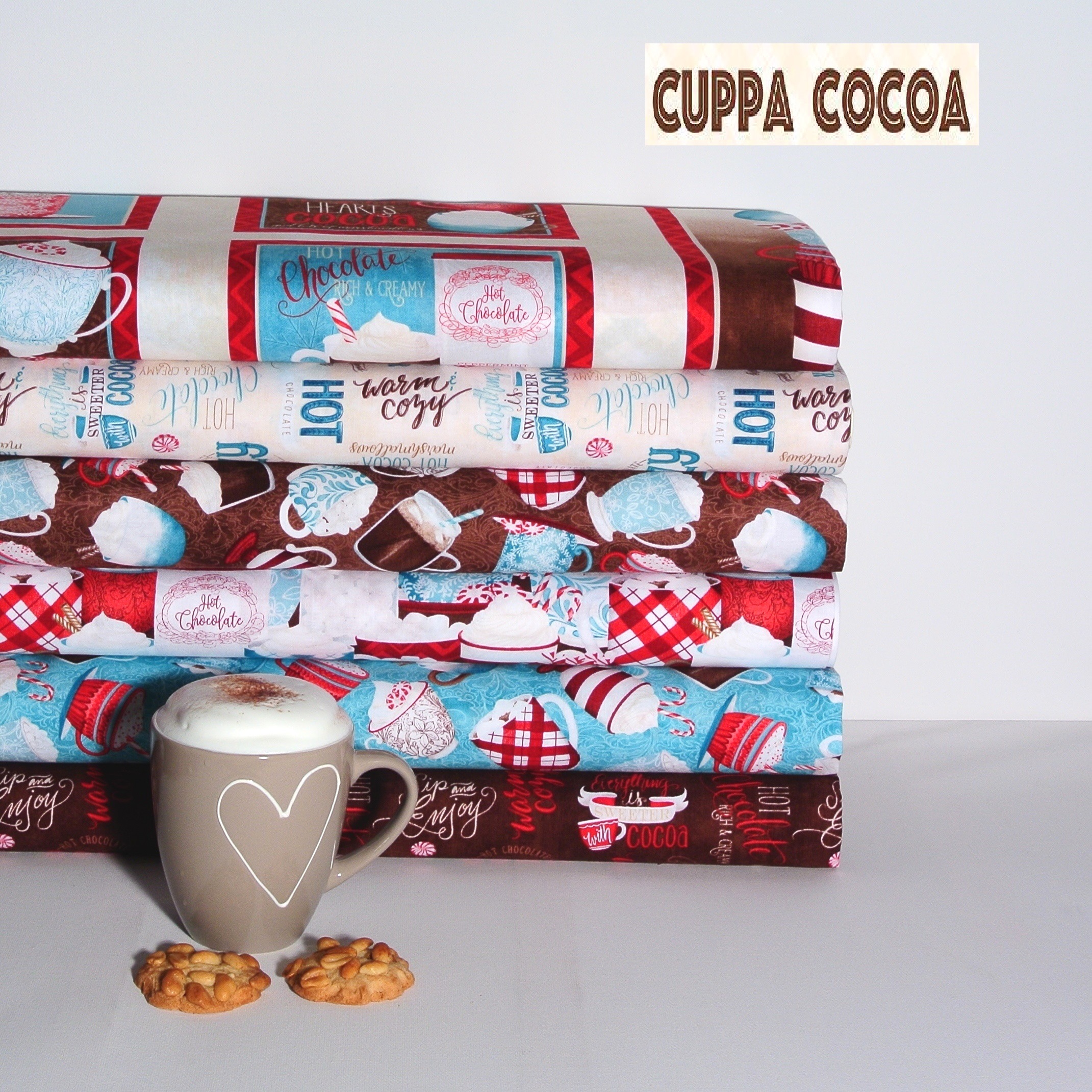 Grosses Patchworkstoff - Panel rund um den Kakao auf Hellbeige aus der Serie "Cuppa Cacoa" von Wilmington Prints.Wunderschön für Patchwork und Dekoration für die Küche.