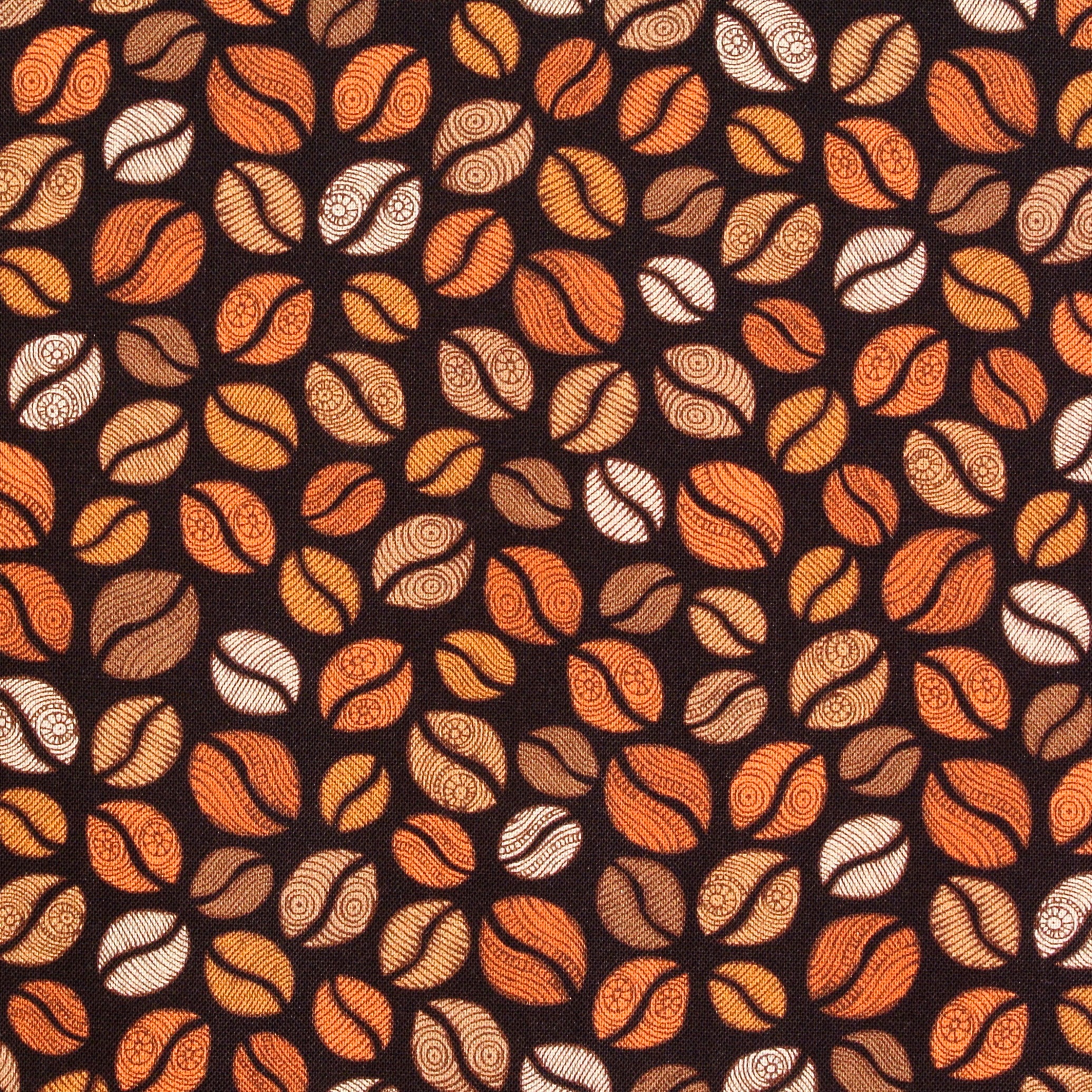 Patchworkstoff mit vielen Kaffeebohnen auf Braun aus der Serie "Coffee Break".