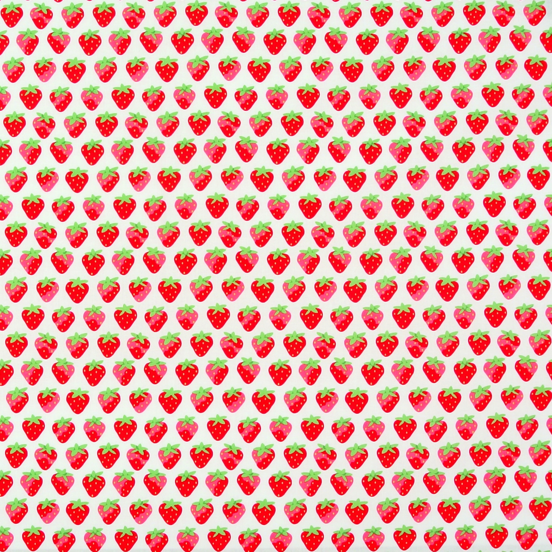 Patchworkstoff mit vielen süssen Erdbeeren auf Weiss aus der Serie "Sunrise Studio".