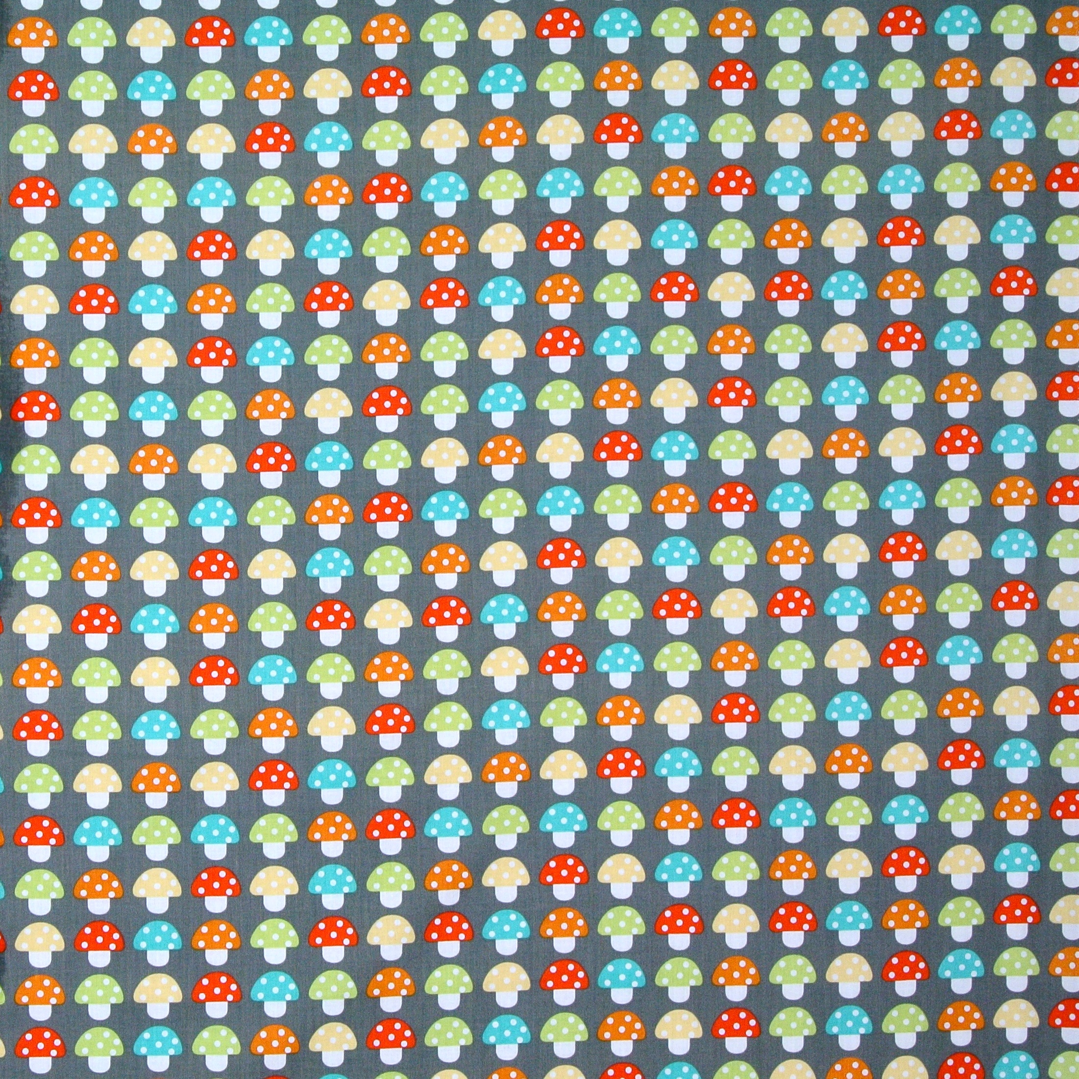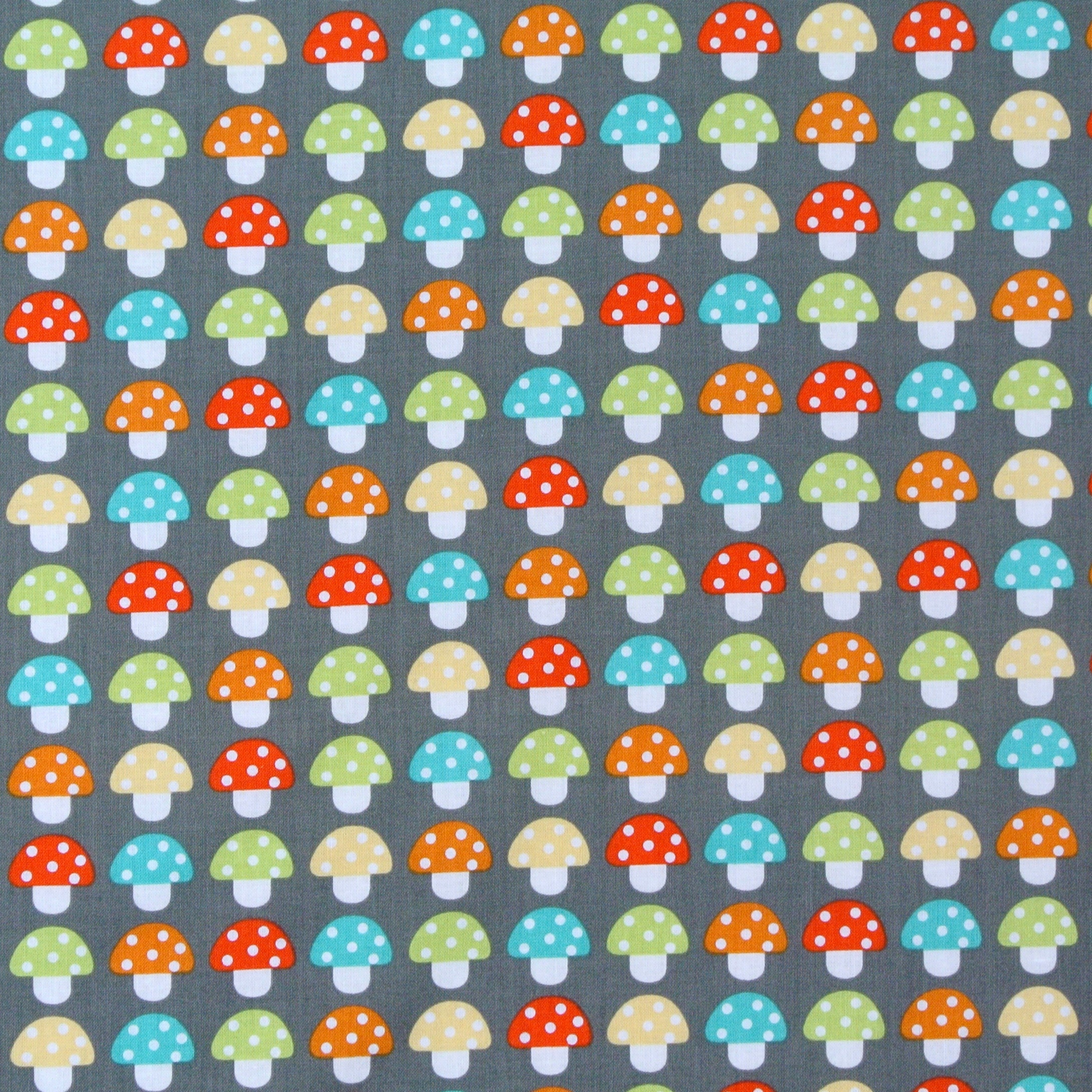 SALE Patchworkstoff mit vielen Fliegenpilzen auf Grau aus der Serie "Woodlands Pals" von Robert Kaufman. Ein schöner Stoff für Küchenaccessoires, Tischwäsche, Patchwork und Dekorationen.