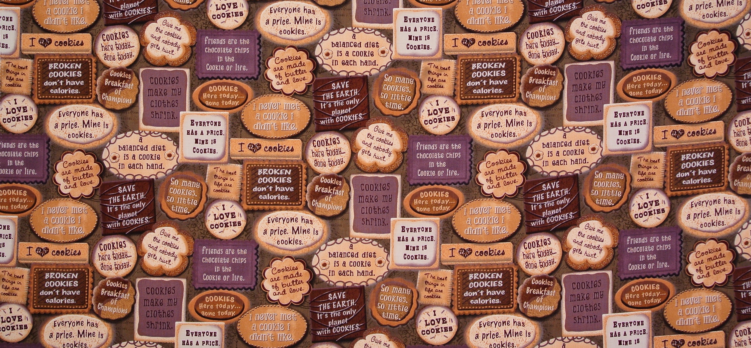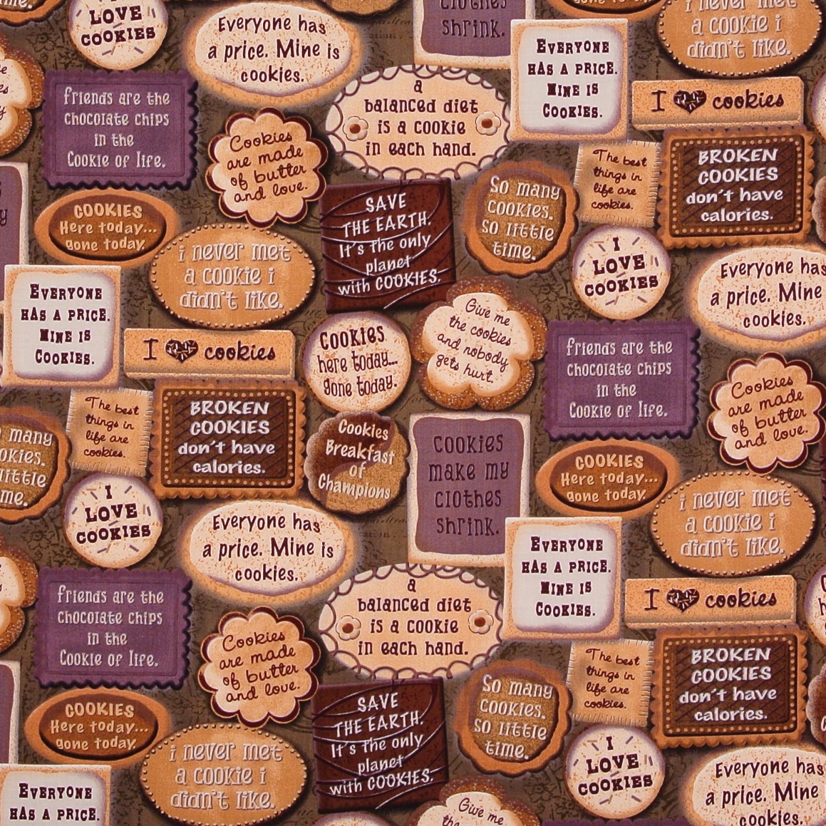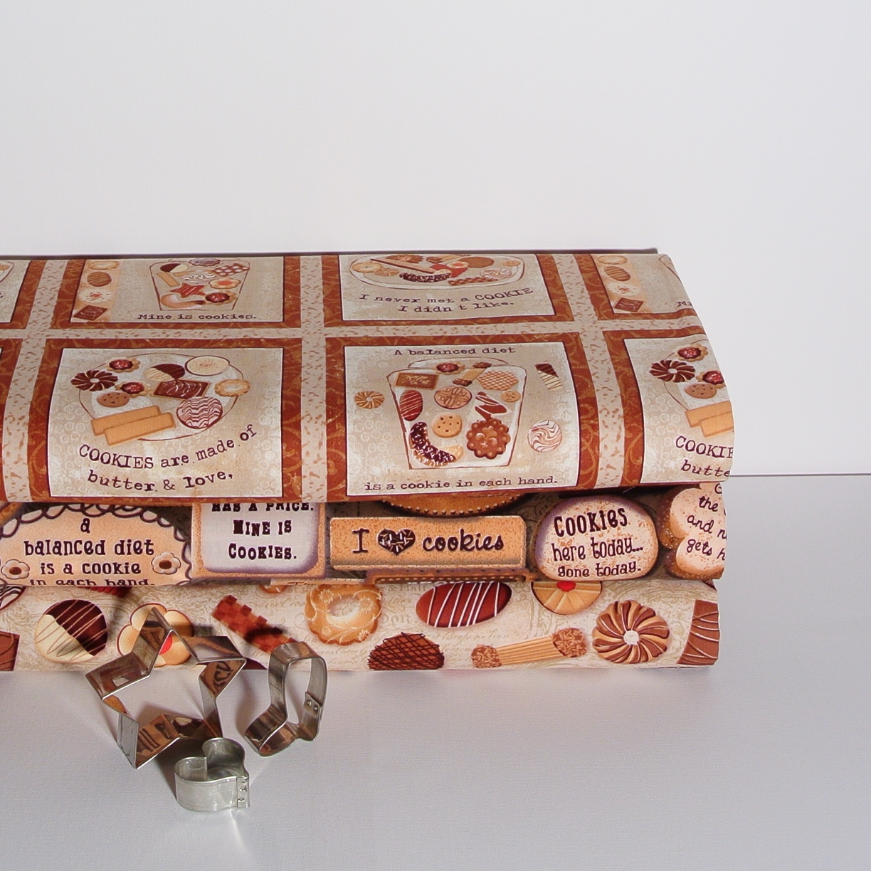 I love Cookies Patchworkstoff mit witzigen Sprüchen rund um Plätzchen und Cookies aus der Serie "Biscotti" - wunderschön für Patchwork und Dekorationen.