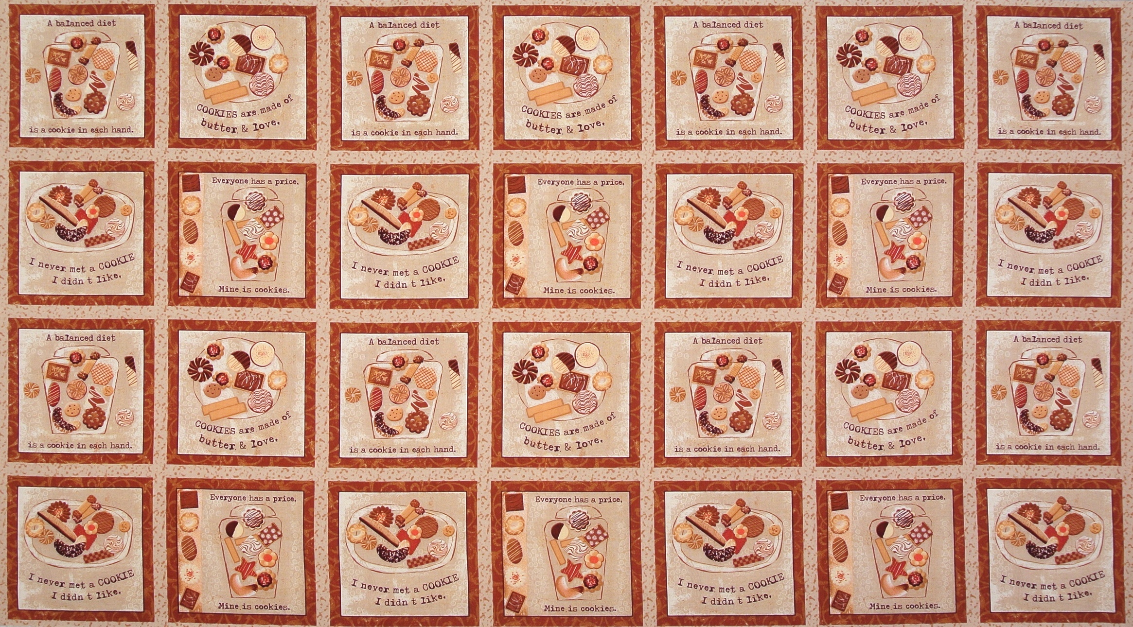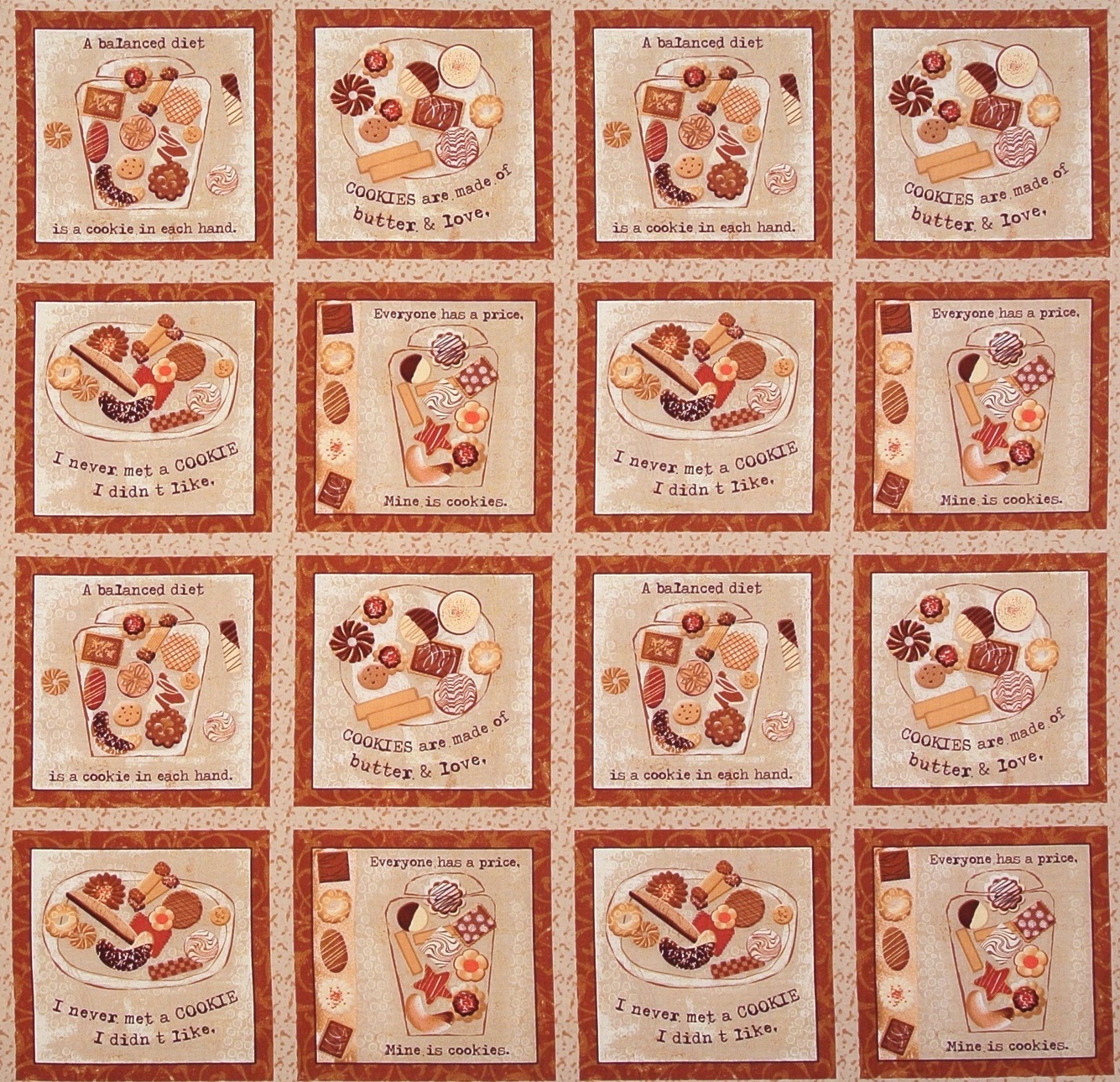 Grosses Patchworkstoffpanel mit leckeren Keksen und witzigen Sprüchen aus der Serie "Biscotti" - wunderschön für Patchwork und Dekorationen.