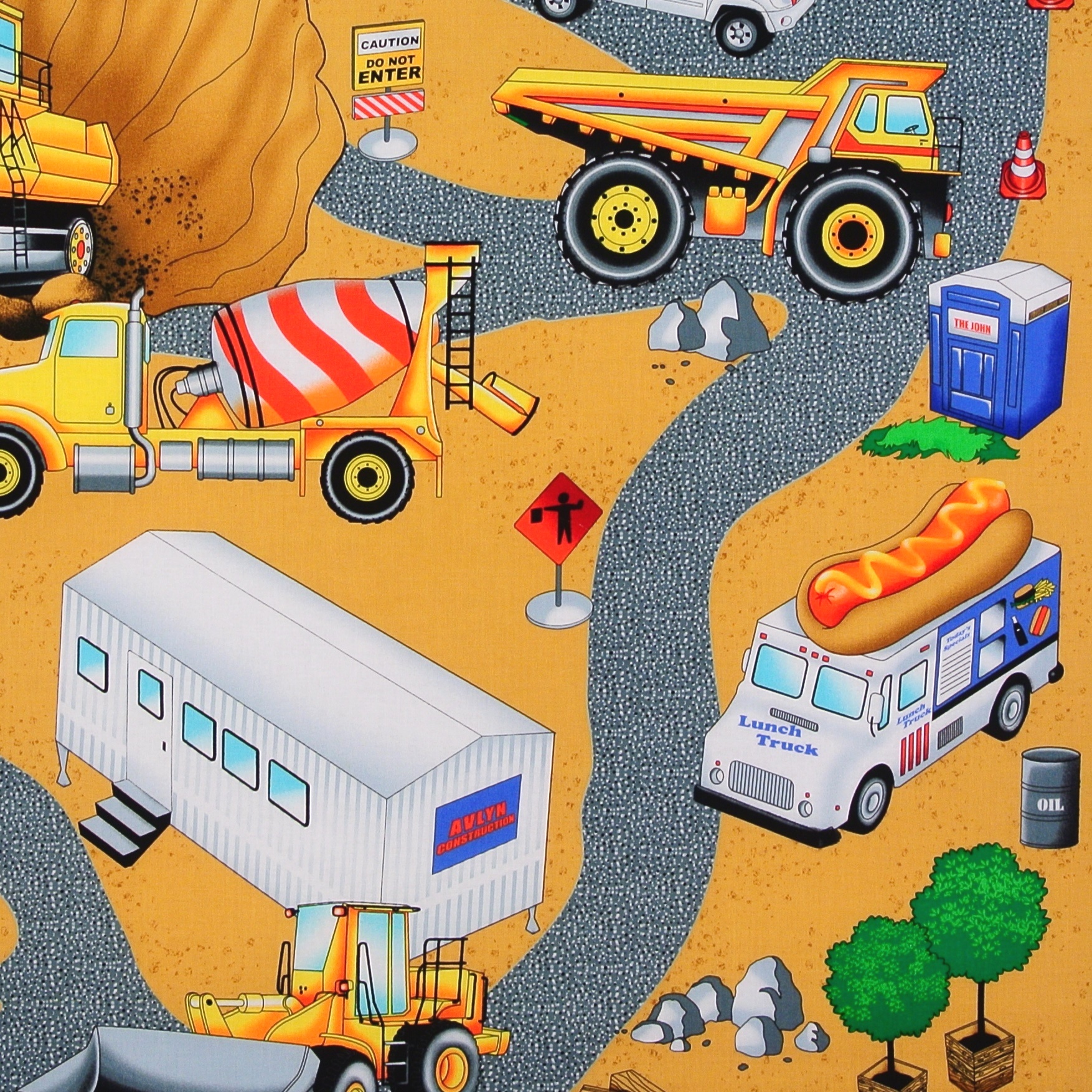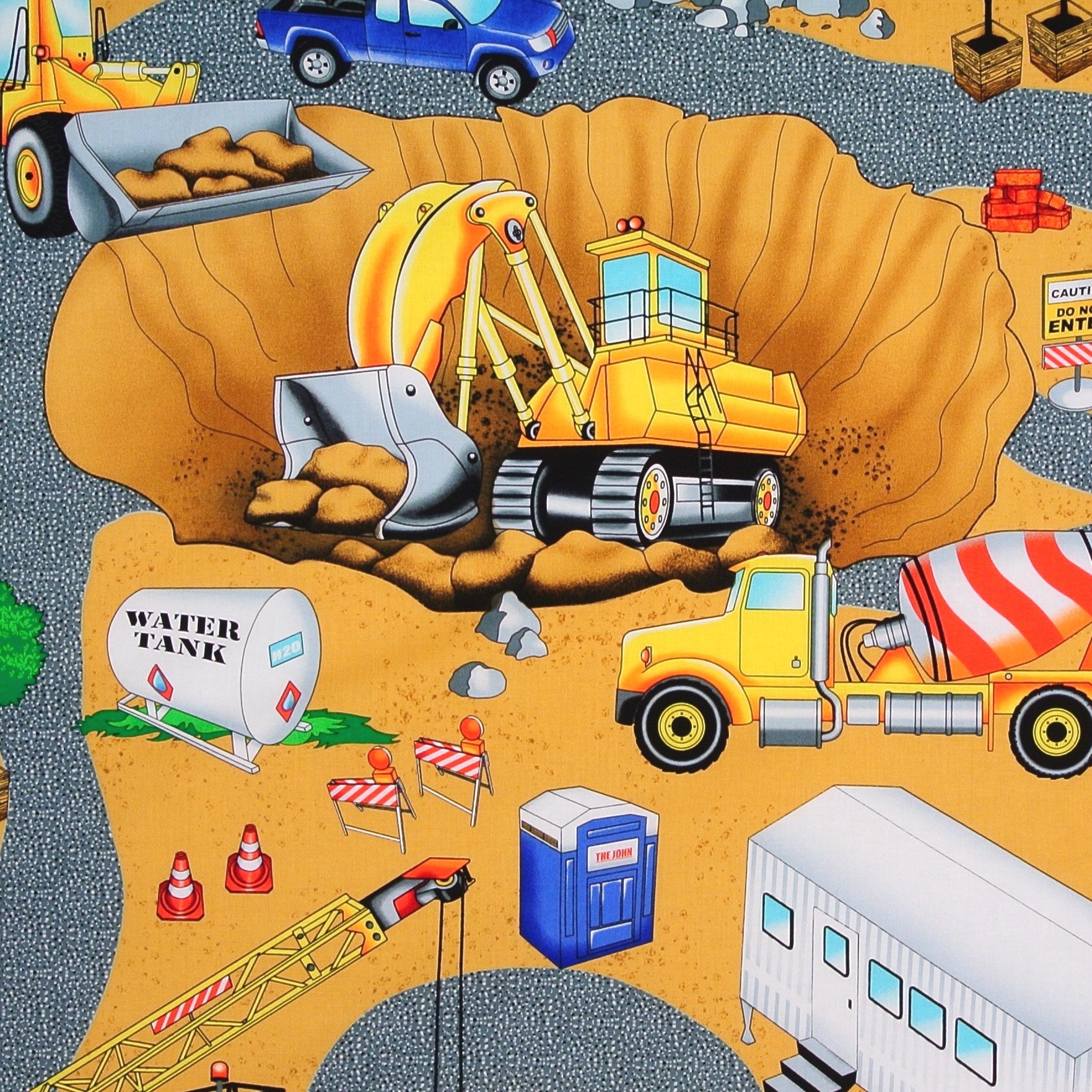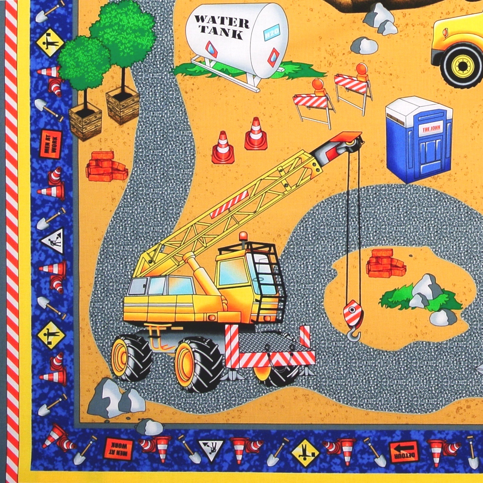 SALE Patchworkstoff Baustelle Bagger Hard Hats Panel