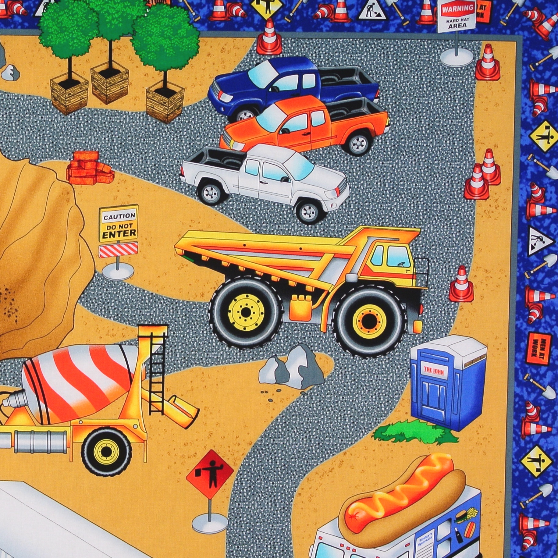 Sale Großes Patchworkpanel mit allem, was zu einer Baustelle gehört aus der Serie "Hard Hats". Hier gibt es ganz viel zu entdecken.