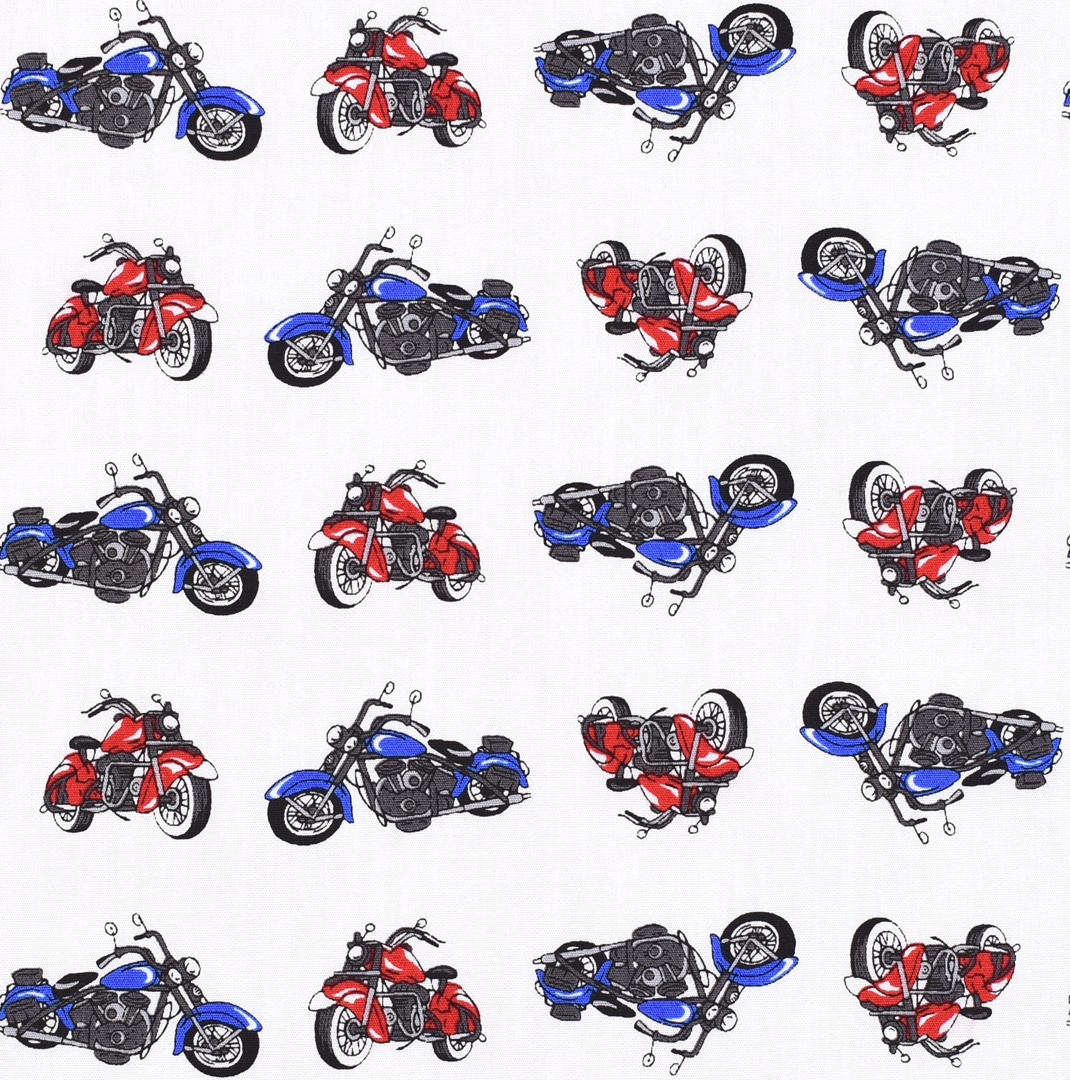 Patchworkstoff mit Motorrädern aus der Serie "Motocross"