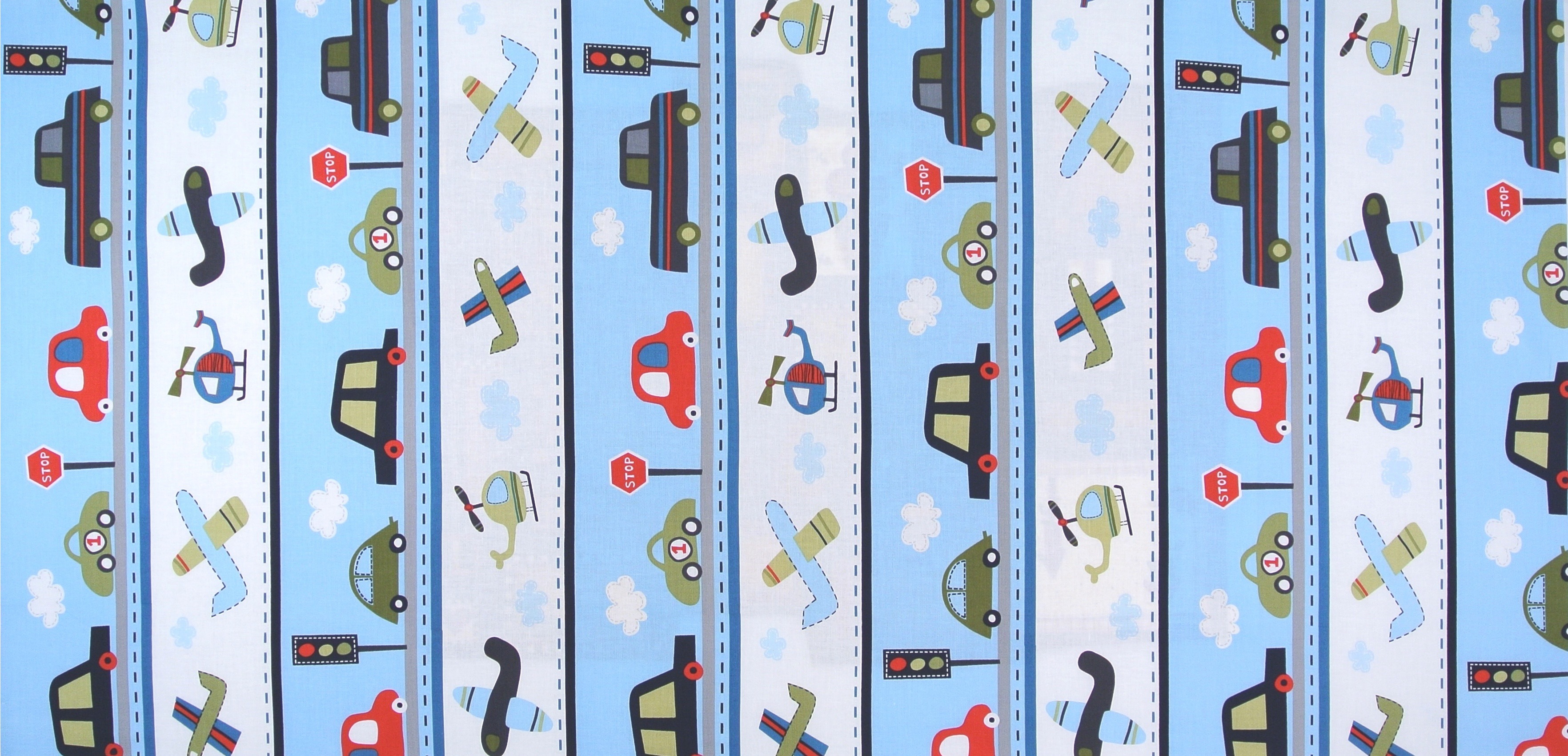 SALE Patchworkstoff mit vielen Autos, Flugzeugen und Verkehrszeichen aus der Serie "Vroom" von Robert Kaufman. Die Bordüren verlaufen längs und parallel zu den Webkanten. (s. Abb. 2)