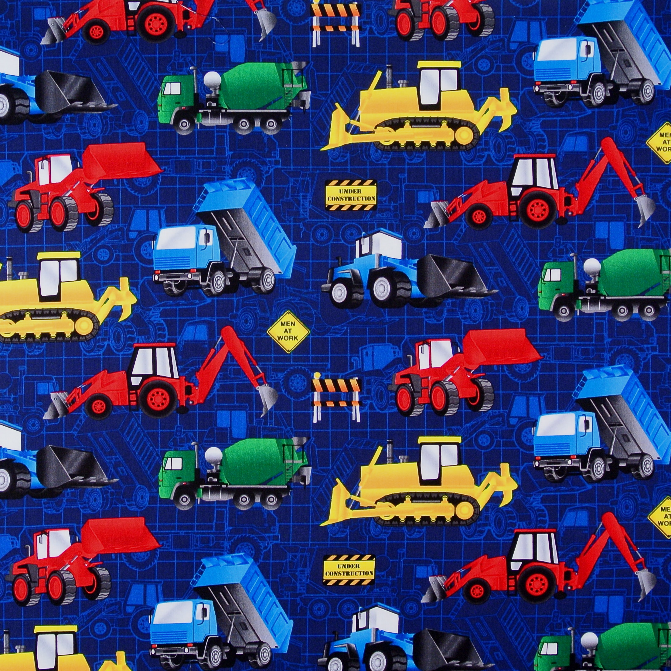 SALE 0,7 m Patchworkstoff Baustelle Baufahrzeuge blau