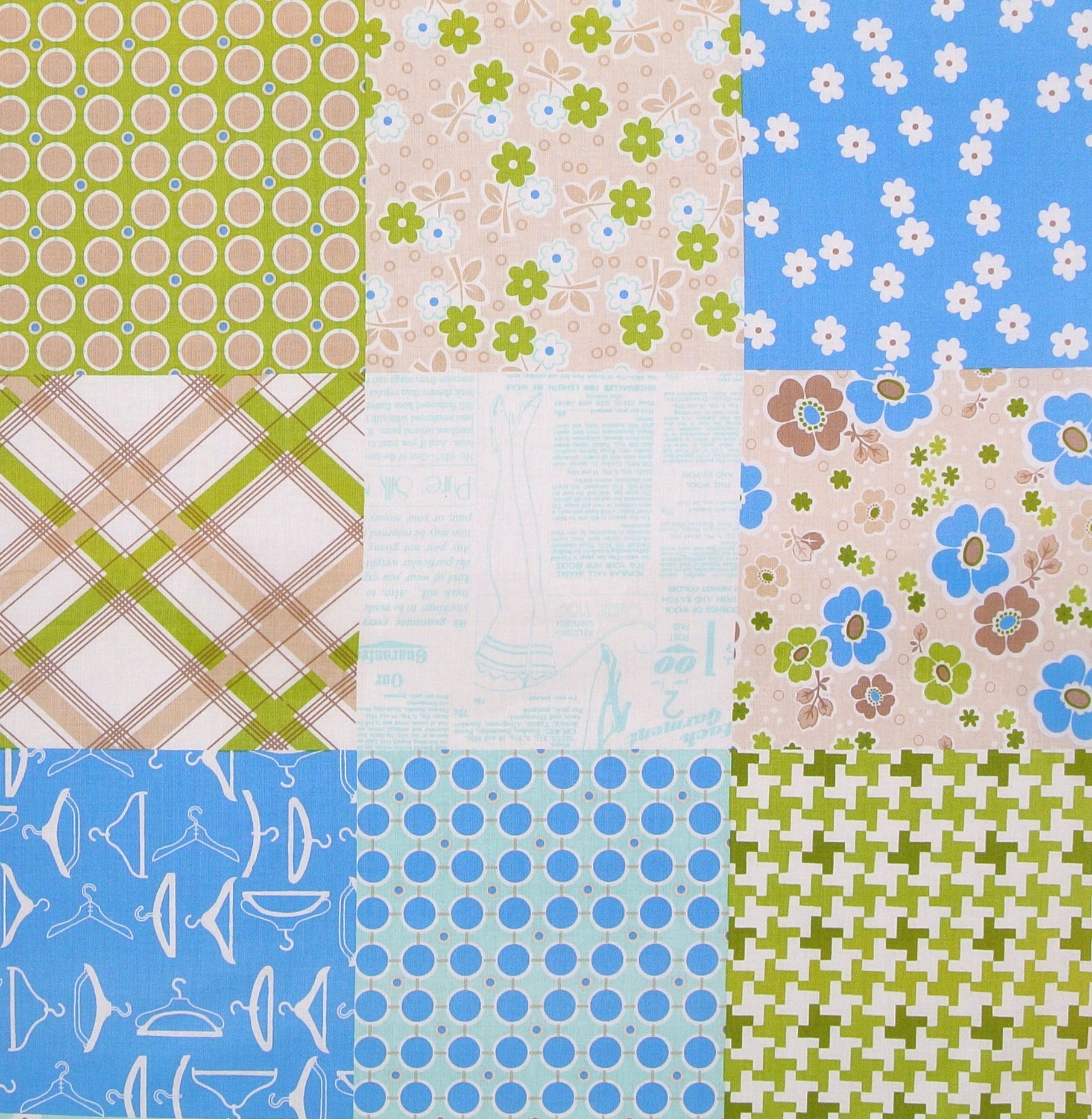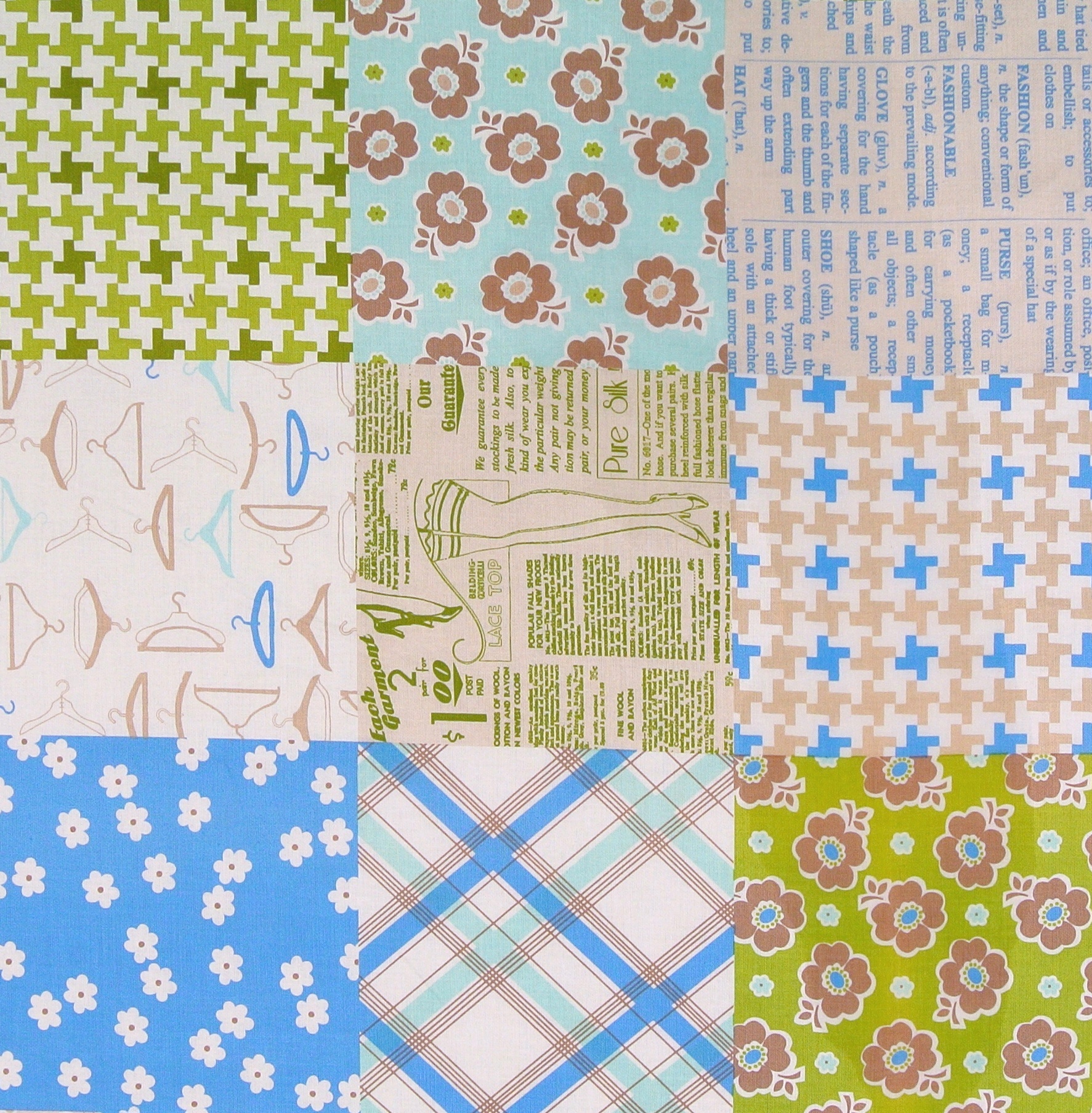 SALE Patchworkstoff mit Mustermix im Retro-Style. Kleine Motive mit Blumen, Punkten, Schrift und Mode mit Türkis aus der Serie "Millies Closet" von Riley Blake. Ein schöner Stoff für Kissen, Taschen, Täschchen, Patchwork und Dekorationen.