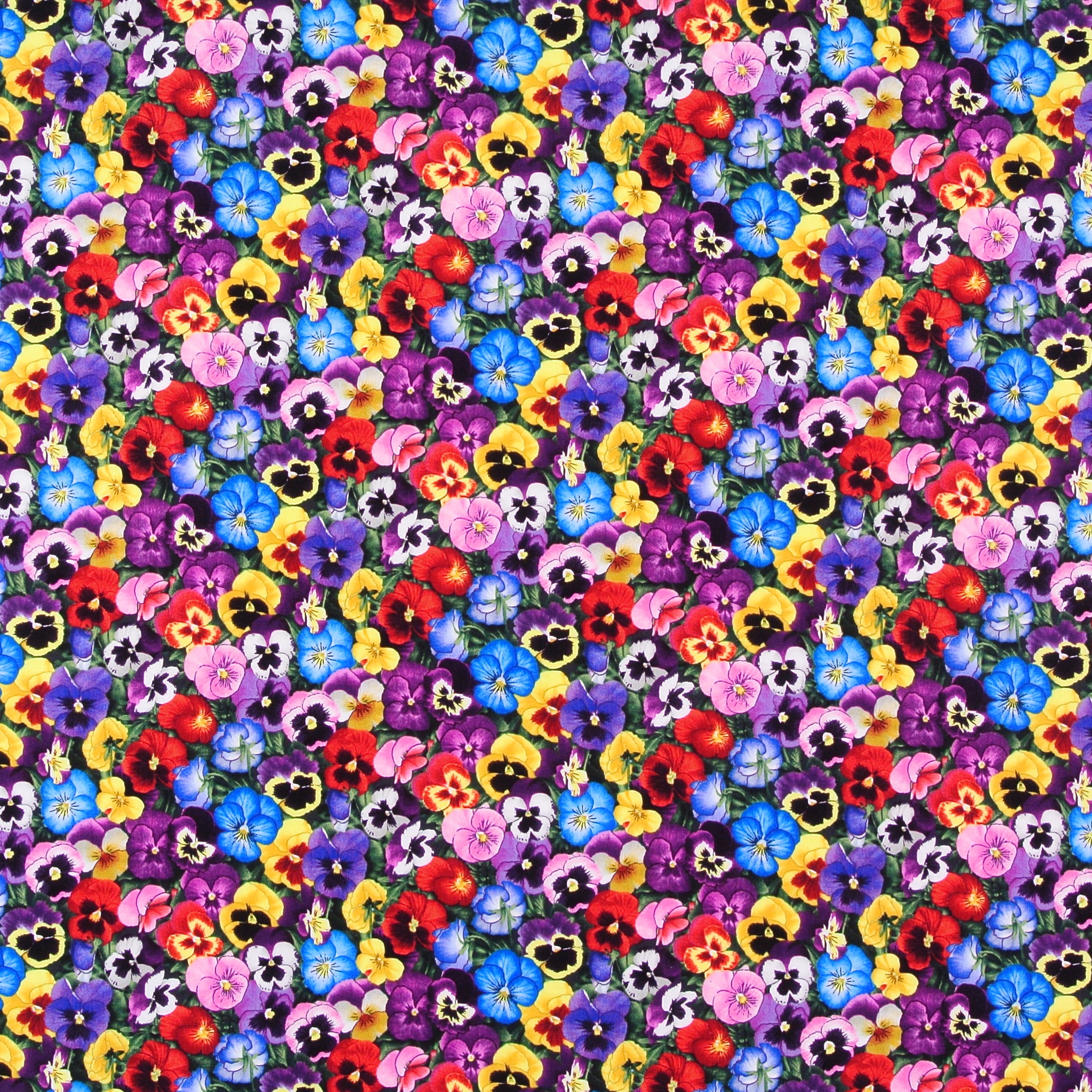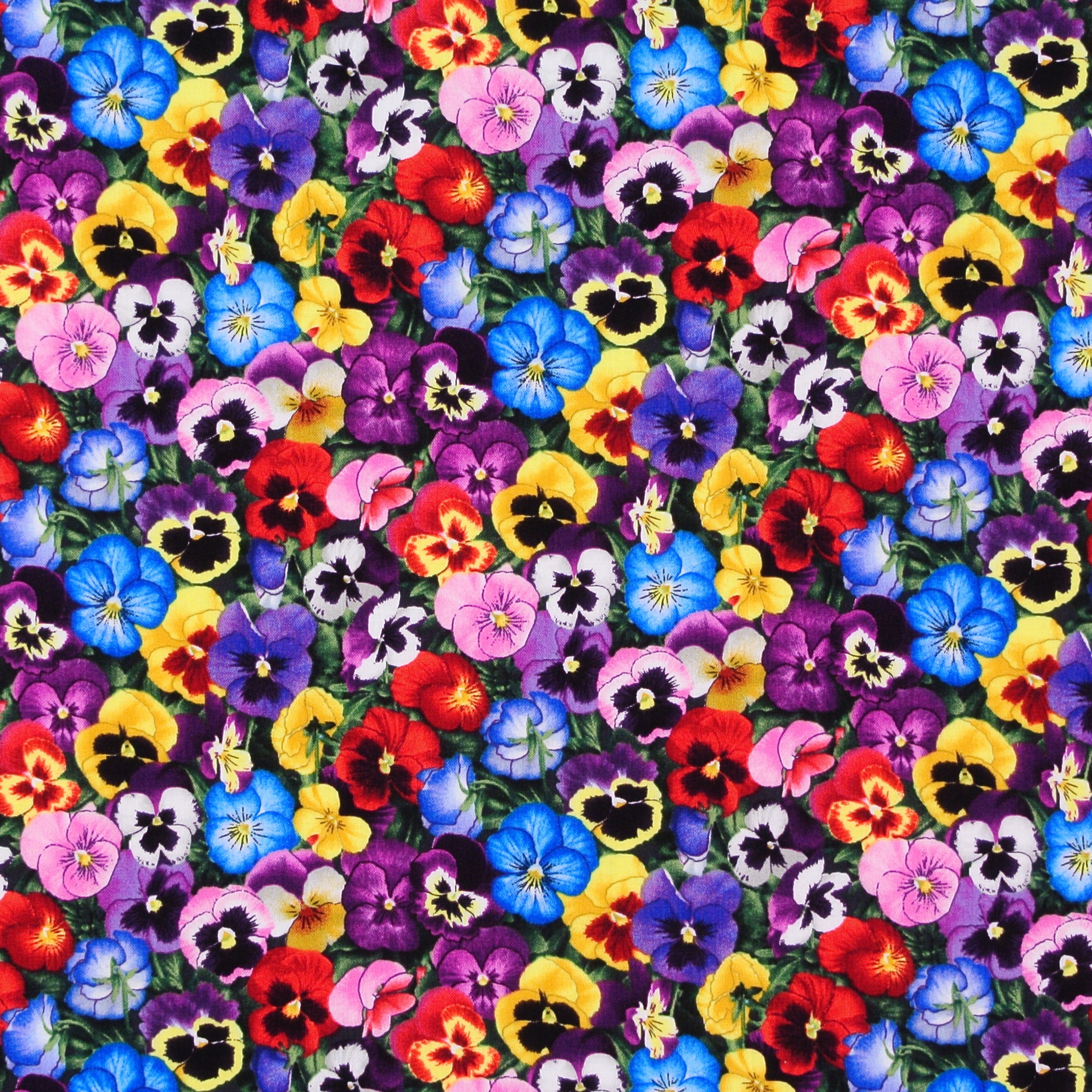 Floraler Patchworkstoff mit vielen kleinen bunten Stiefmütterchen aus der Serie "Lovely Pansies".