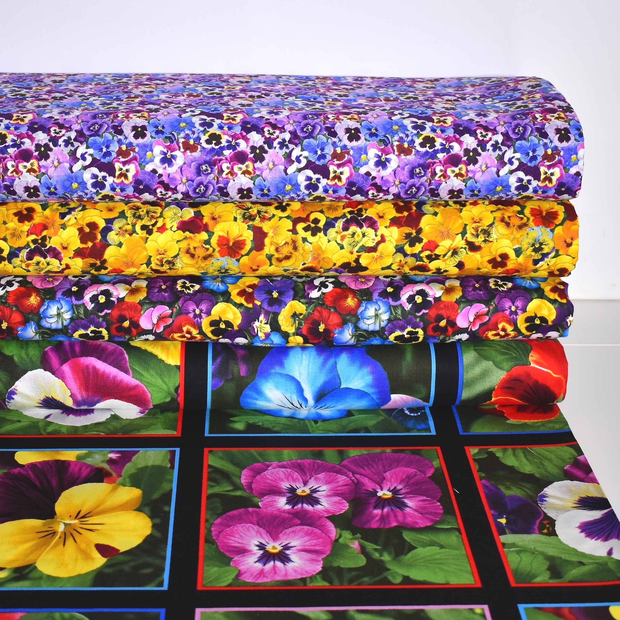 Patchworkstoff mit gelben Stiefmütterchen "Lovely Pansies" Stiefmütterchen - schöner... mehr