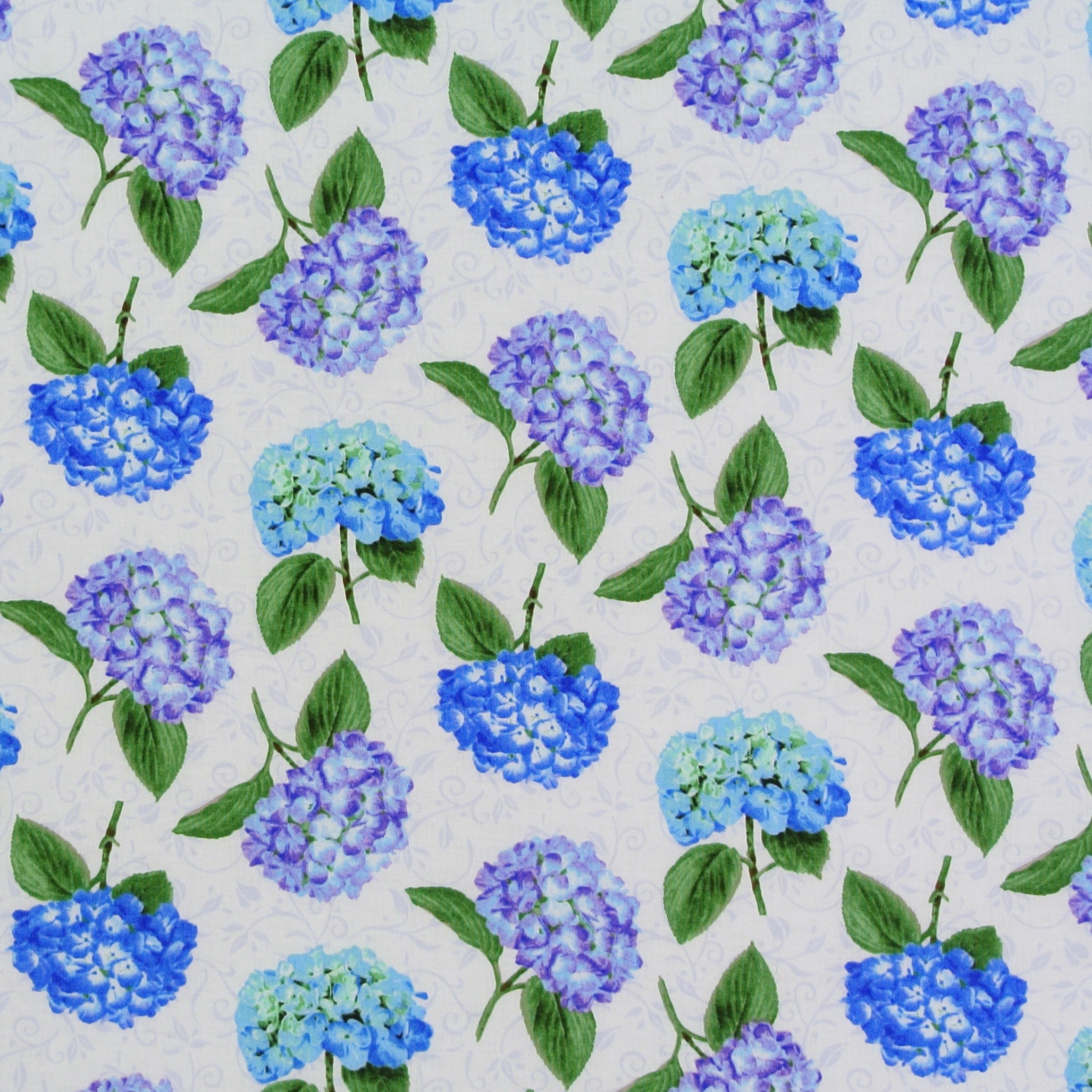 Patchworkstoff mit üppigen blauen Hortensien aus der Serie "Hydrangea" von Wilmington Prints.