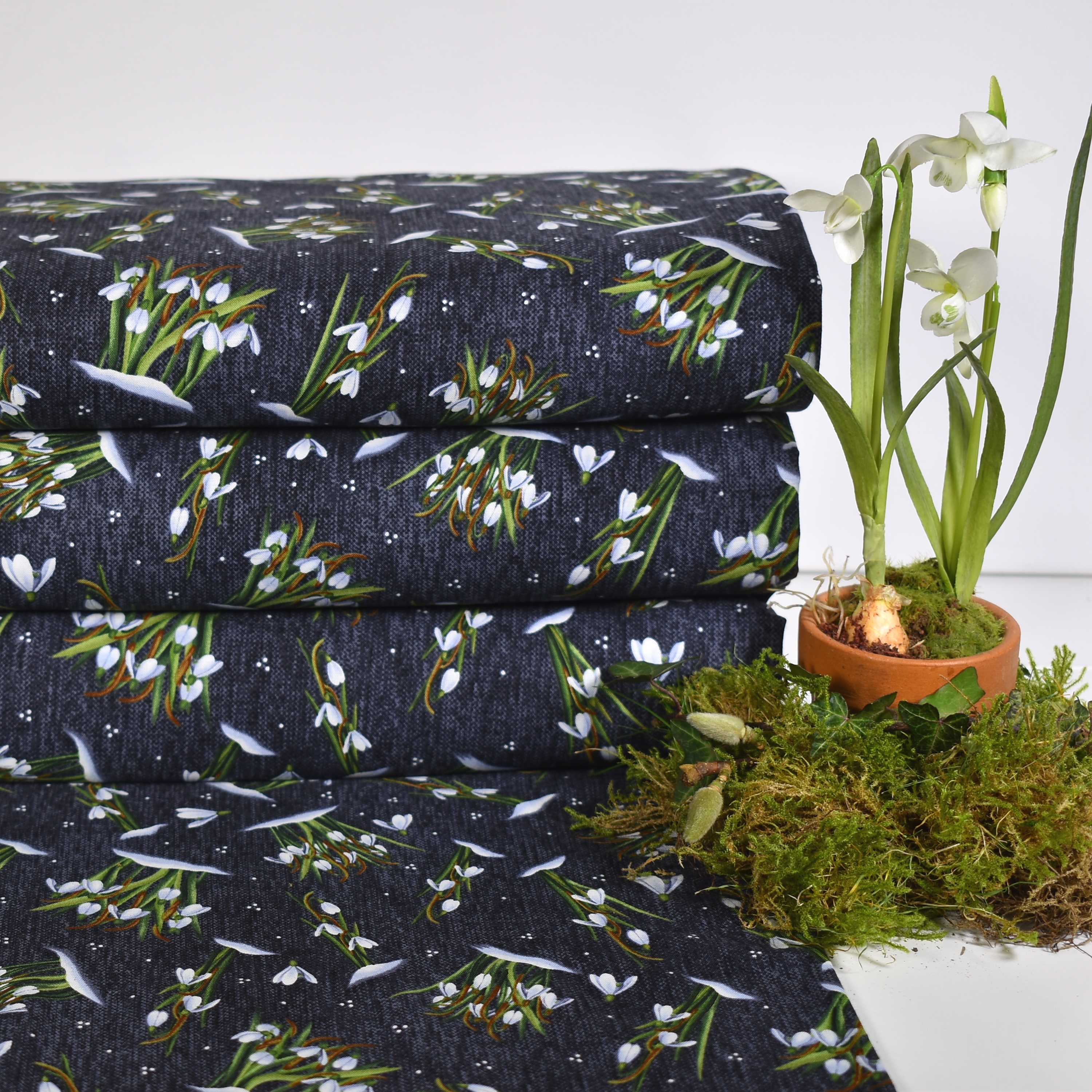 Patchworkstoff Panel mit Schneeglöckchen aus der Serie "Frozen in Time"