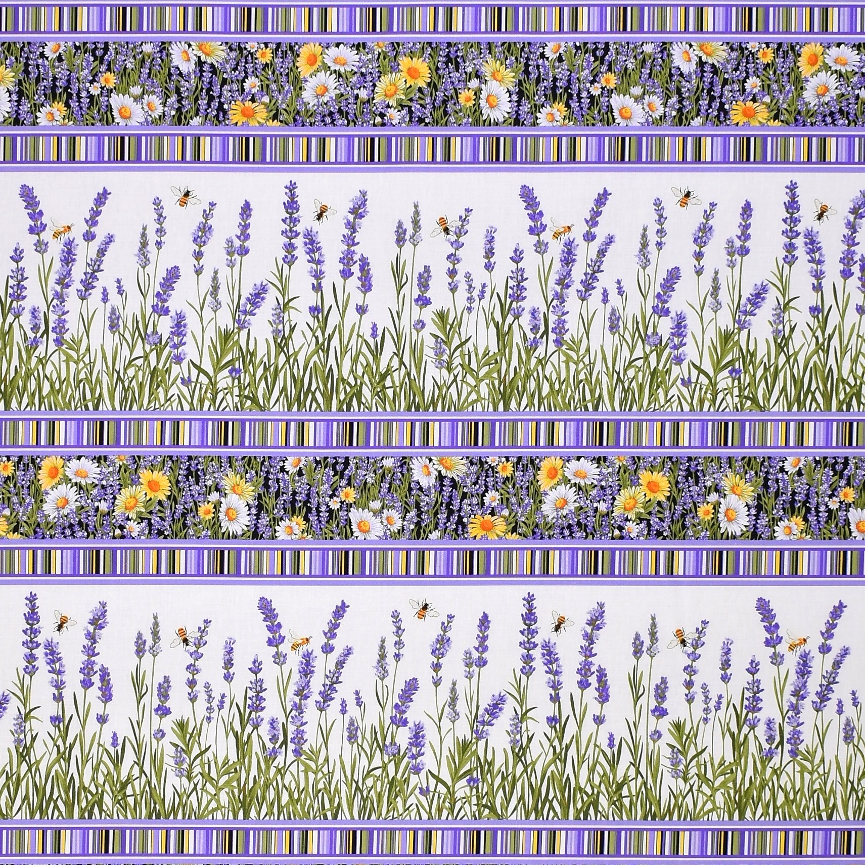 0,65 m Patchworkstoff Lavendel Bienen Lavender Market Bordüre Webware