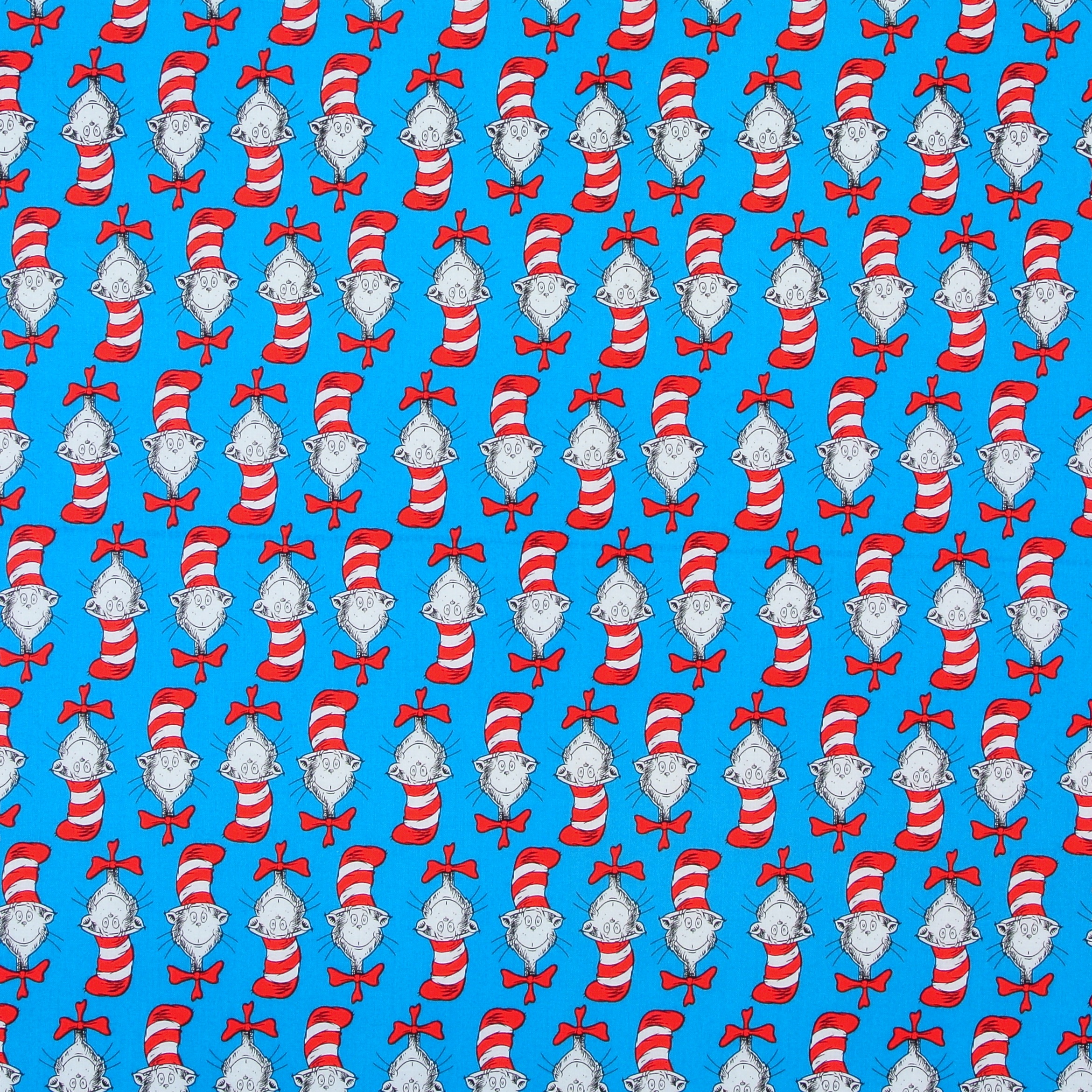 Patchworkstoff mit der Katze mit dem grossen Hut aus der Serie "Celebrate Seuss!" nach den Motiven aus den bekannten amerikanischen Kinderbüchern.