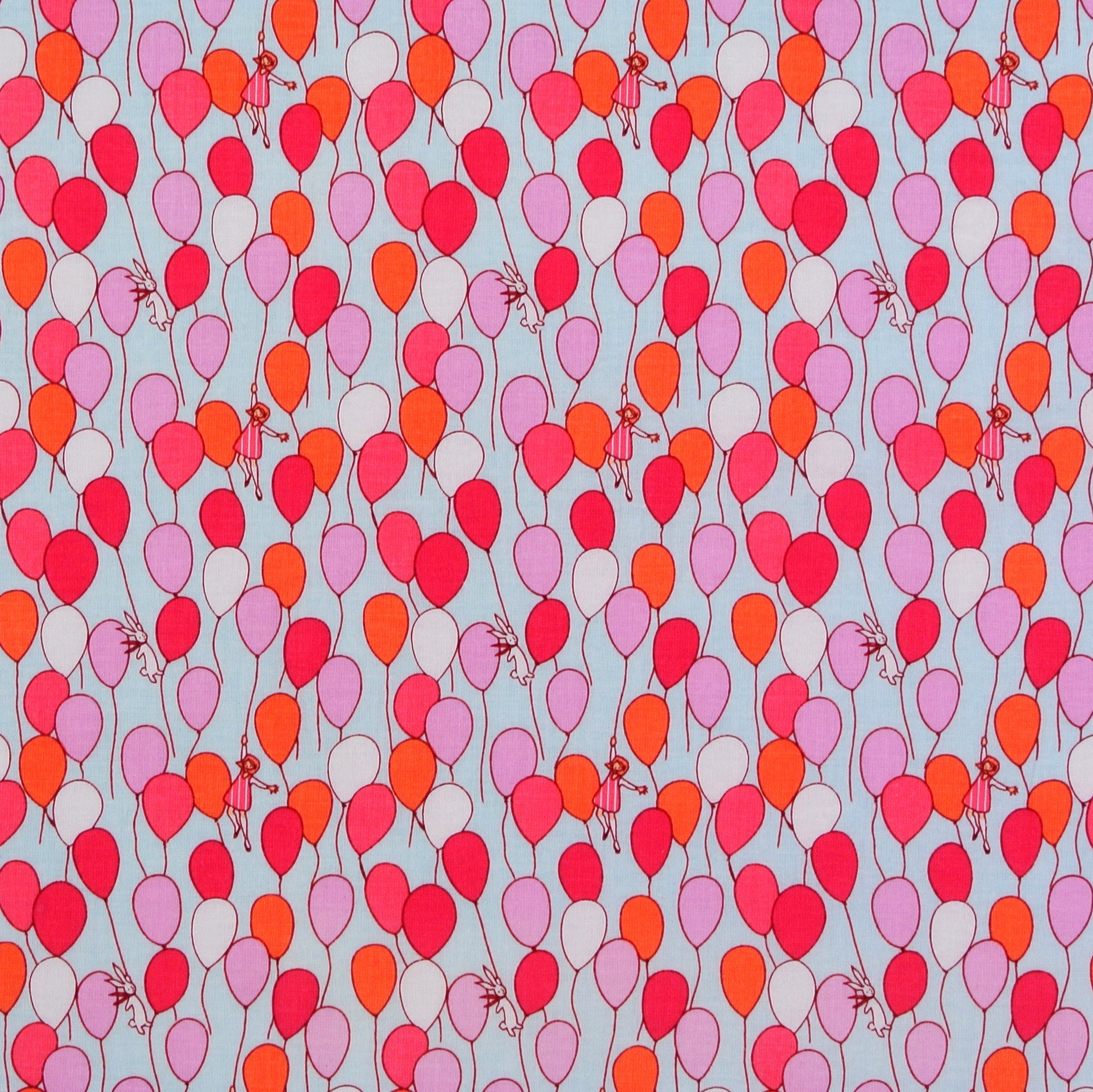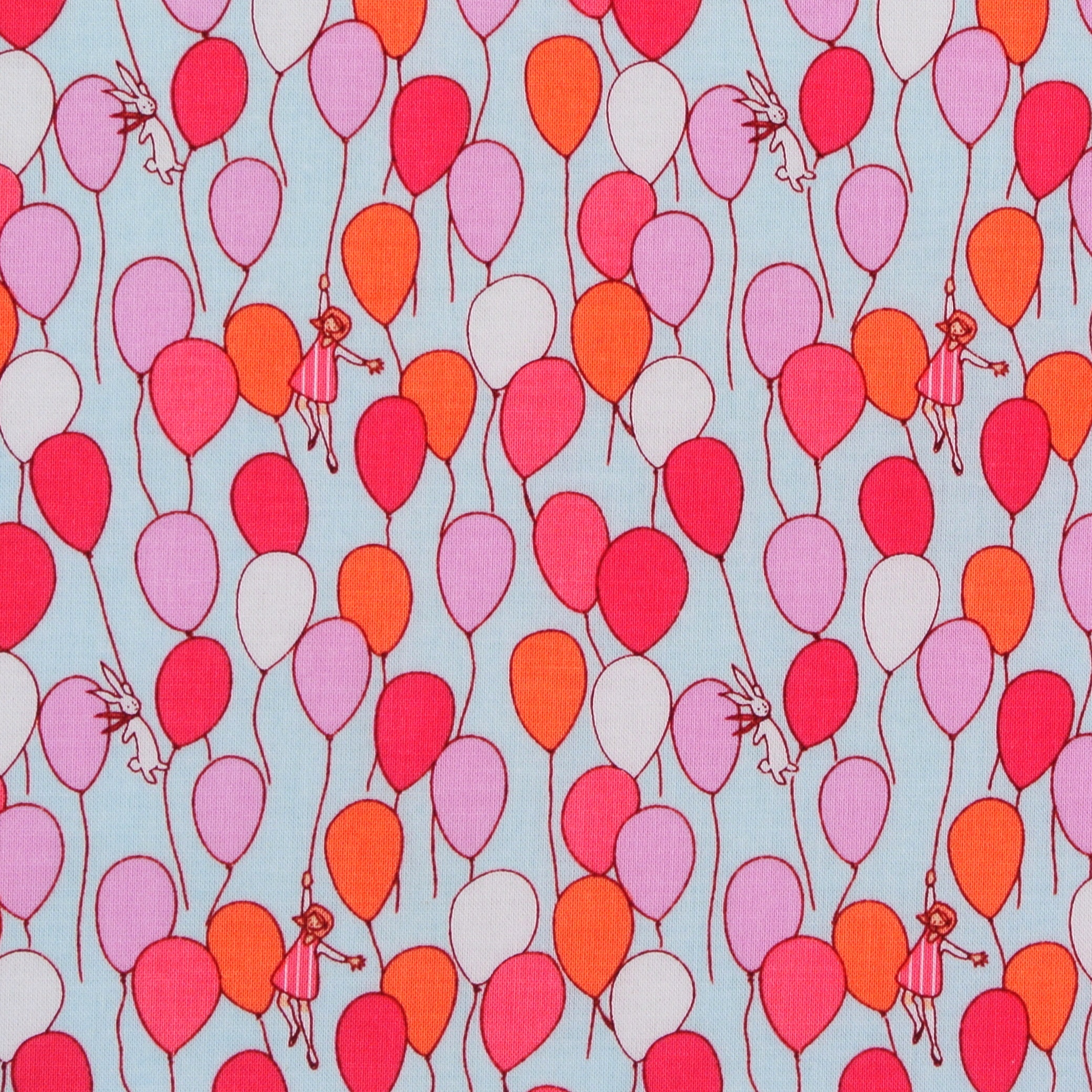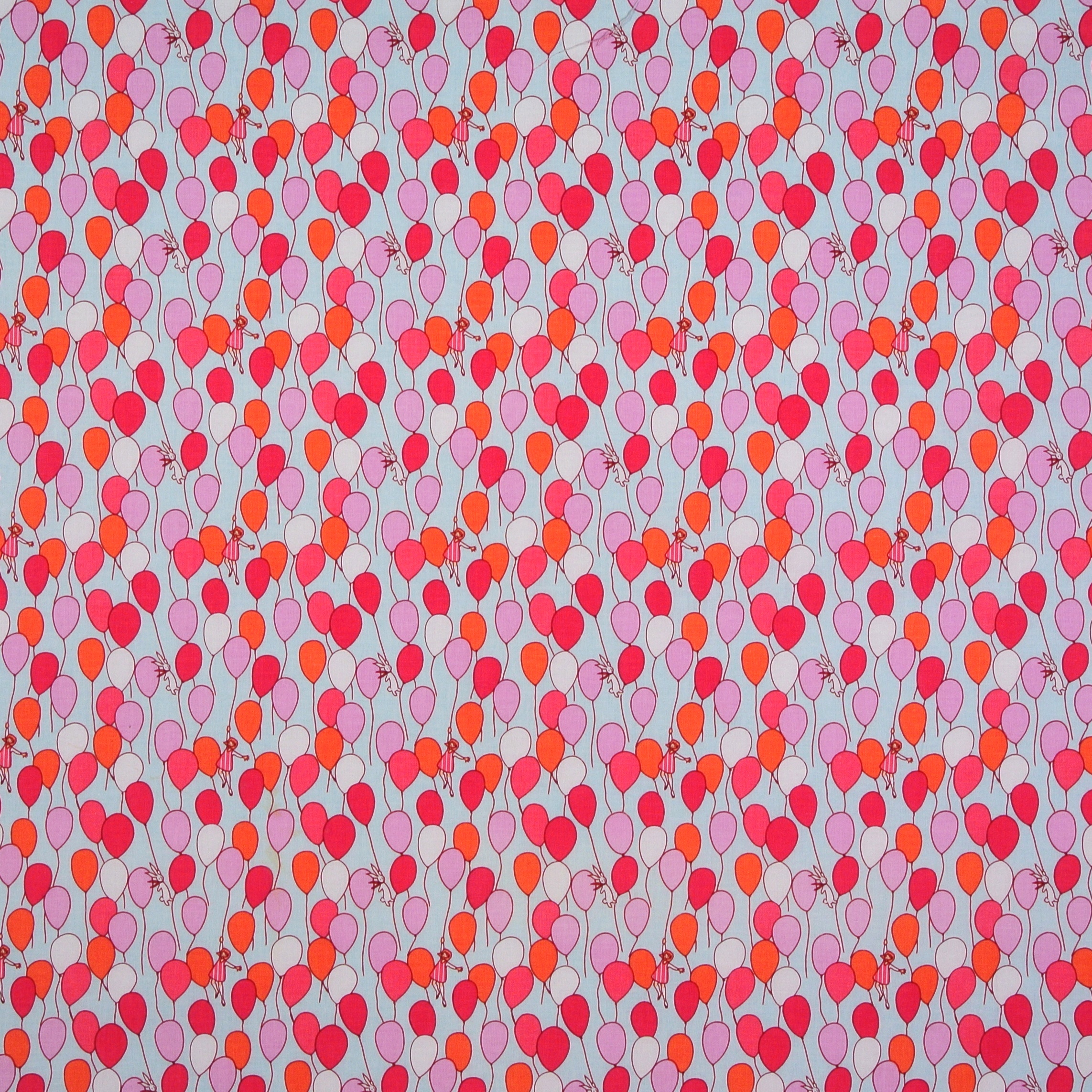 Patchworkstoff zum Kombinieren mit vielen Luftballon und winzigen Mädchen und Häschen -  ein schöner Stoff für Patchwork, Kindersachen und Dekorationen fürs Kinderzimmer.