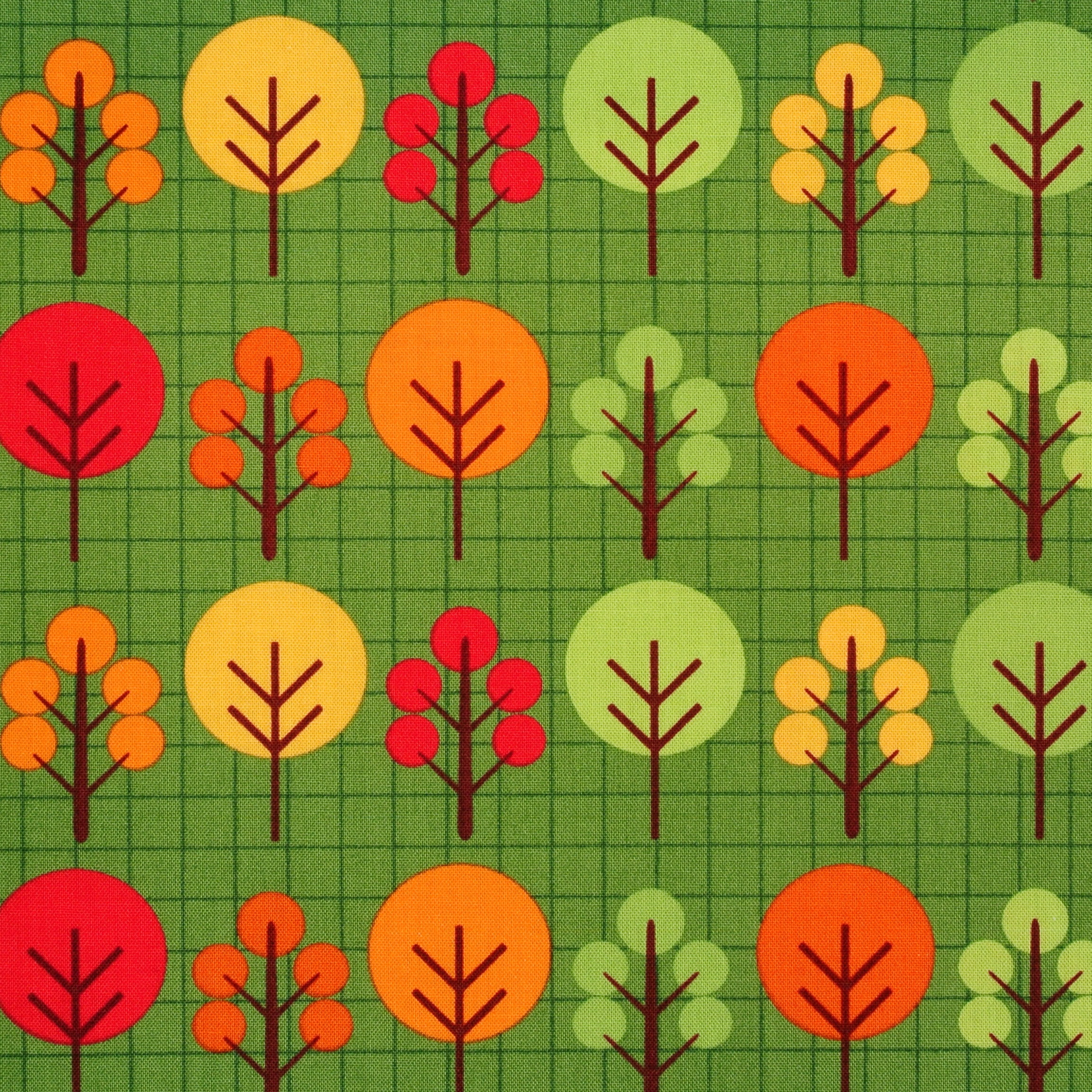 Patchworkstoff mit vielen kleinen Bäumen auf Dunkelgrün aus der Serie "City Centre" - ein schöner Kinderstoff von Robert Kaufman.