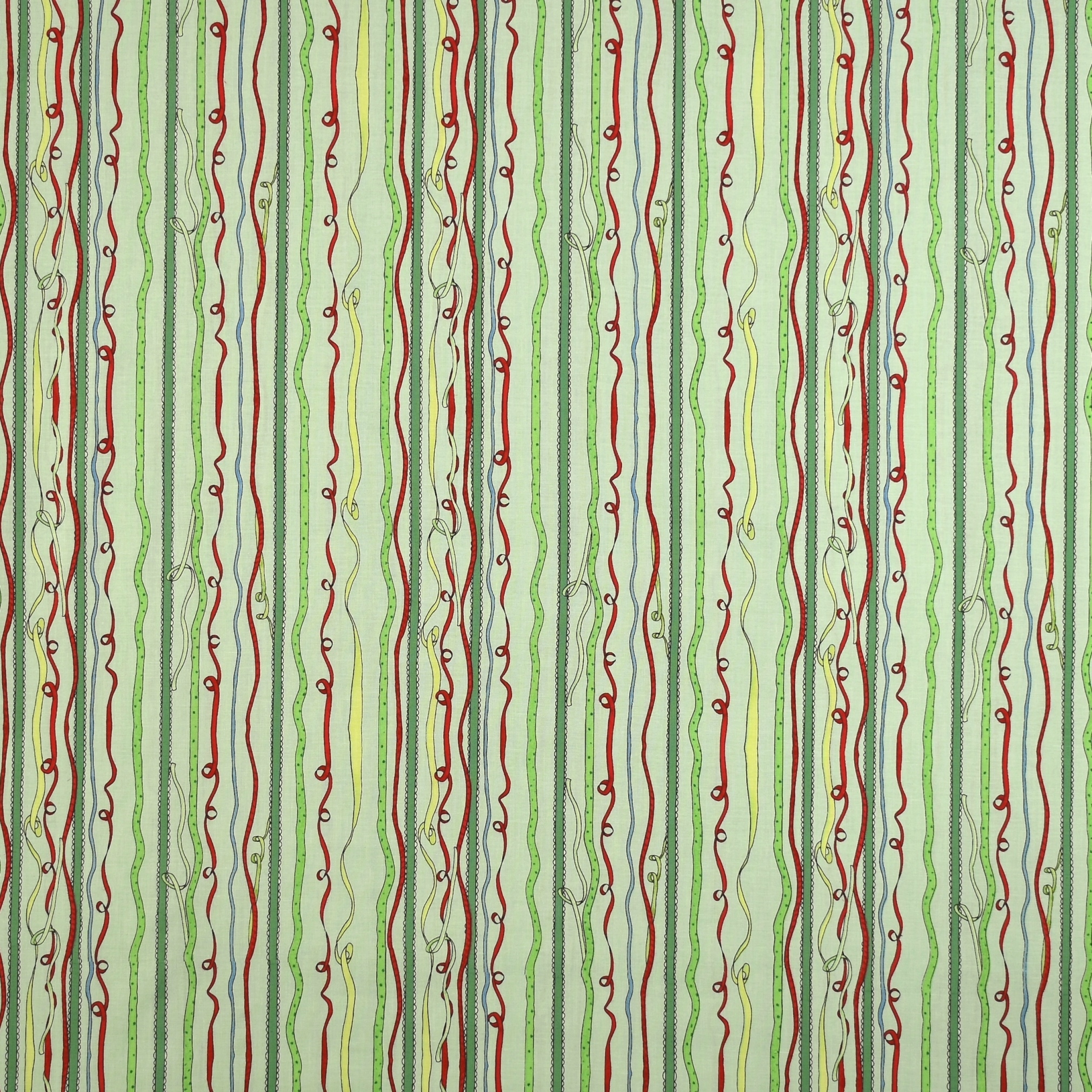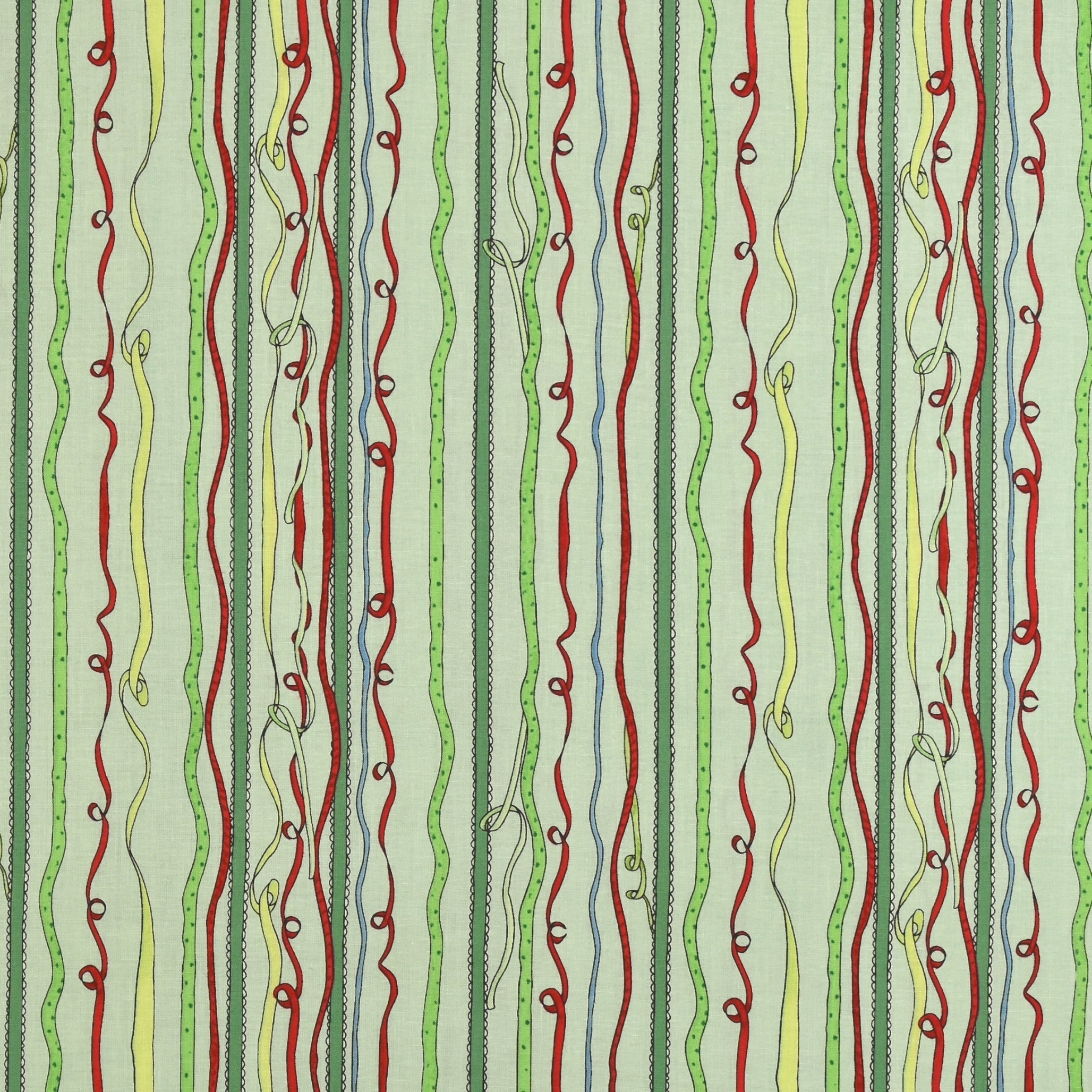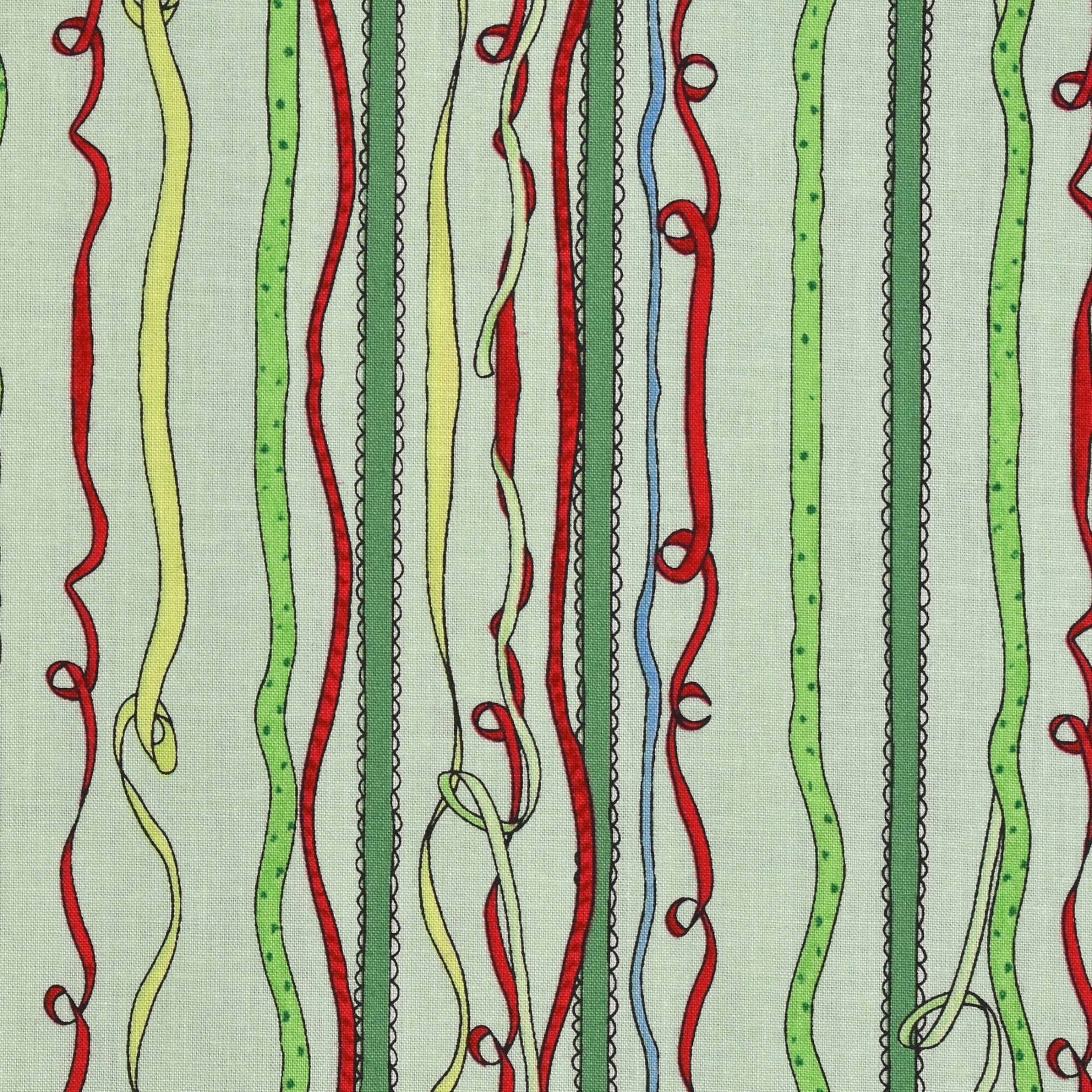 Ausgefallener Patchworkstoff mit bunten Bändern und Luftschlangen für das weihnachtliche Dekorieren auf Hellgrün aus der Serie "Just what I wanted".