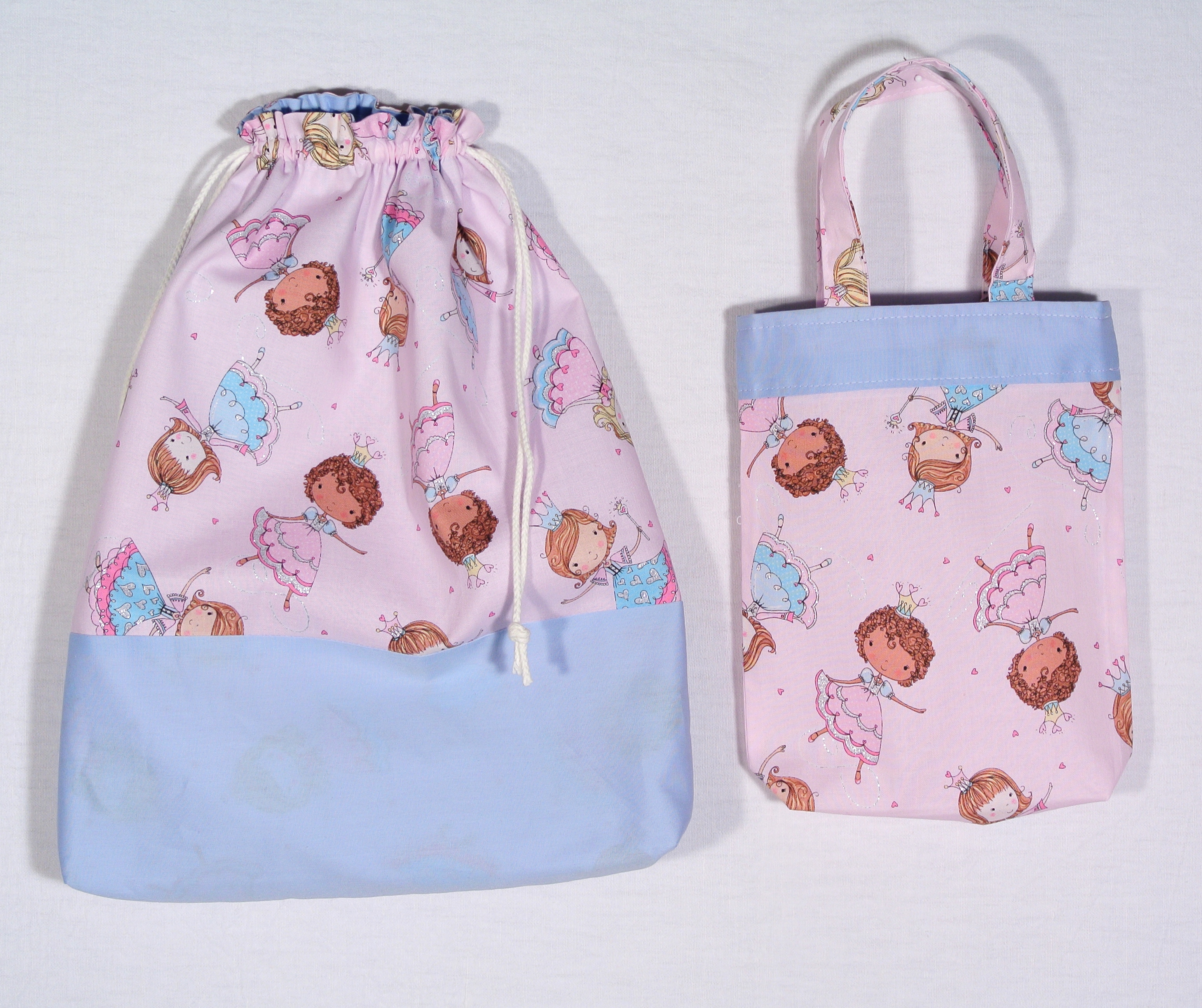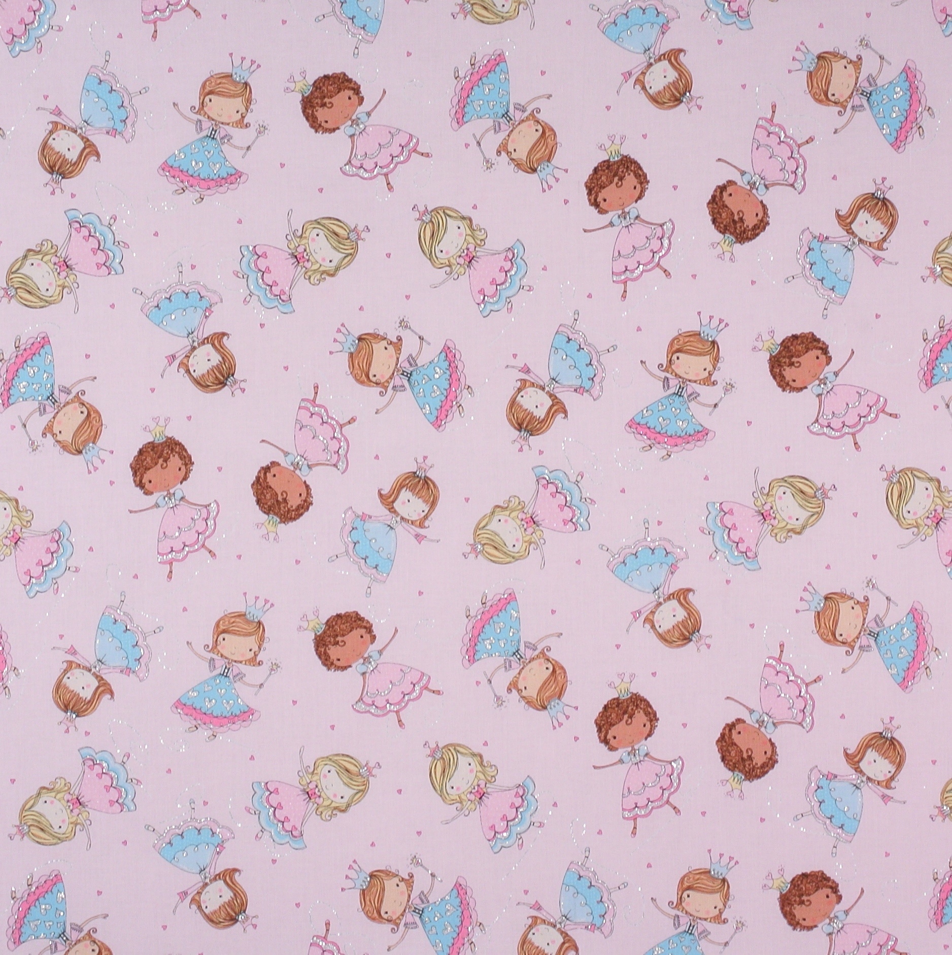 Zauberhaftes Design für kleine Mädchen: Patchworkstoff mit kleinen Prinzessinnen auf Rosa aus der Serie "Her Majesty". Er ist zart mit Glitter in Silber bedruckt.