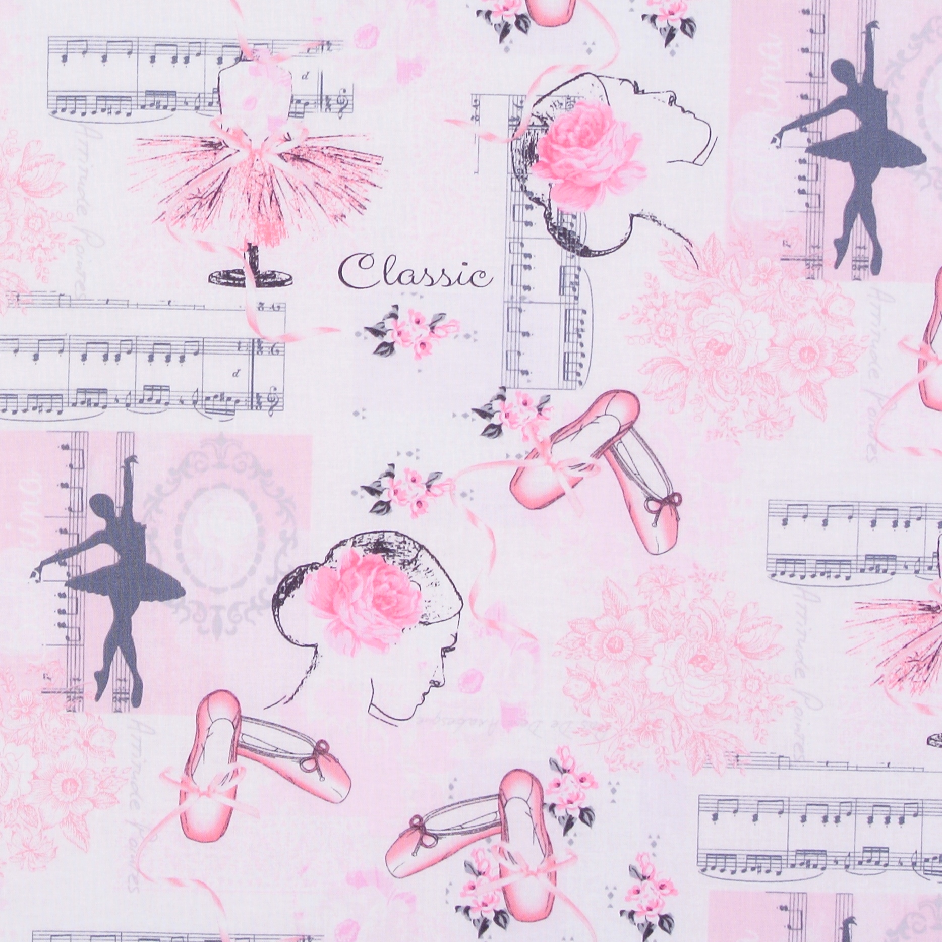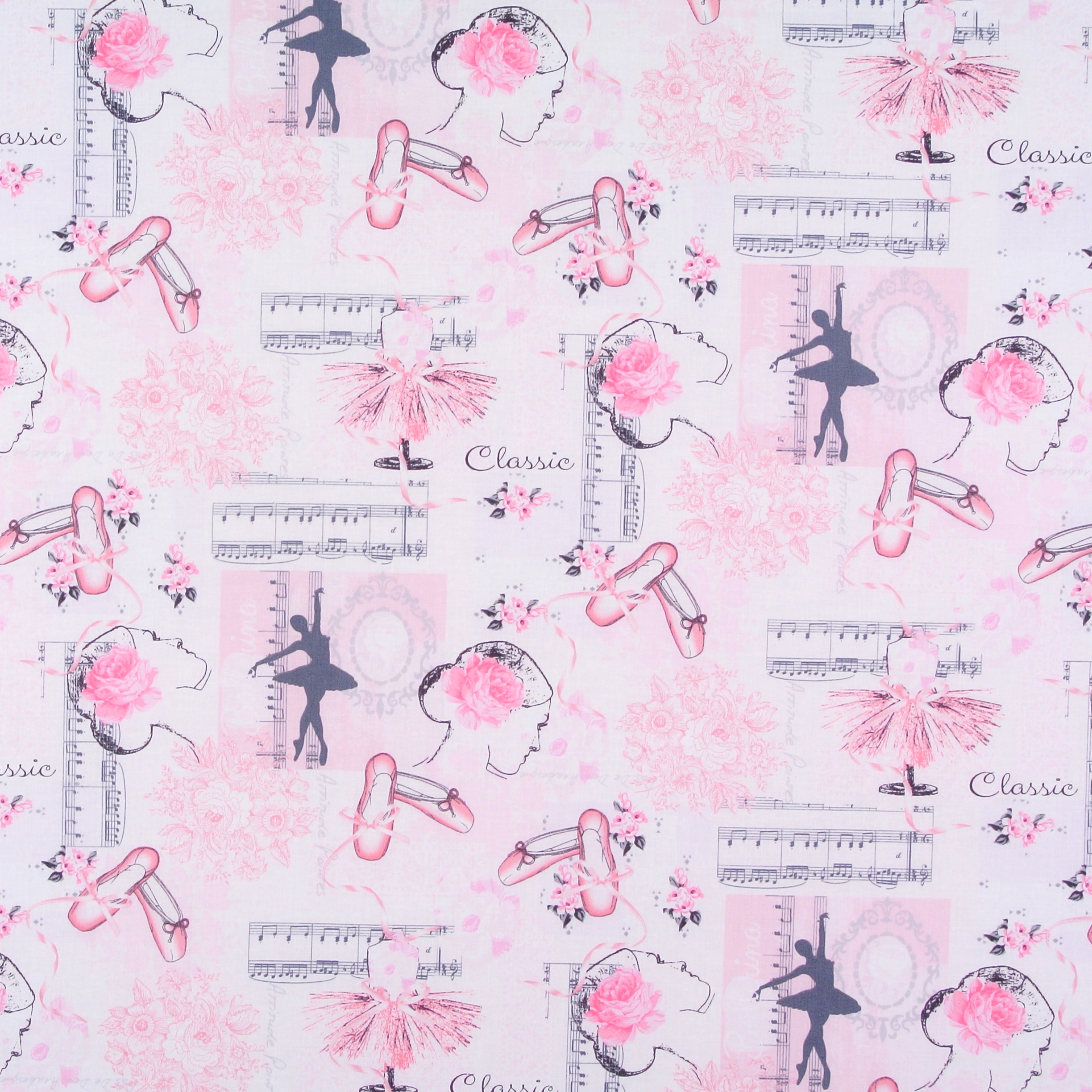 Patchworkstoff mit einer Collage mit bezaubernden Ballett-Motiven aus der Serie "Ballett".