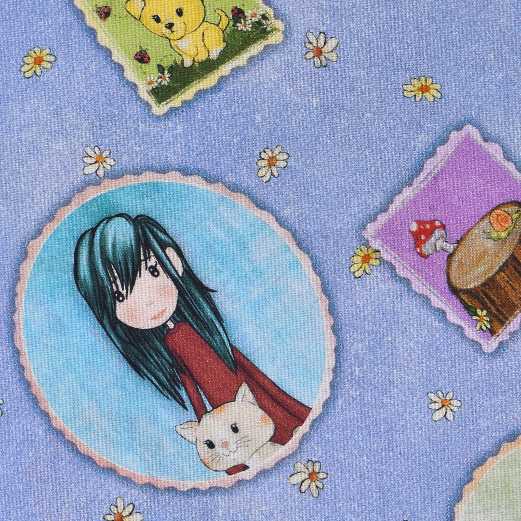 Patchworkstoff Mädchen Garten Motive blau"Garden Girls"