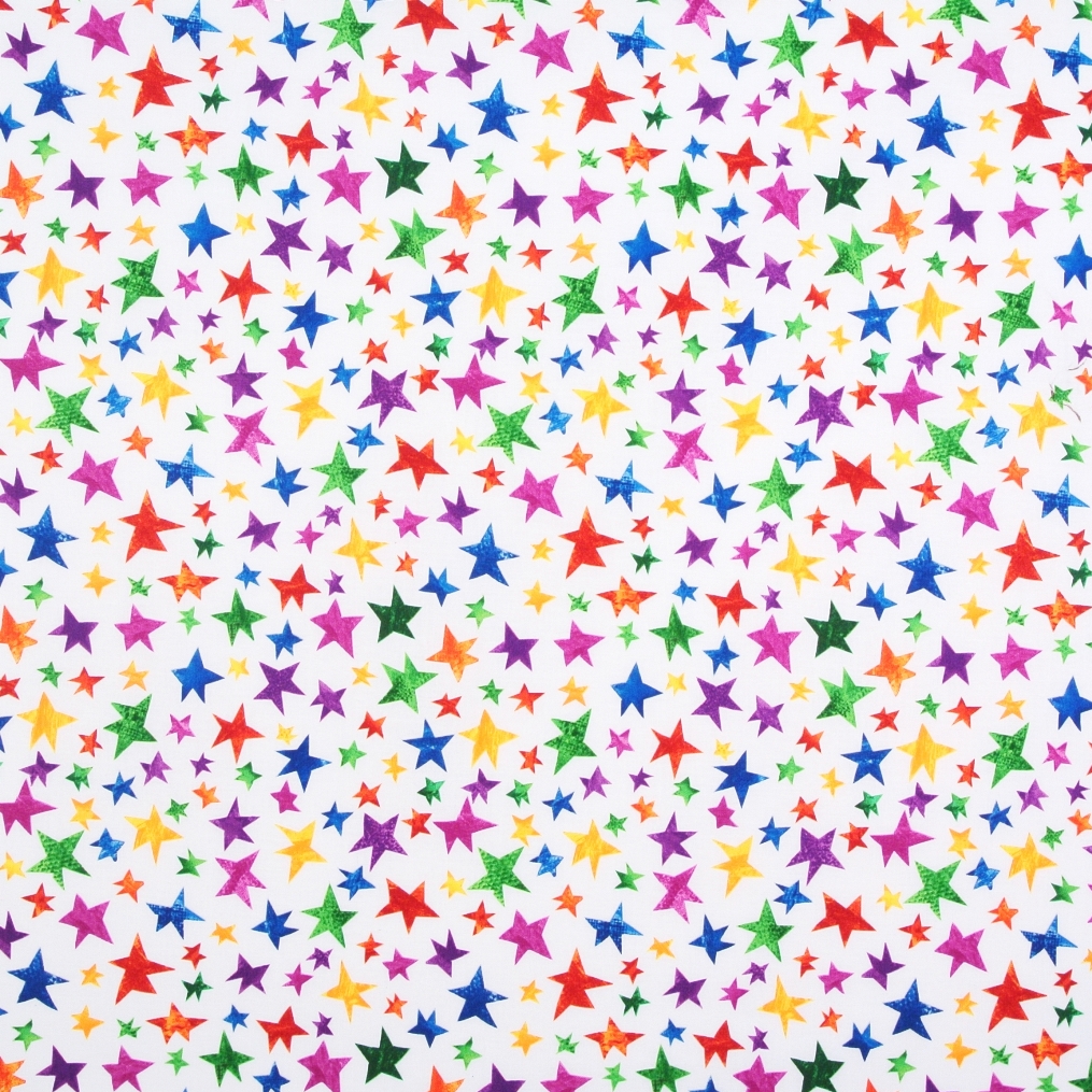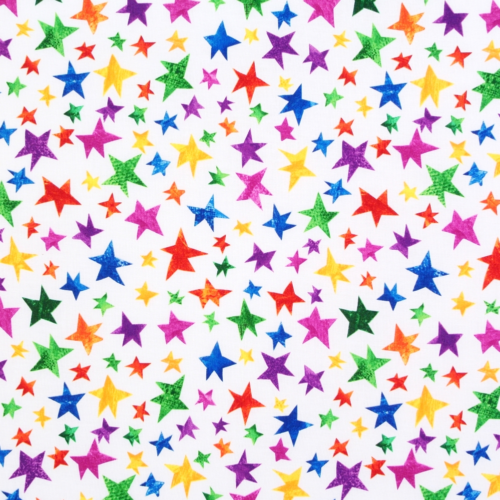 Patchworkstoff mit kleinen bunten Sternen - nach den Motiven aus dem Kinderbuchklassiker "Die kleine Raupe Nimmersatt" von Eric Carle. Wunderschön für Kinderkleidung, Täschchen, Kissen und Dekorationen fürs Kinderzimmer