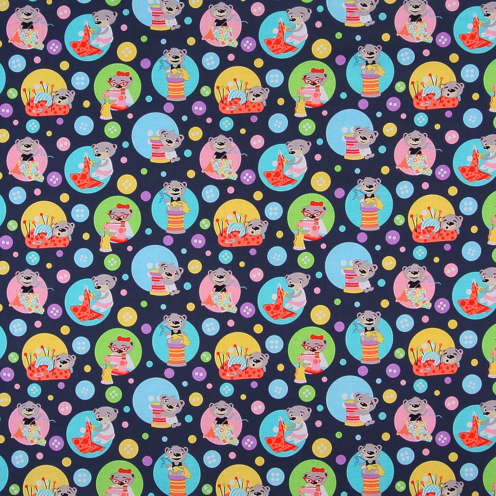 Ein ausgefallener Patchworkstoff für nähbegeisterte Bärenfreundinnen. Nähen Sie daraus dekorative Projekttaschen,Nadelkissen, Nähaccessoires, Applikationen und Dekorationen.