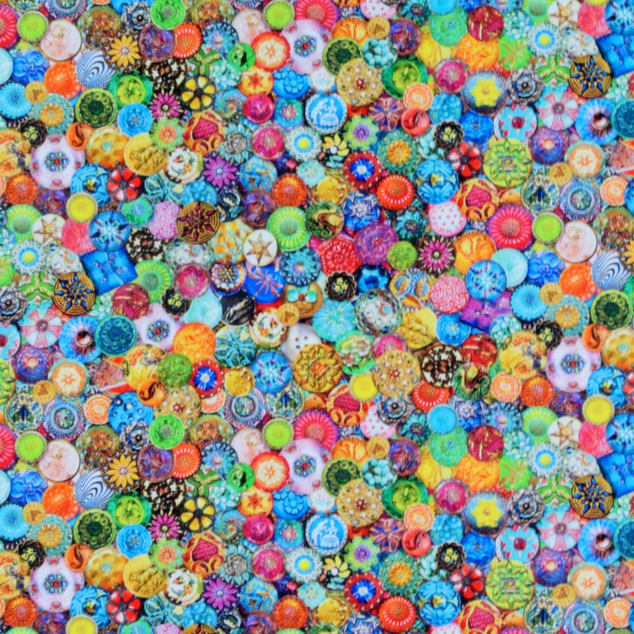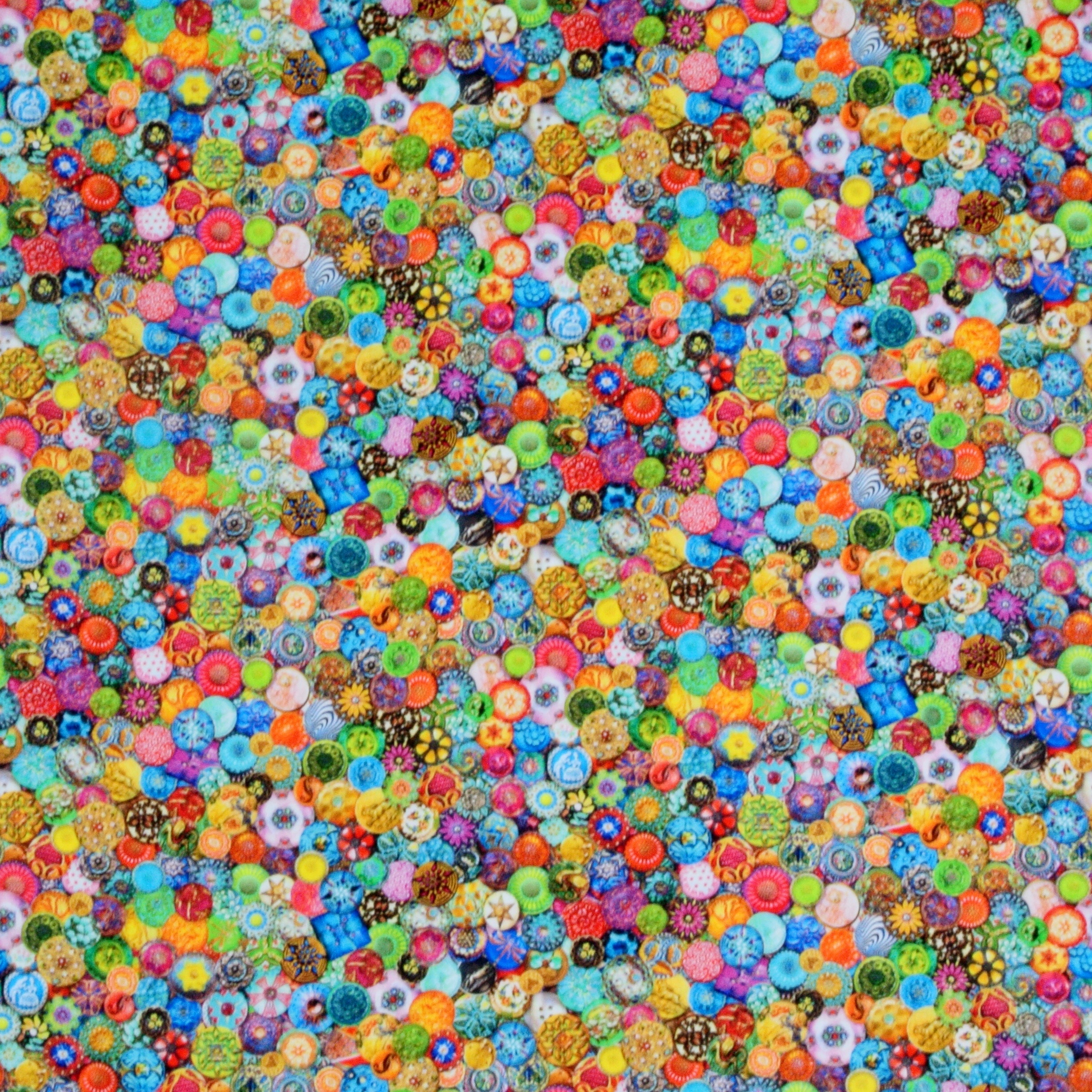 Ein Blick ins Nähstübchen: Patchworkstoff mit herrlich bunten Knöpfen aus der Serie "Sewings Emporium" von Robert Kaufman. Ein ausgefallener Patchworkstoff für dekorative Projekttaschen, Nadelkissen, Nähaccessoires, Applikationen und Dekorationen.