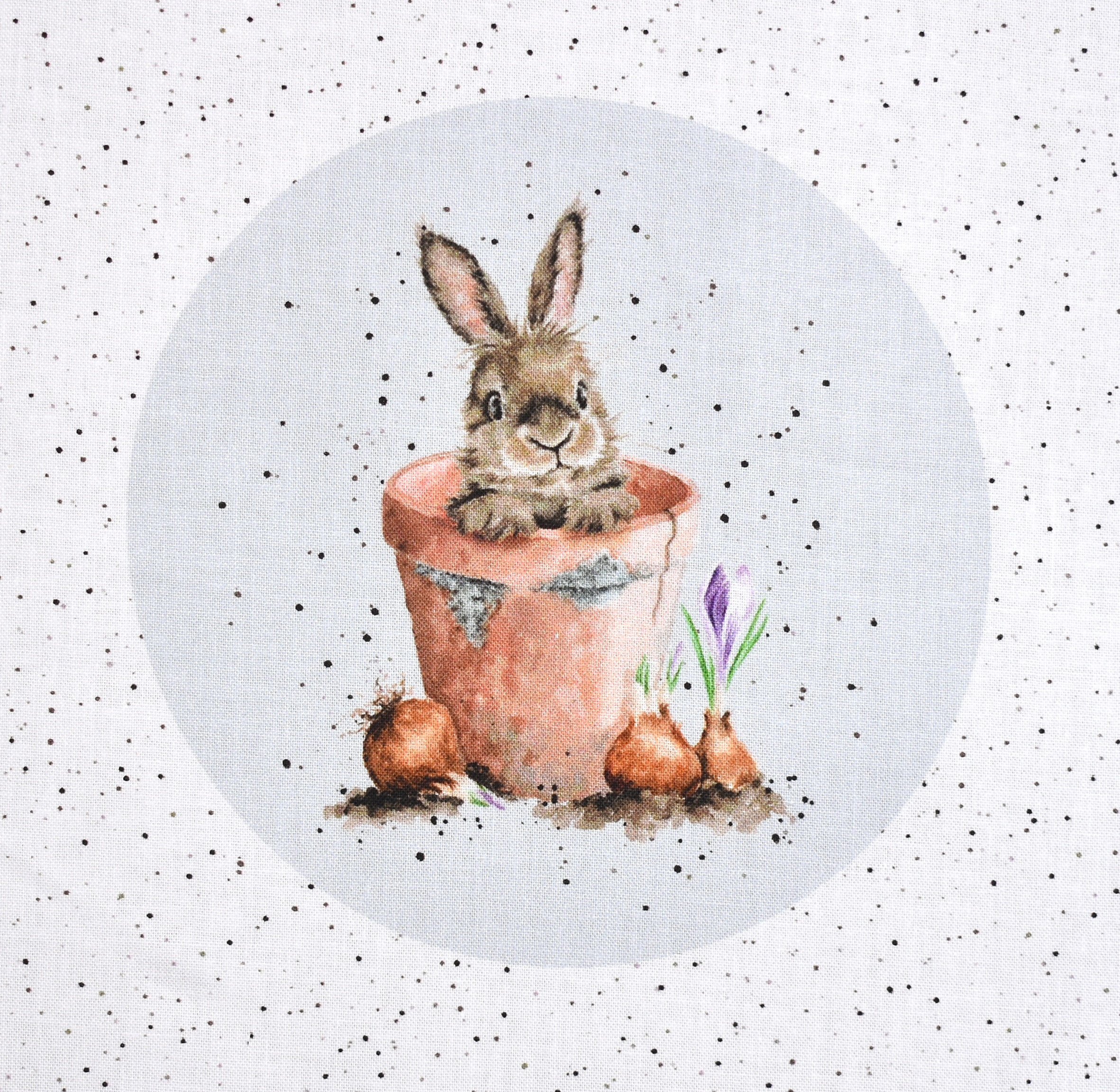 Patchworkstoff Tierkinder Hasen Frühling "Bramble Patch" Panel Webware