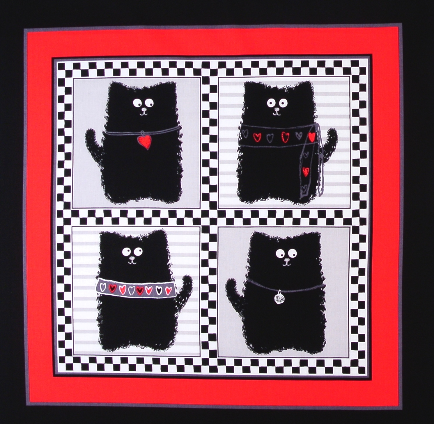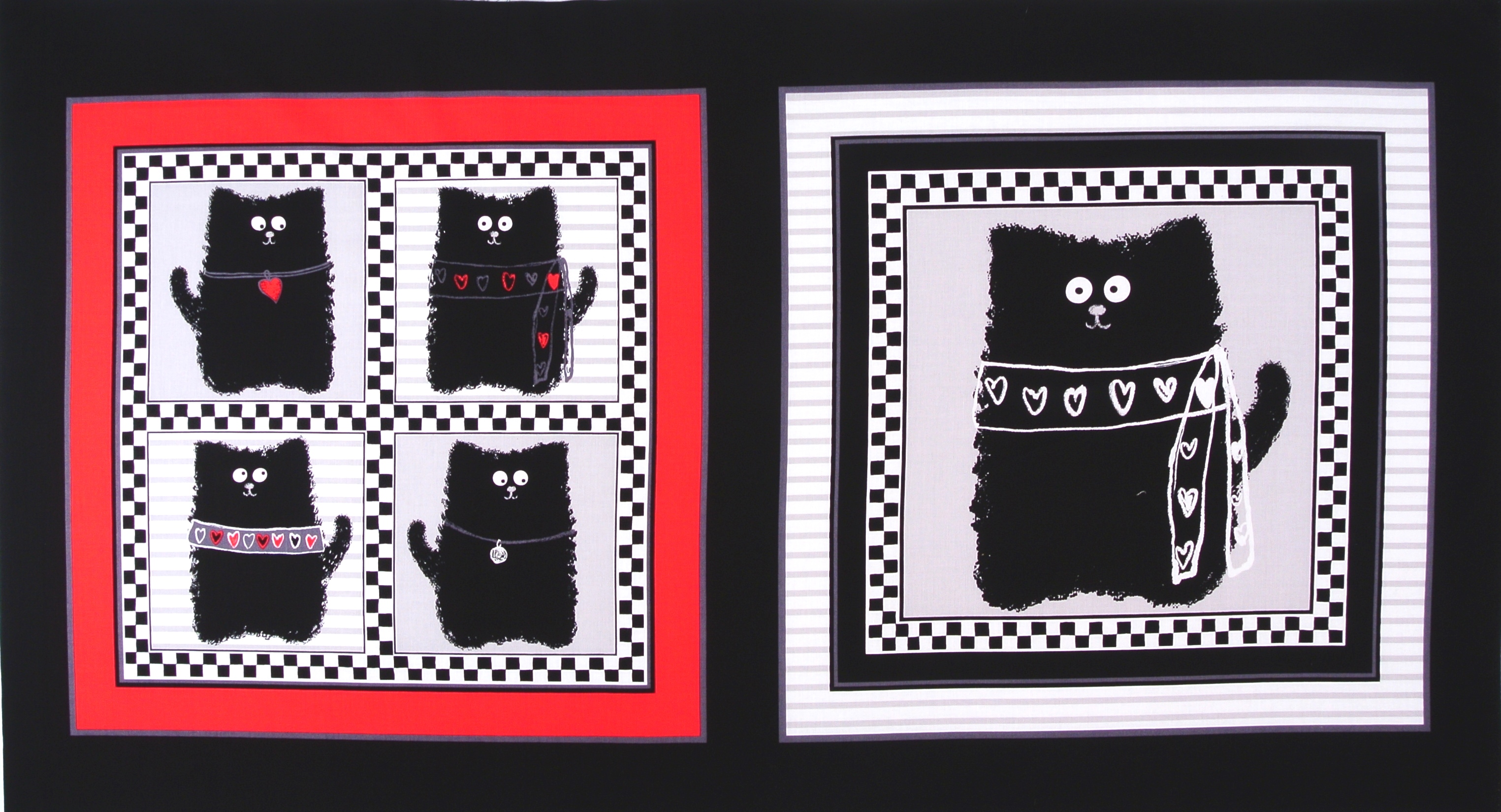 SALE Grosses Patchworkpanel mit frechen Katzen und kleinen Herzen aus der Serie "Smudgy Cats" von Kanvas Benartex.