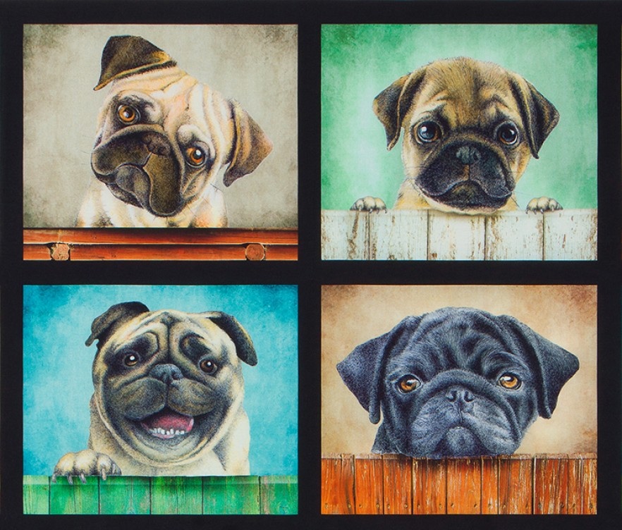 Witziges Patchworkstoff Panel mit kleinen Hundebildern im hochwertigen Digitaldruck aus der Serie "Whiskers and Tails" von Robert Kaufman.
