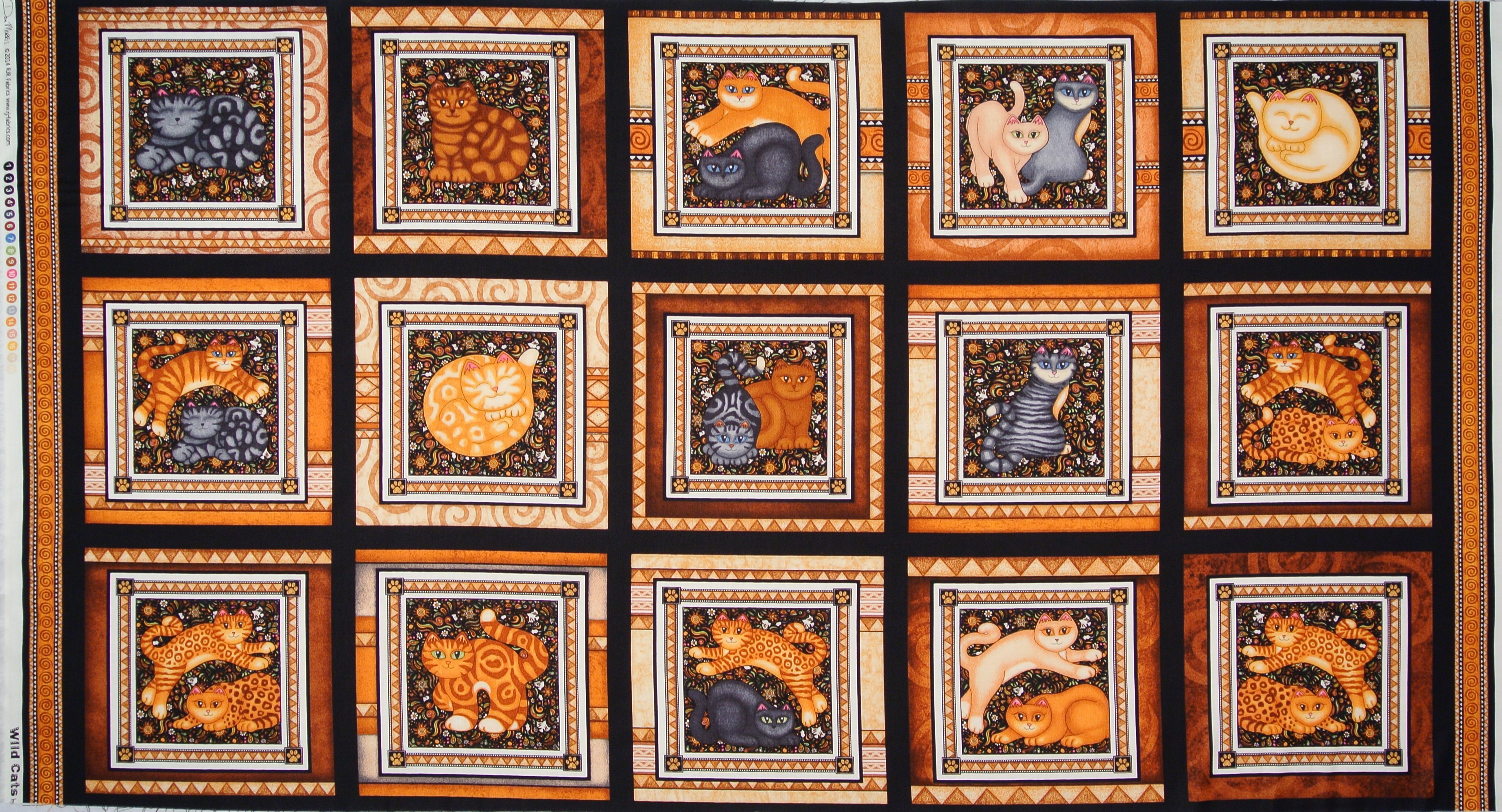 Dan Morris Katzen Patchworkstoff "Wild Cats" Panel