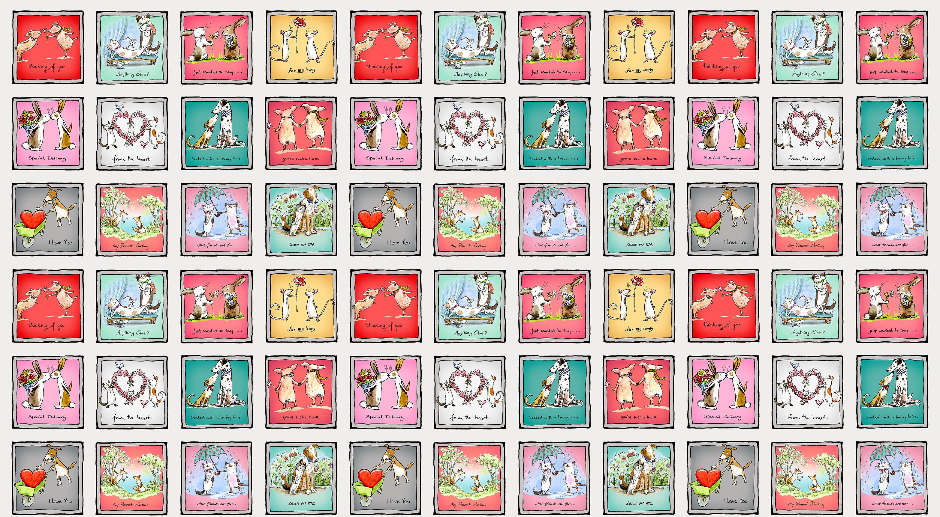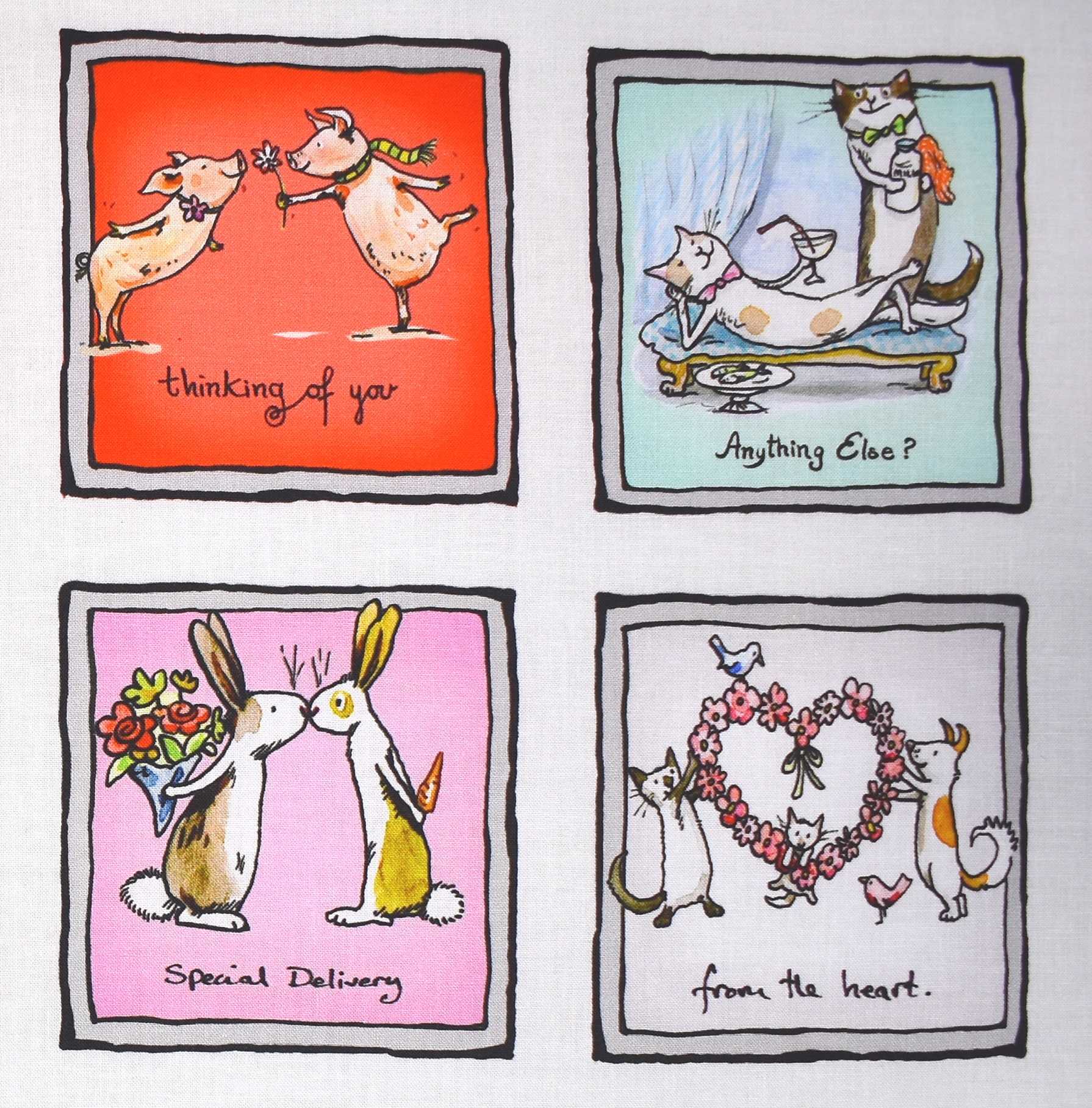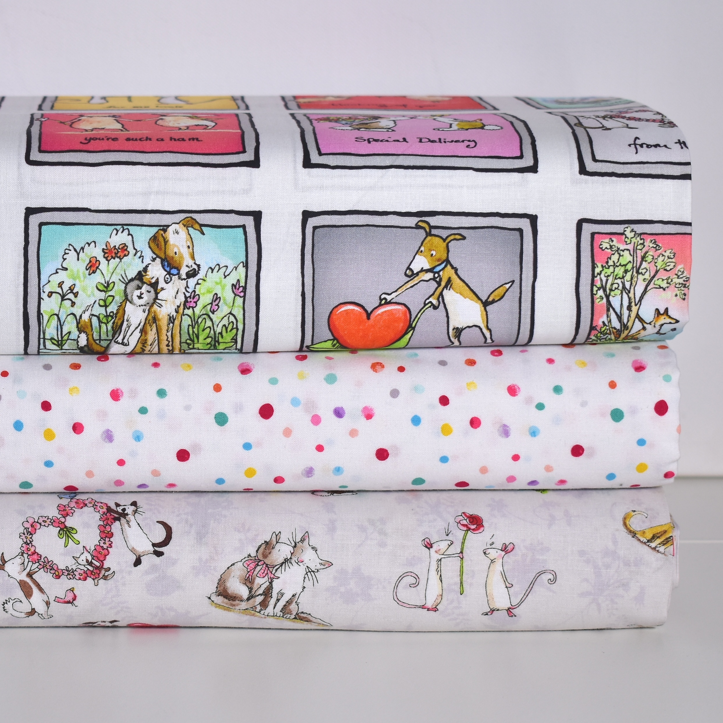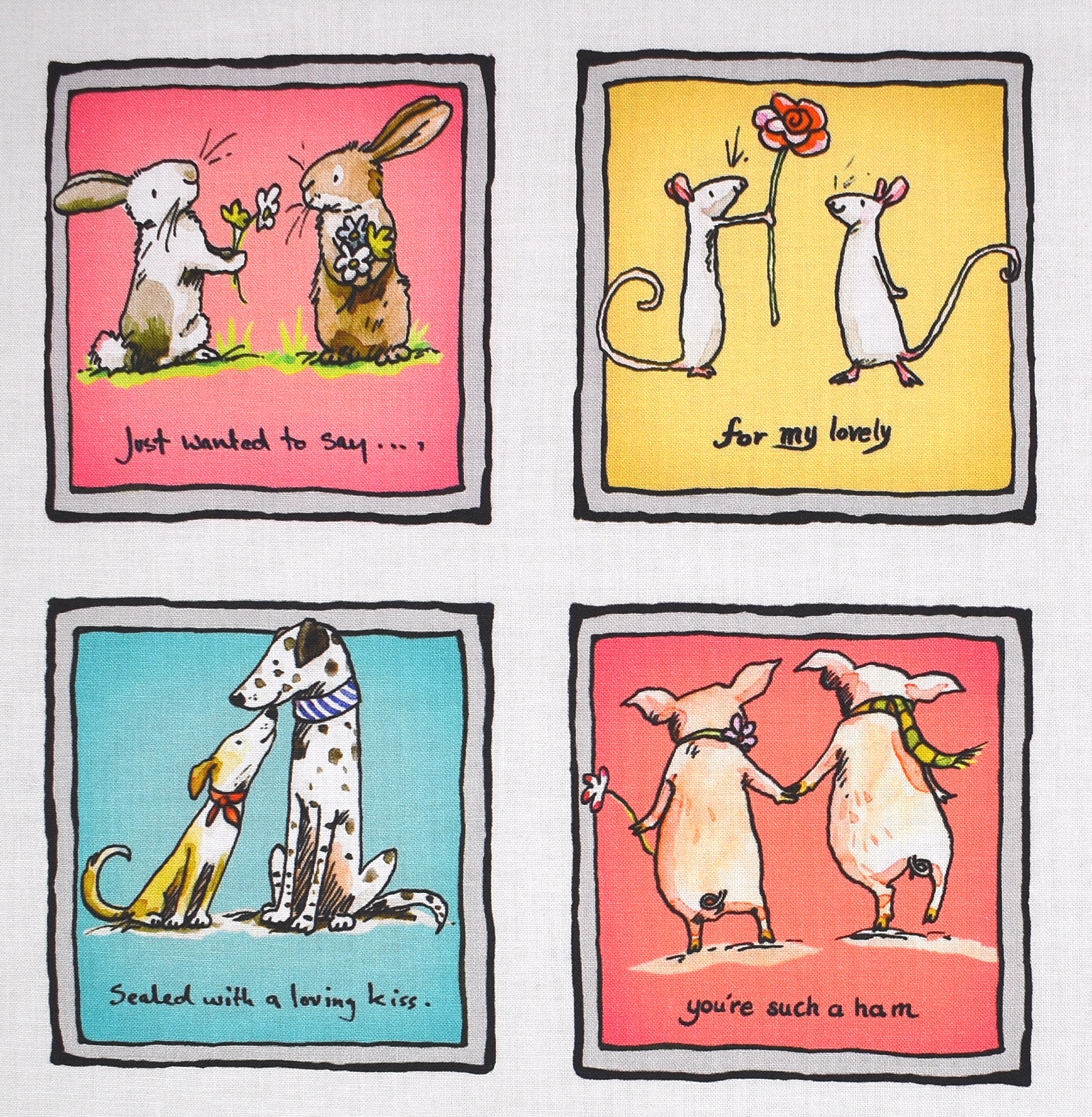Patchworkstoff mit verliebten Tieren aus der Serie "From the Heart"
