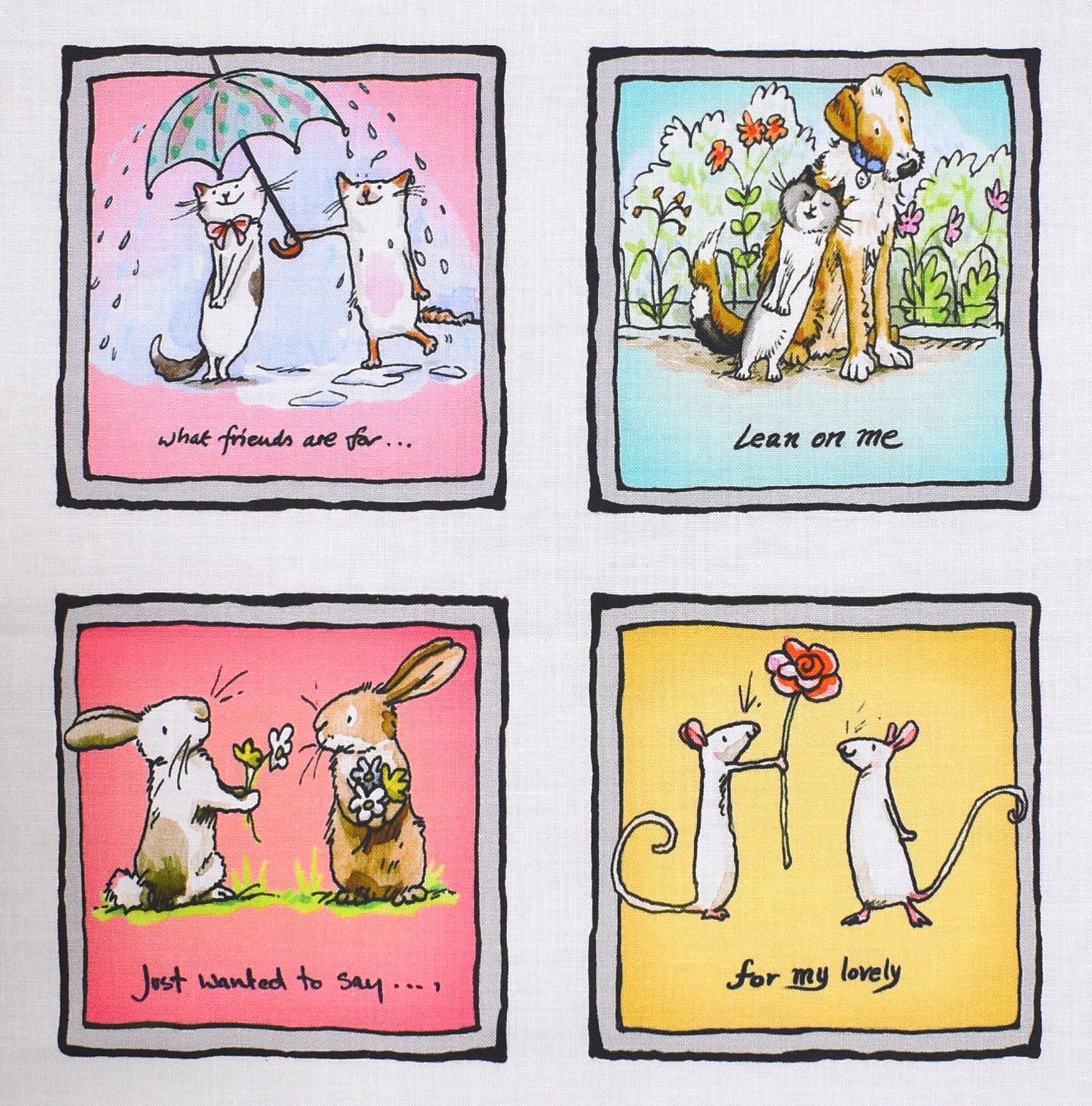 Patchworkstoff "From the Heart" Tiere Liebe Freundschaft Panel