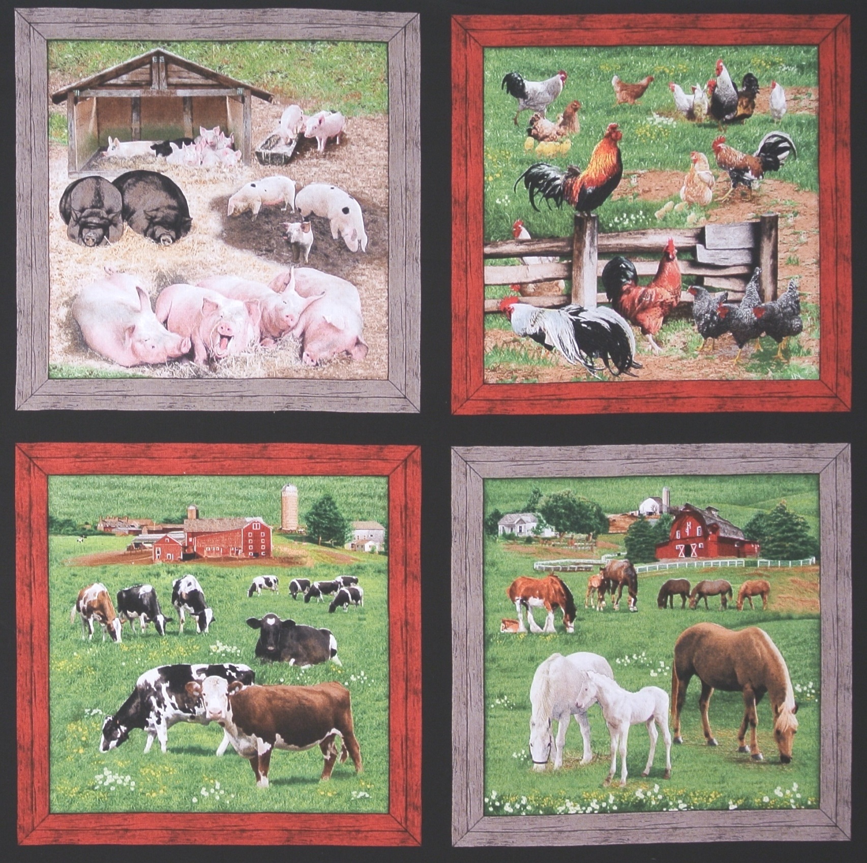 Auf dem Bauernhof ... Patchworkpanel mit glücklichen grossen und kleinen Tieren aus der... mehr