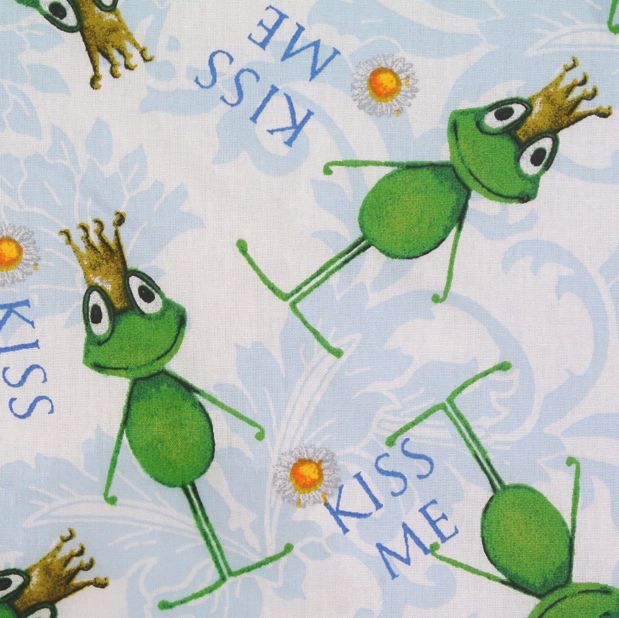 Man muß viele Frösche küssen... Leichter Baumwollstoff mit witzigen Fröschen mit Blau -... mehr