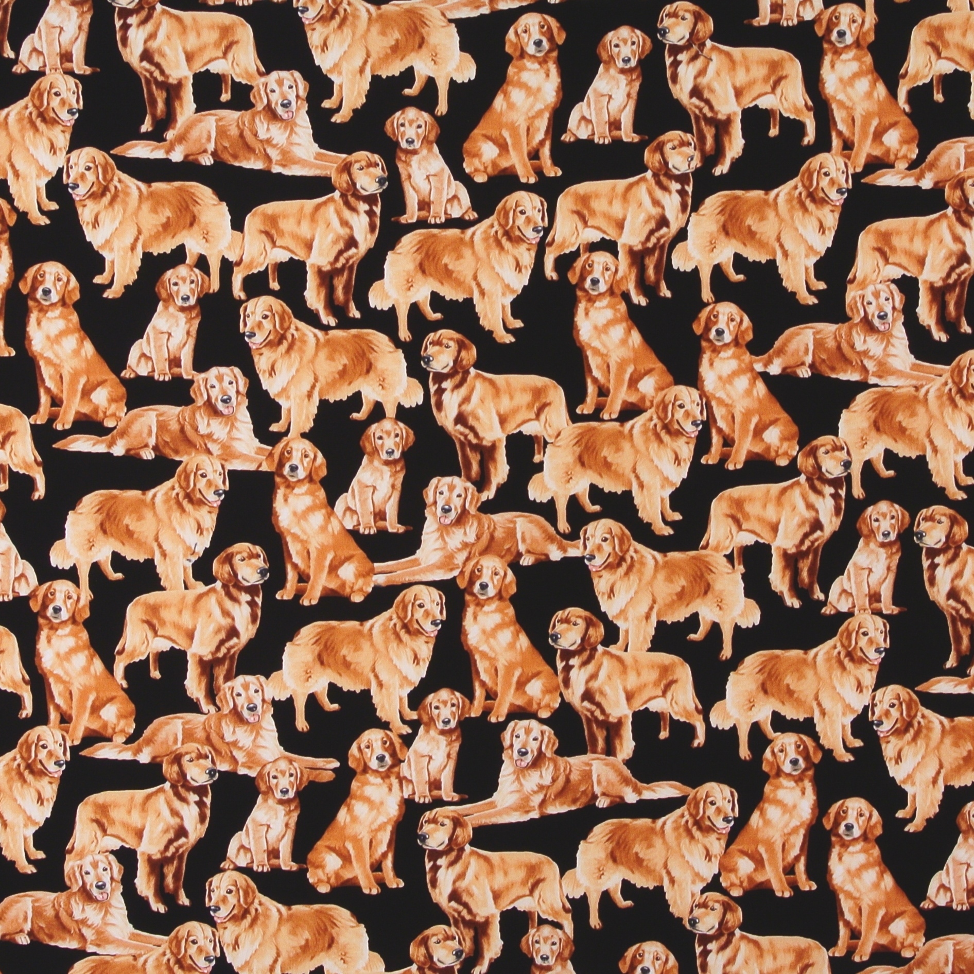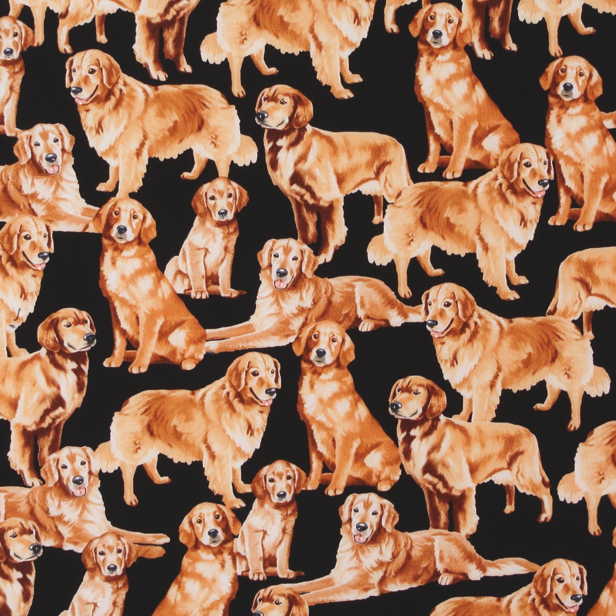 Patchworkstoff mit kleinen und grossen Golden Retrievern auf Schwarz aus der Serie "Cats and Dogs".