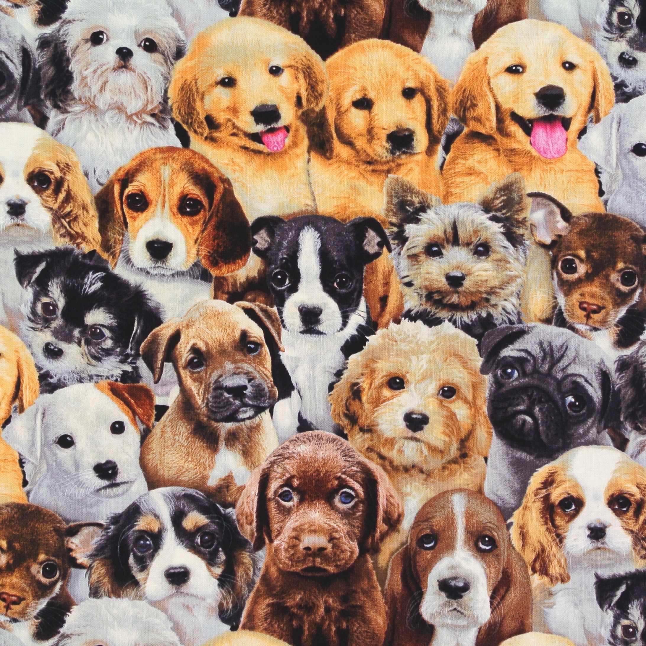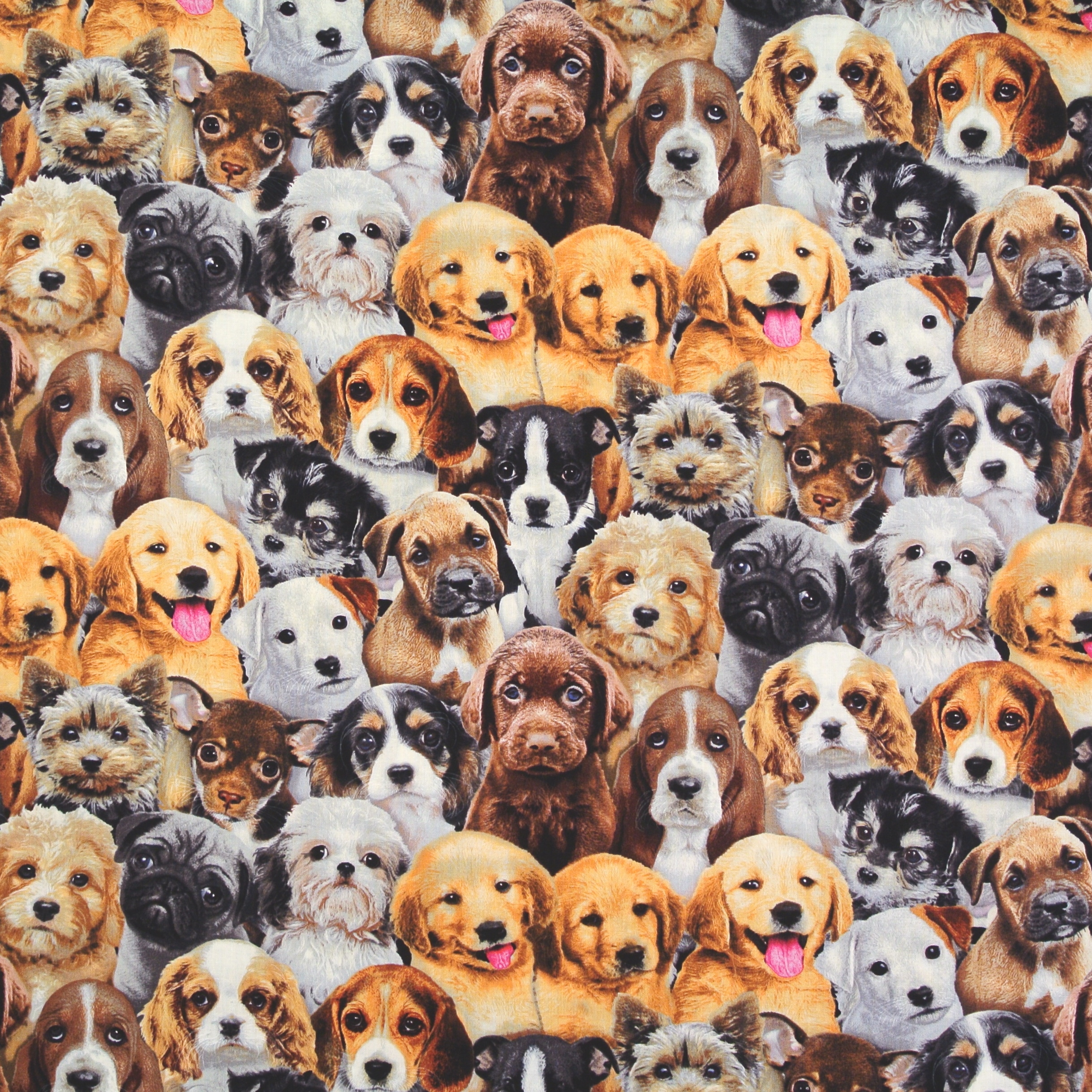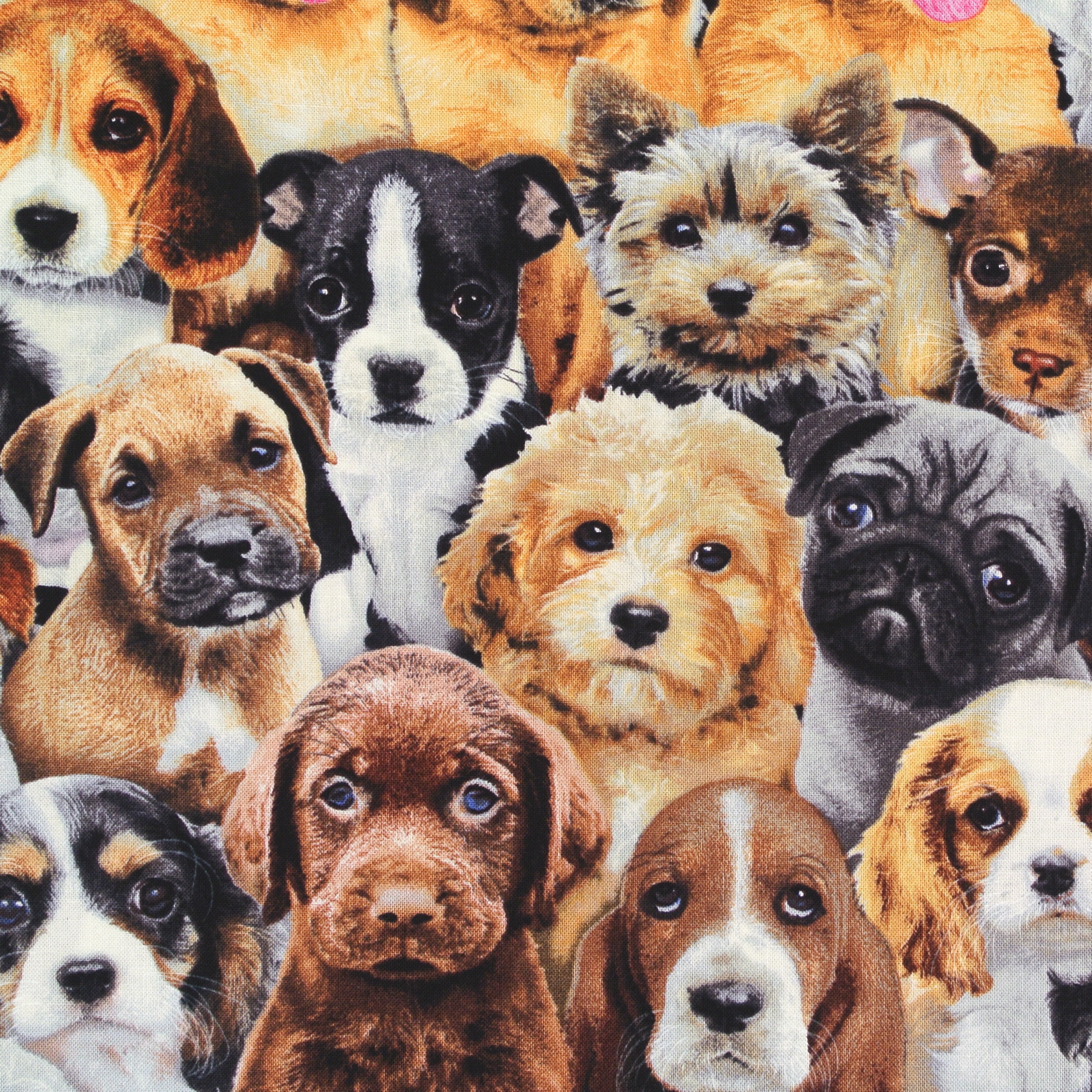 Patchworkstoff mit süßen kleinen Hundewelpen aus der Serie "Adorable Pets".
