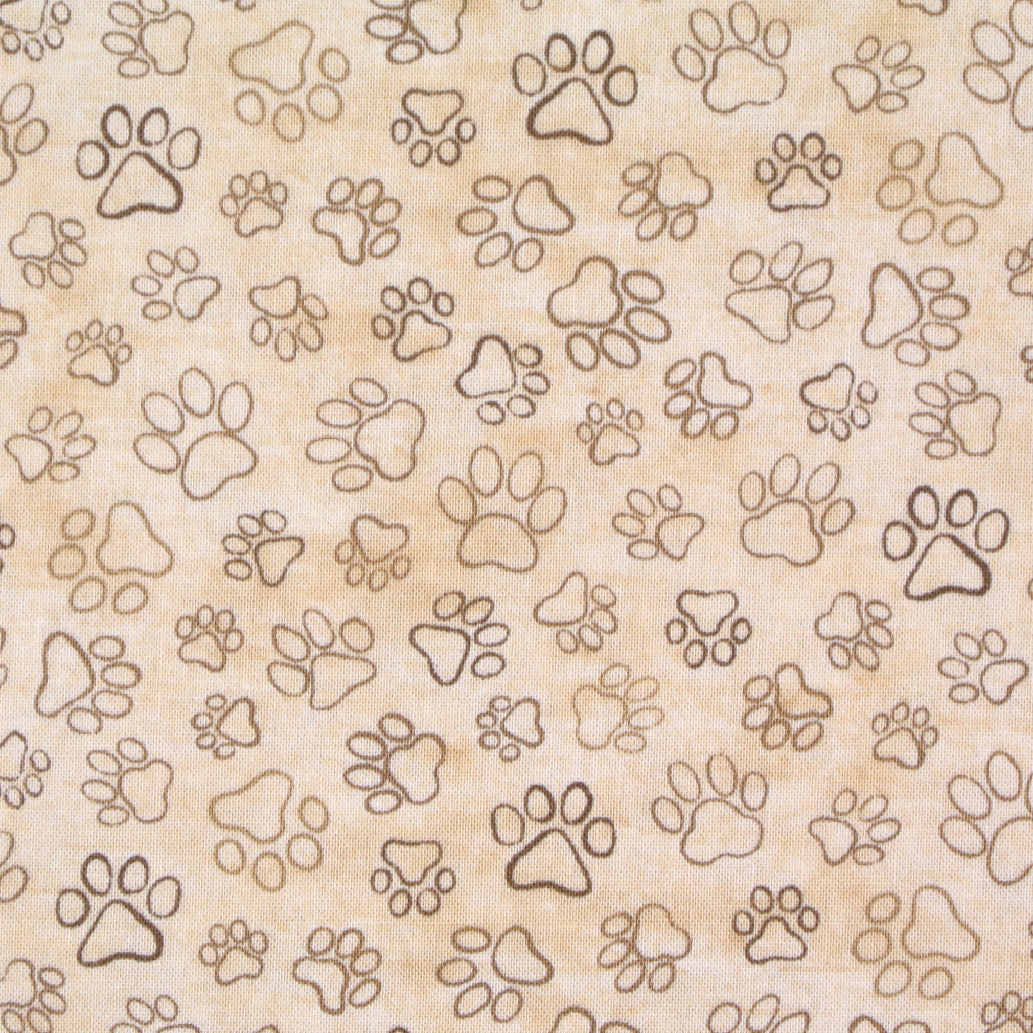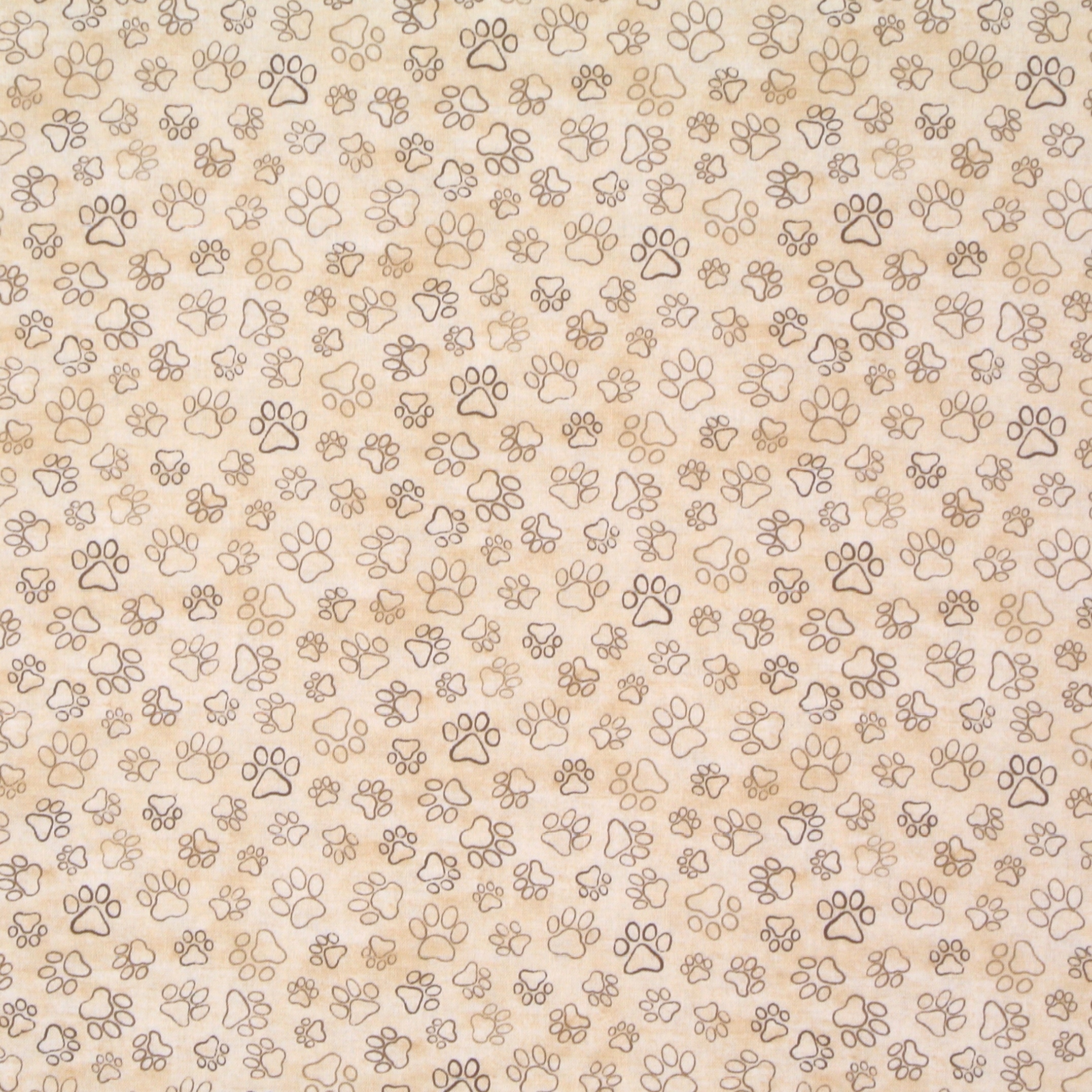 Ausgefallener Patchworkstoff mit kleinen Pfoten auf Hellbeige von Timeless Treasures. Nähen Sie aus diesem schönen, hochwertigen Baumwollstoff aus der Serie "I Love my Dog" Kissen, Hundebetten, Taschen, Hundeaccessoires, Hundehalsbänder und Homedeko für Hundeliebhaberinnen.