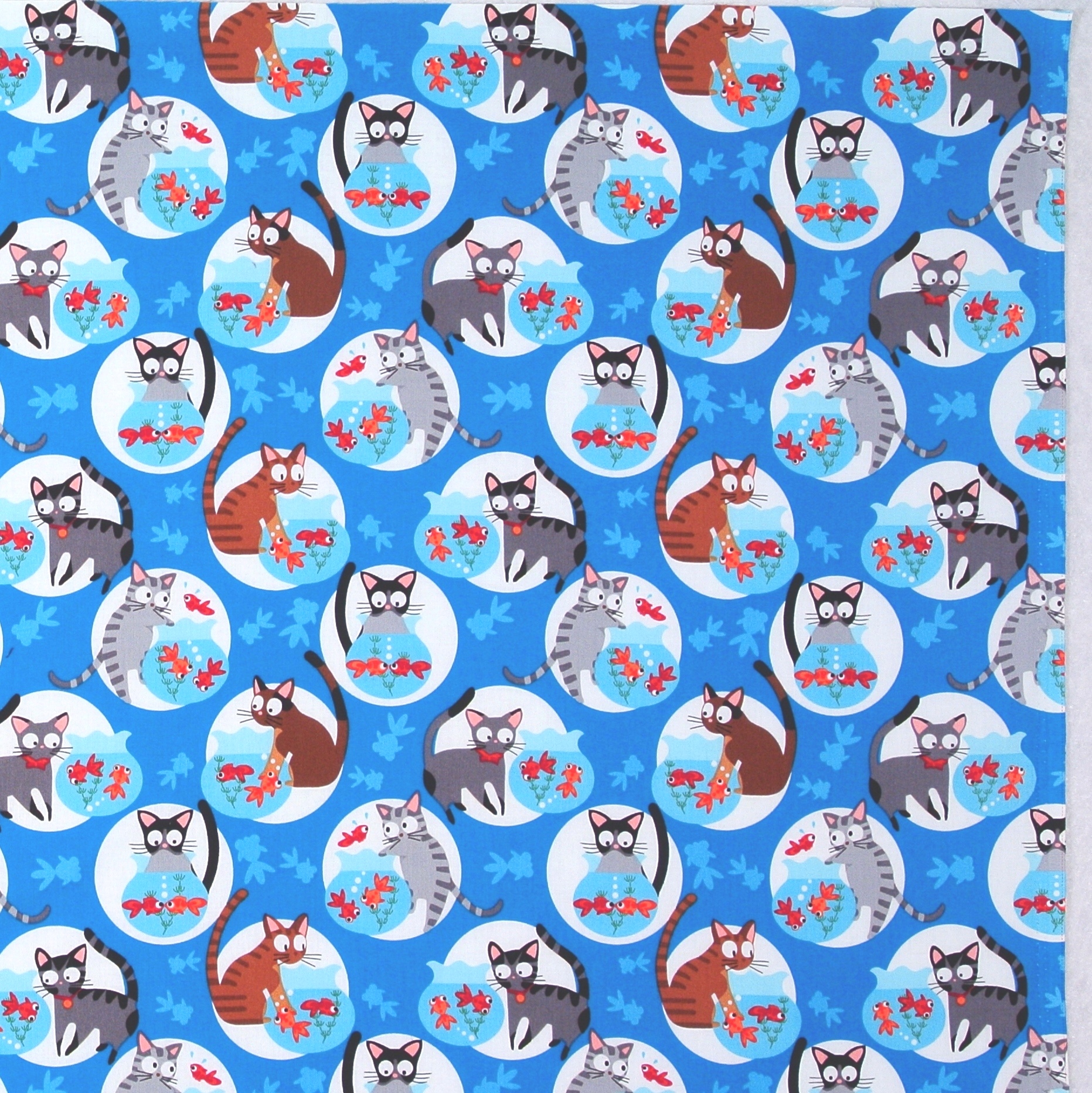 Katzenstoff Katzen Goldfische blau