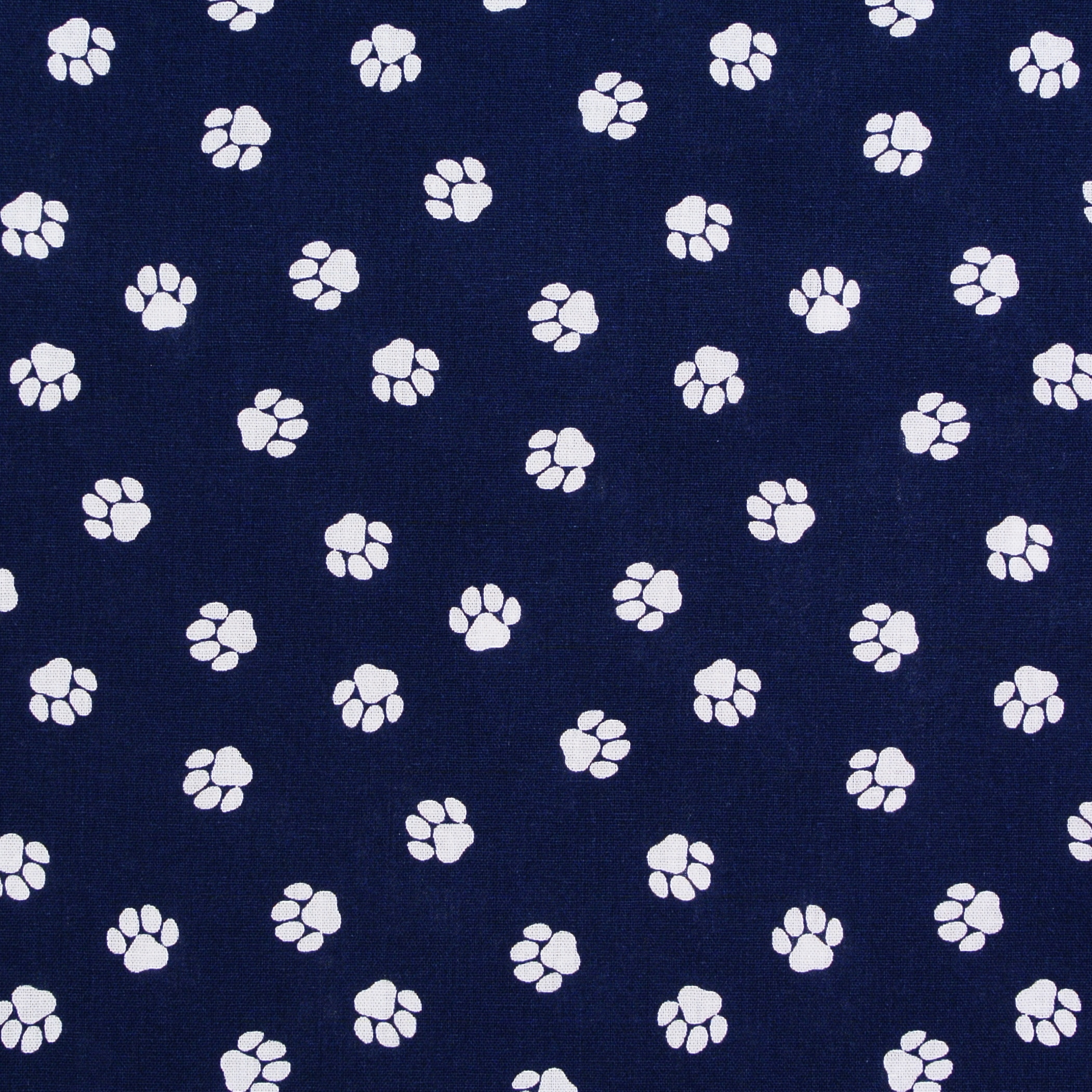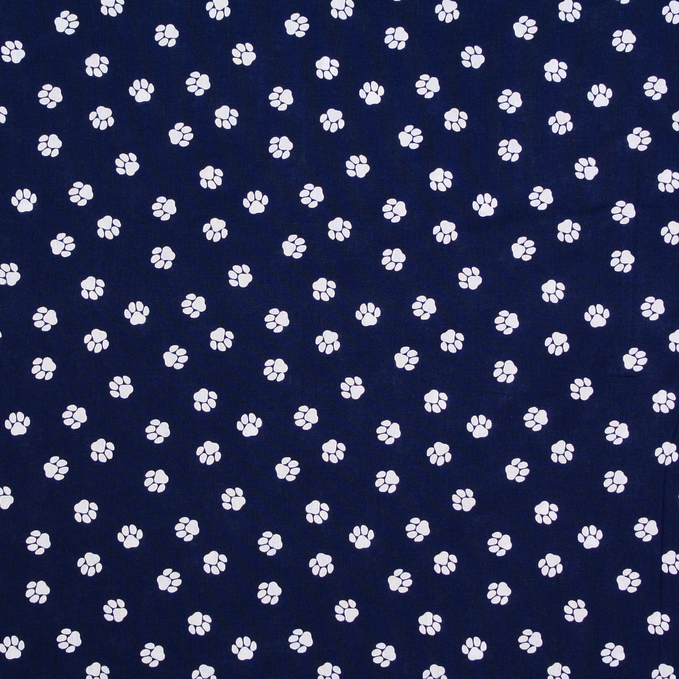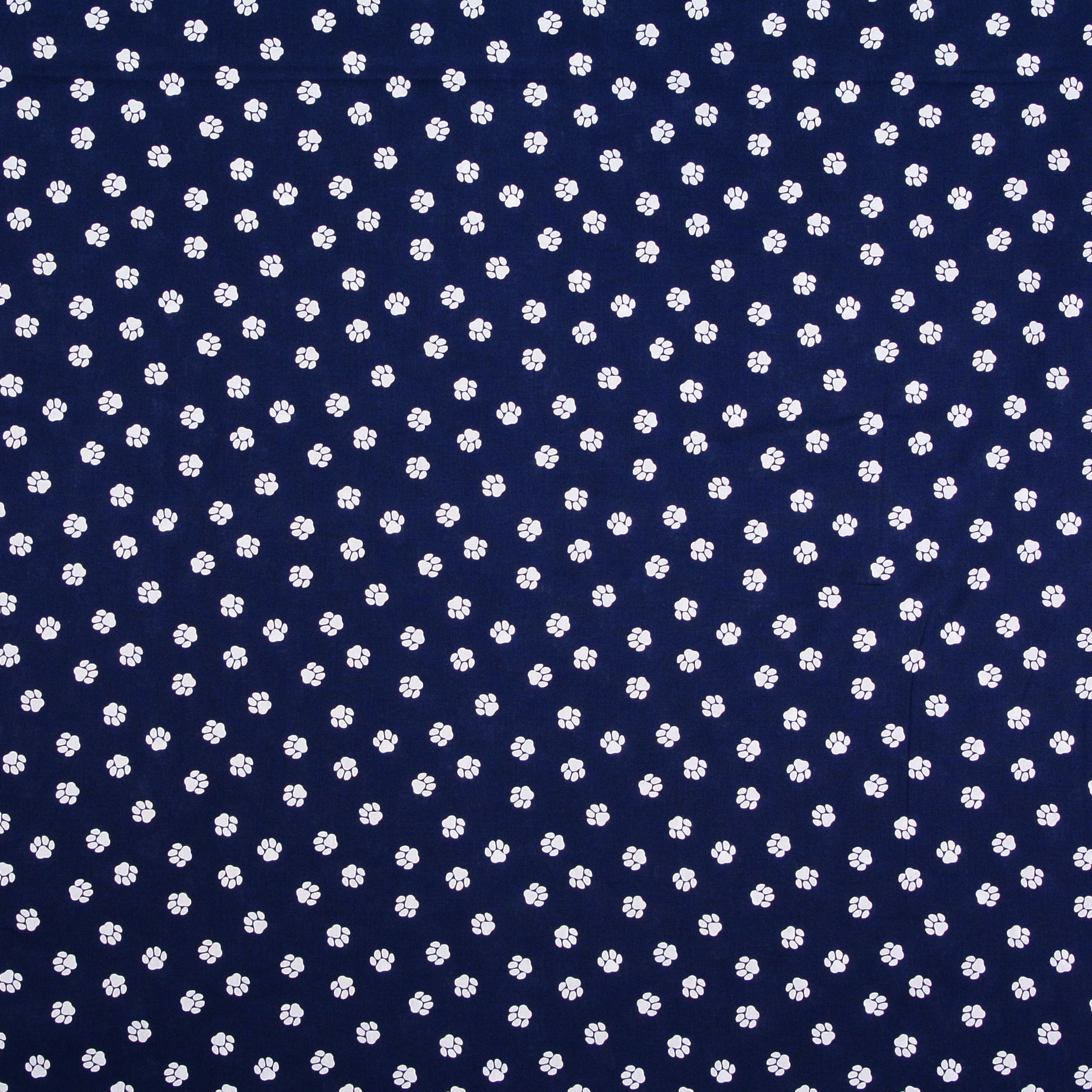 Leichter Baumwollstoff mit kleinen Pfoten auf Marine. Wunderschön für Taschen, Kissen, Tieraccessoires und Dekorationen...