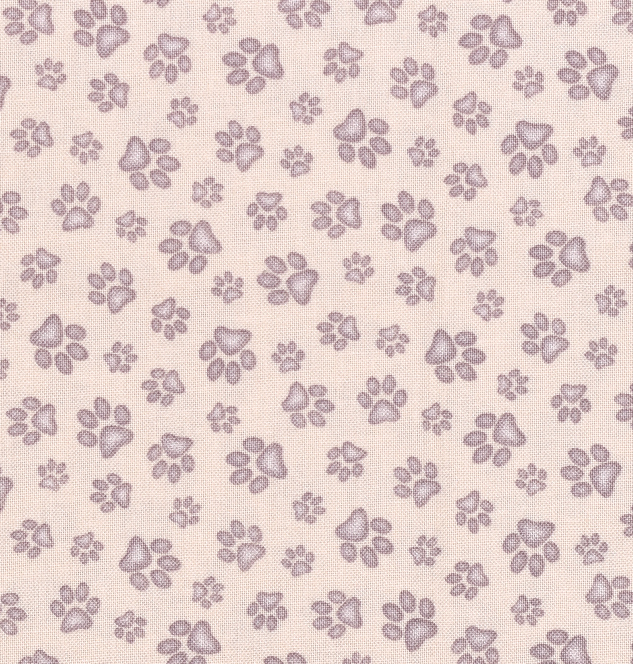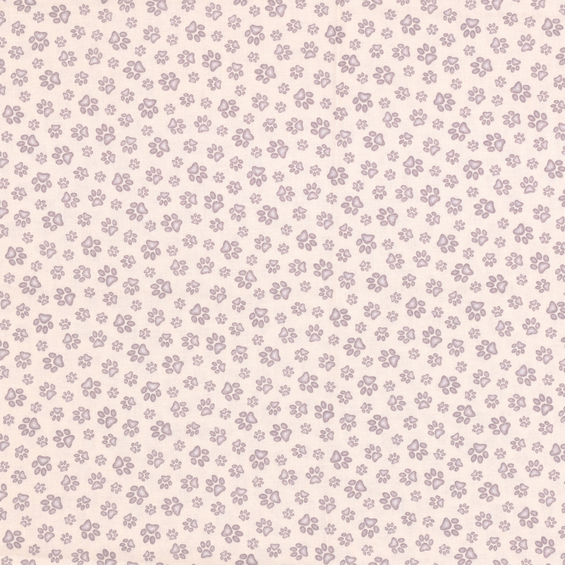 Patchworkstoff mit vielen kleinen Katzenpfoten auf Hellbeige aus der Serie "Cat Breeds" von Elizabeth`s Studio.