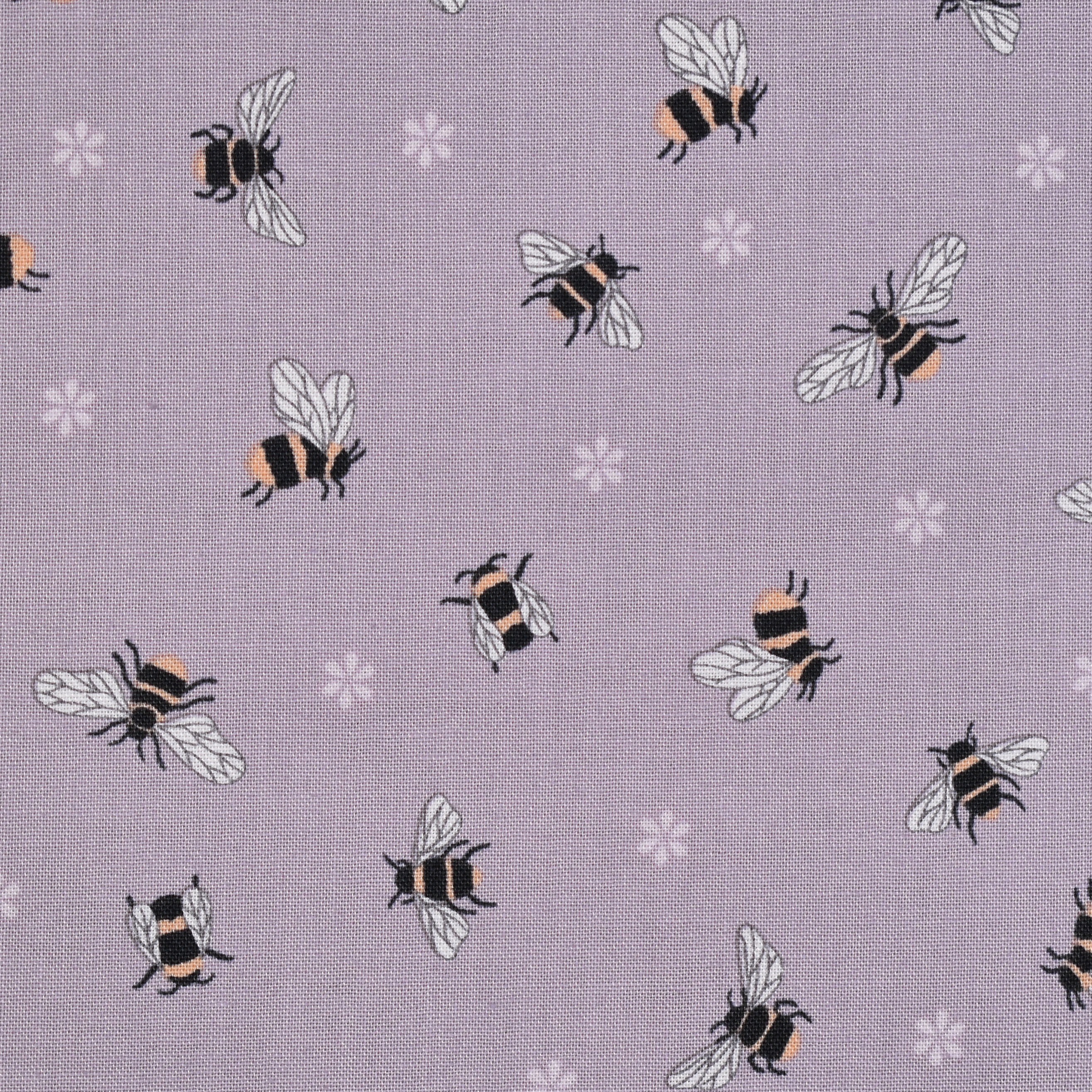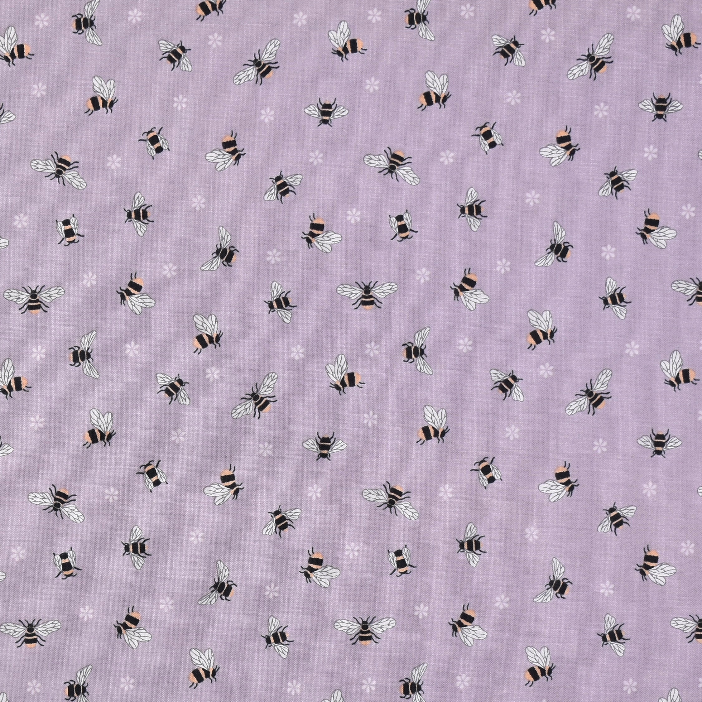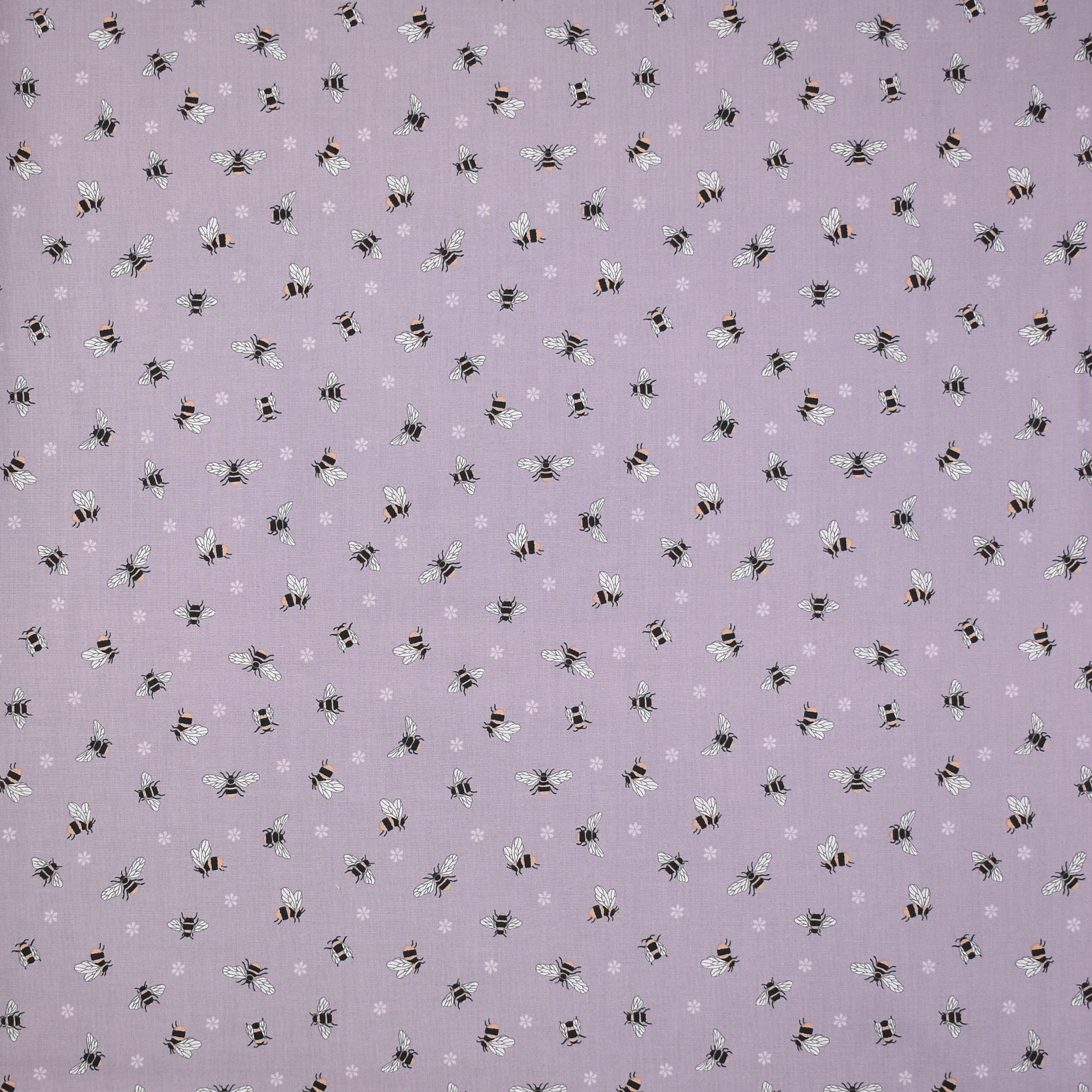 Patchworkstoff mit kleinen Bienen auf Flieder aus der Serie "Queen Bee"