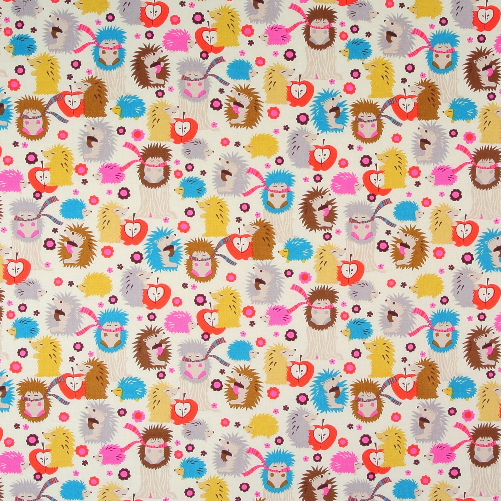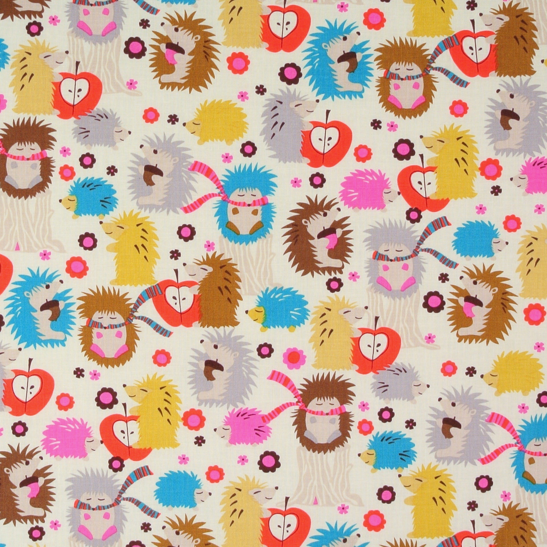SALE Patchworkstoff im Retro-Stil mit vielen kleinen Igeln aus der Serie "Hedgehog Meadow".