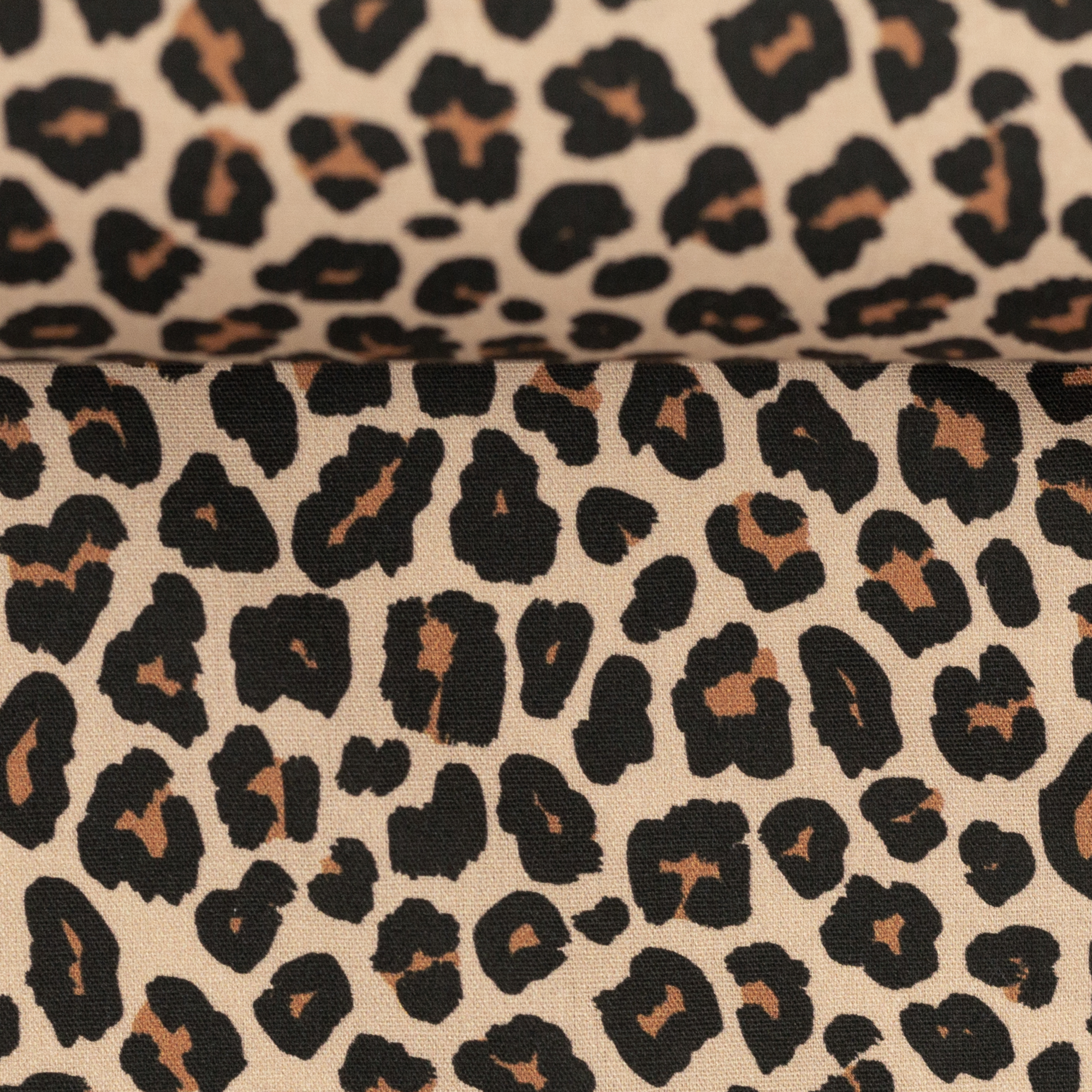 Leichter Baumwollstoff mit Leopardenprint auf Braun-Beige. Nähen Sie aus diesem aparten Baumwollstoff Taschen, Täschchen, Kissen, Tieraccessoires, Blusen, Patchwork und Dekorationen...