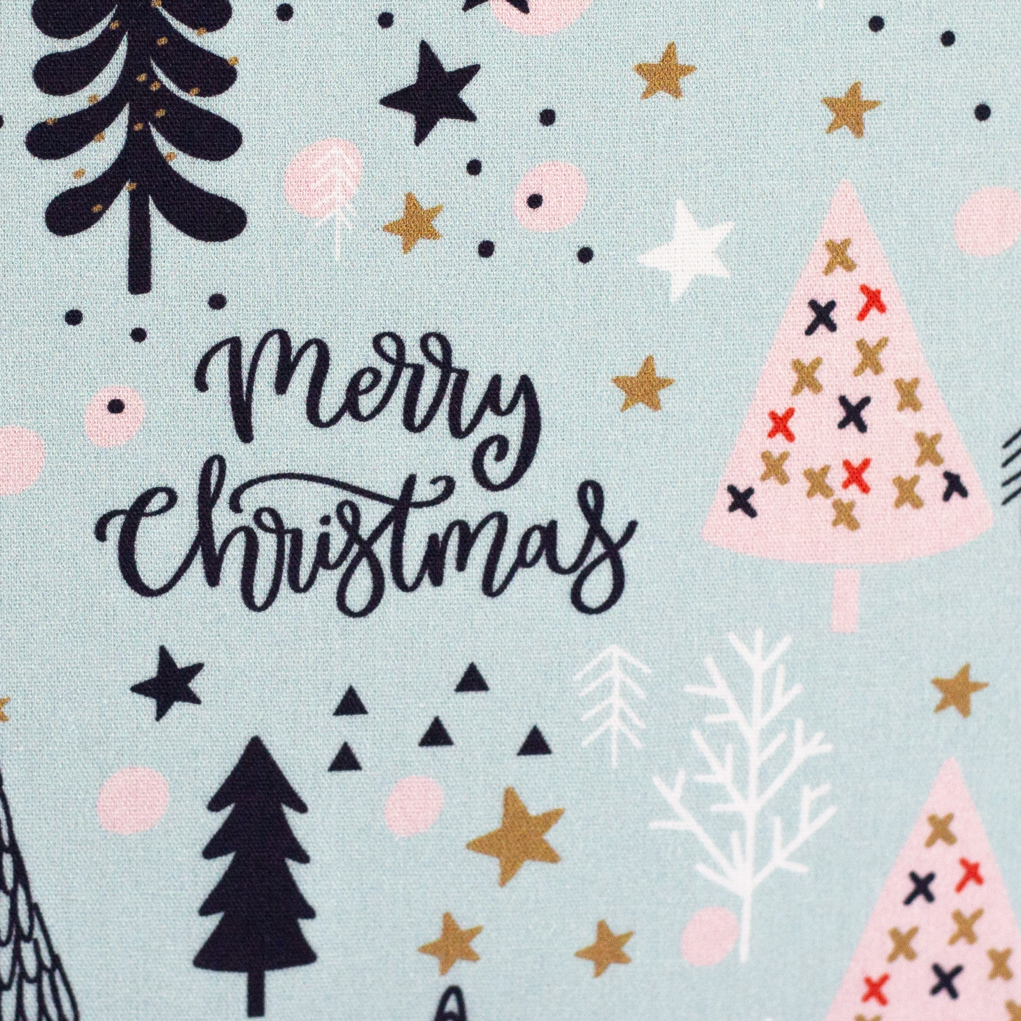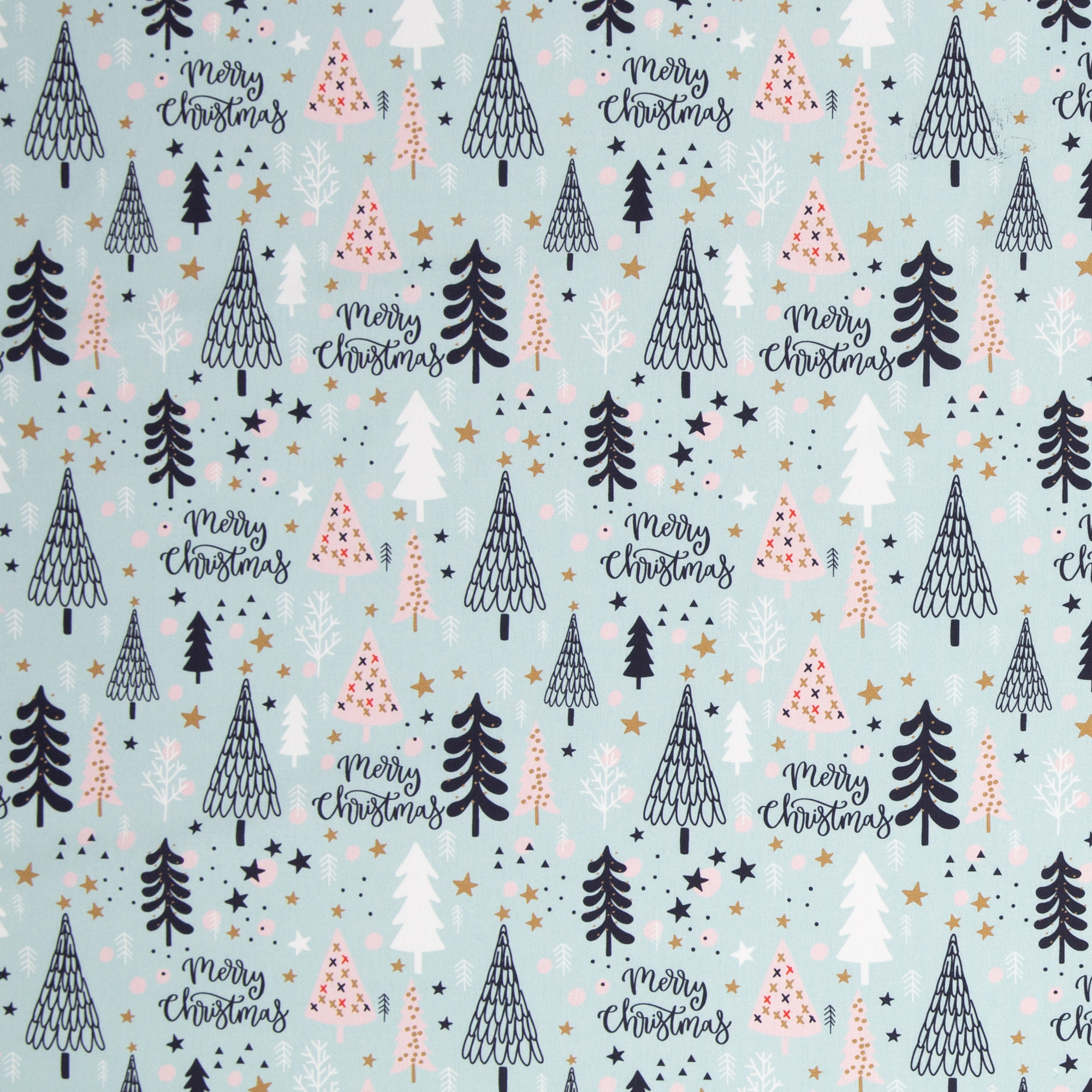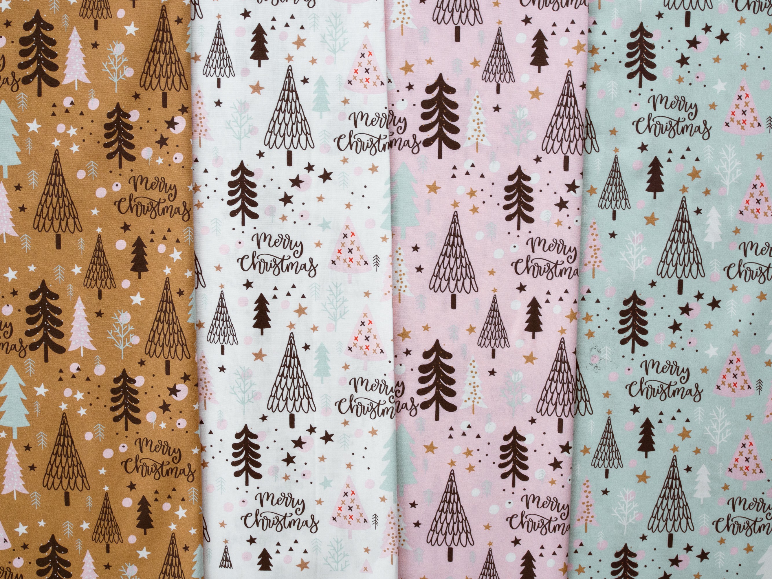 Baumwollstoff mit Tannenbäumen auf Mint aus der Serie "Merry Christmas"