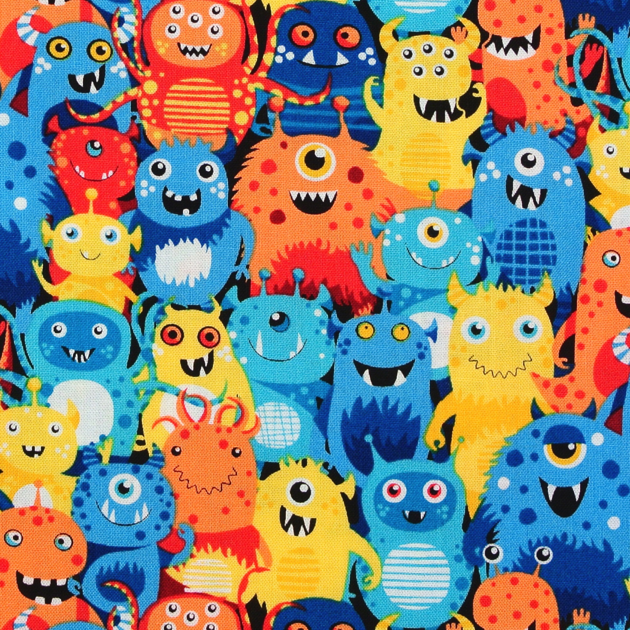 Patchworkstoff mit fröhlichen Monstern Patchworkstoff mit fröhlichen kleinen Monstern und... mehr
